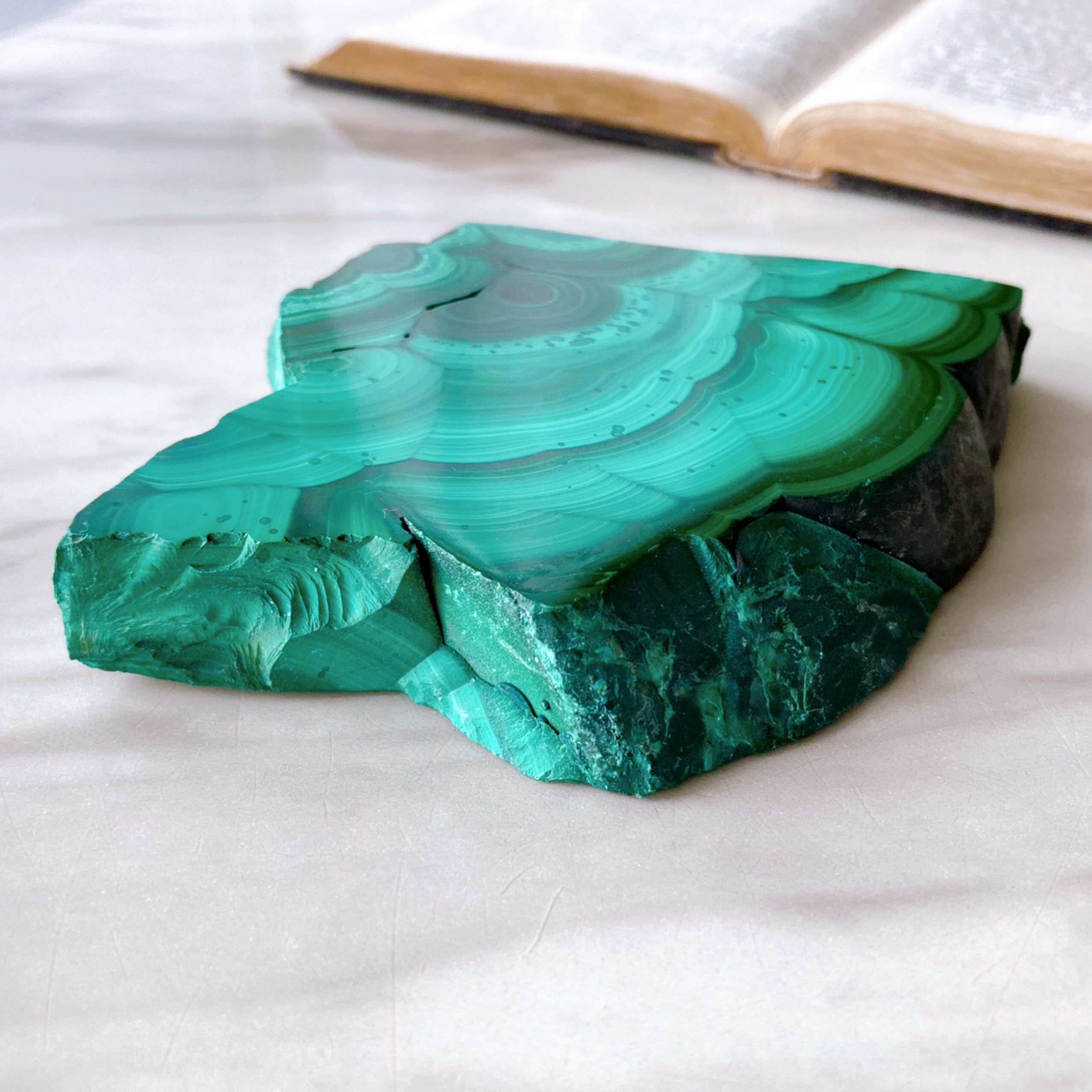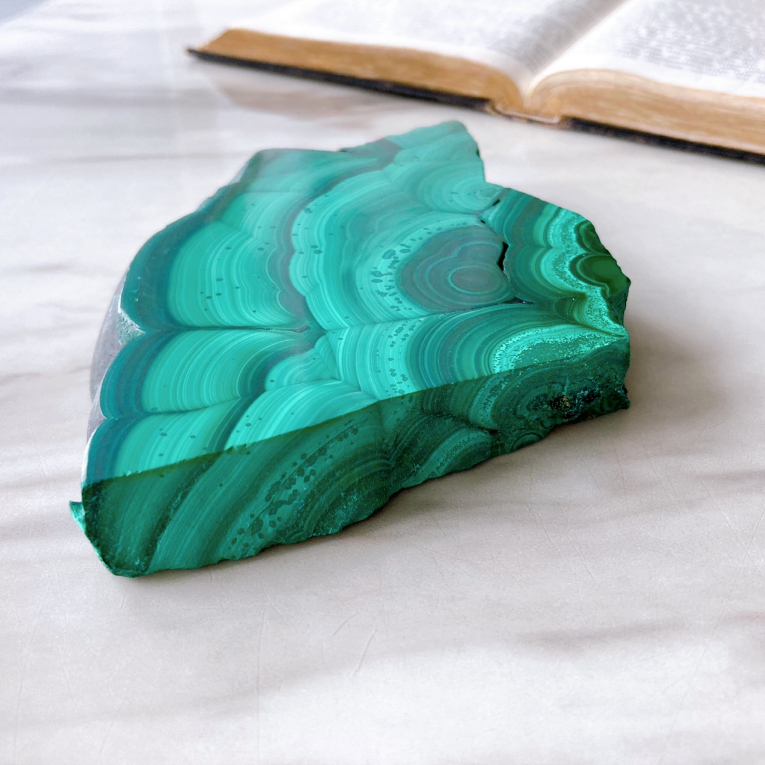 マラカイトは鮮やかな緑色と美しい縞模様を持つ天然石です。