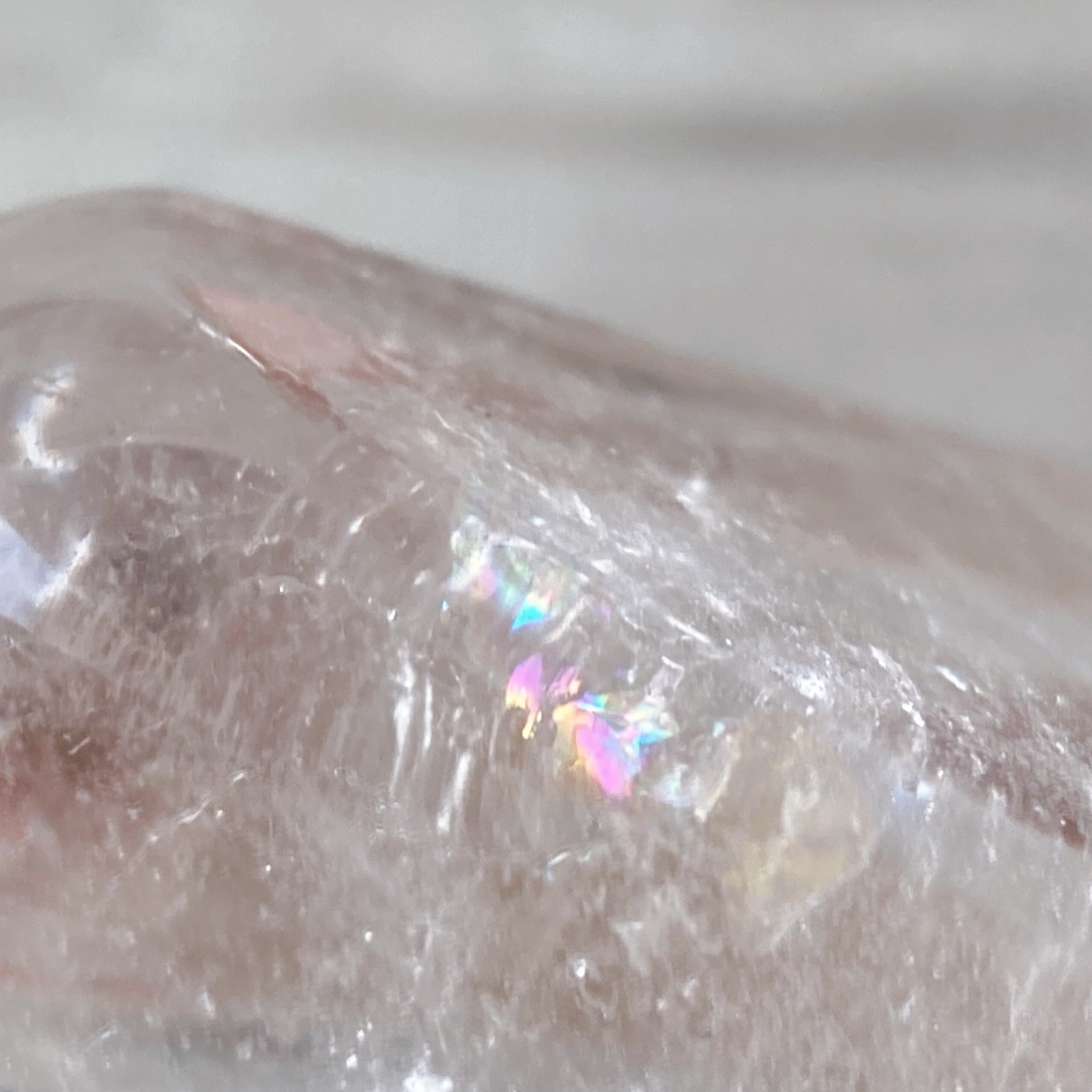 クリアクォーツのムーン型トレイです。アクセサリーや天然石の浄化など、使い方は自由自在です。イエローの内包物はゴールデンヒーラーの成分のヘマタイトです。