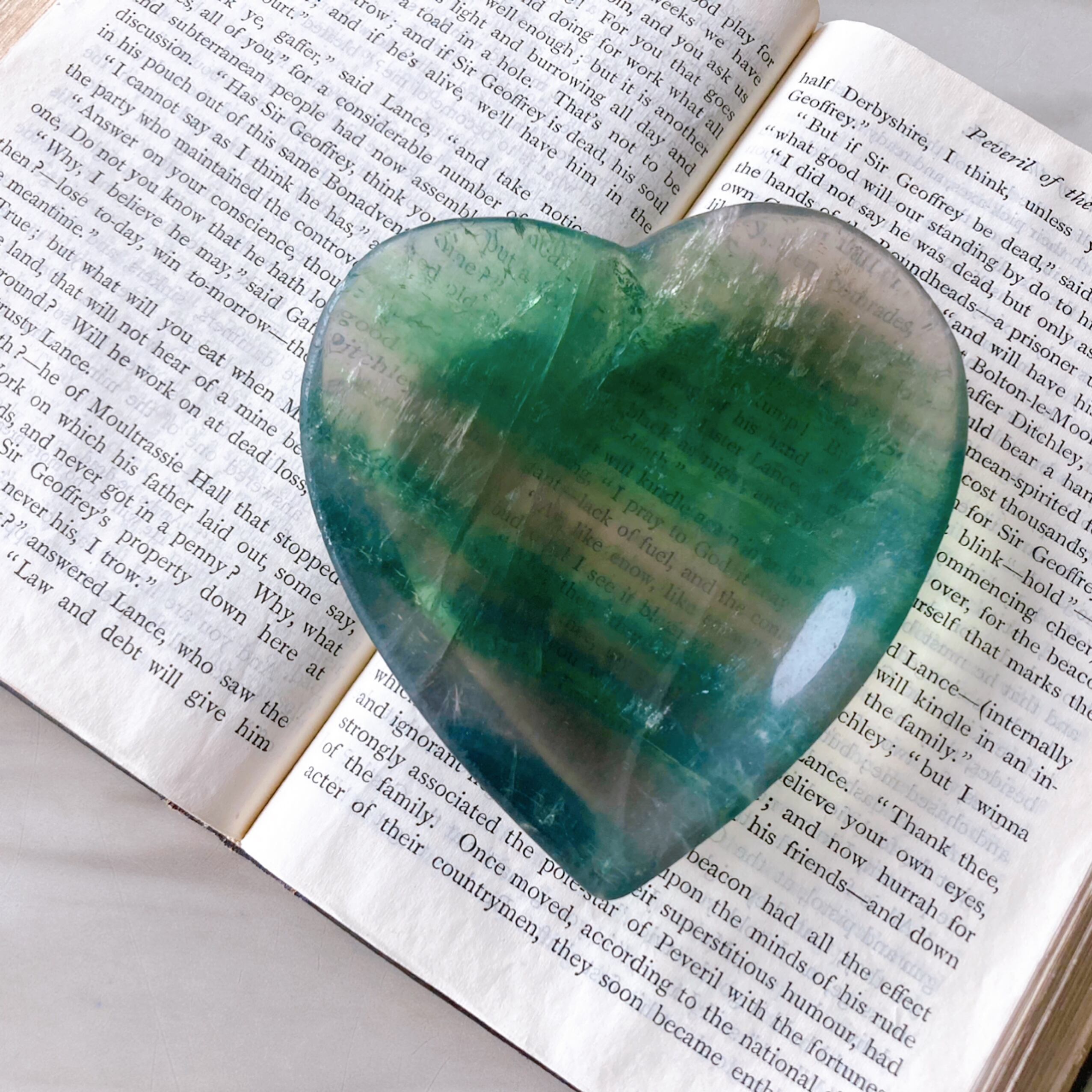 フローライトのハート型トレイです。グリーンとパープルのグラデーションがとても綺麗です。
