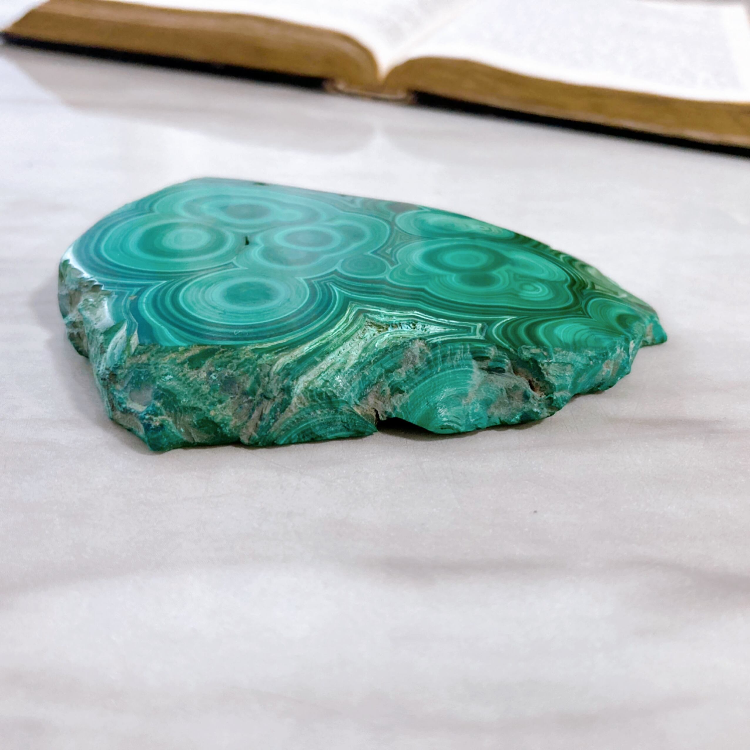 マラカイトは鮮やかな緑色と美しい縞模様を持つ天然石です。