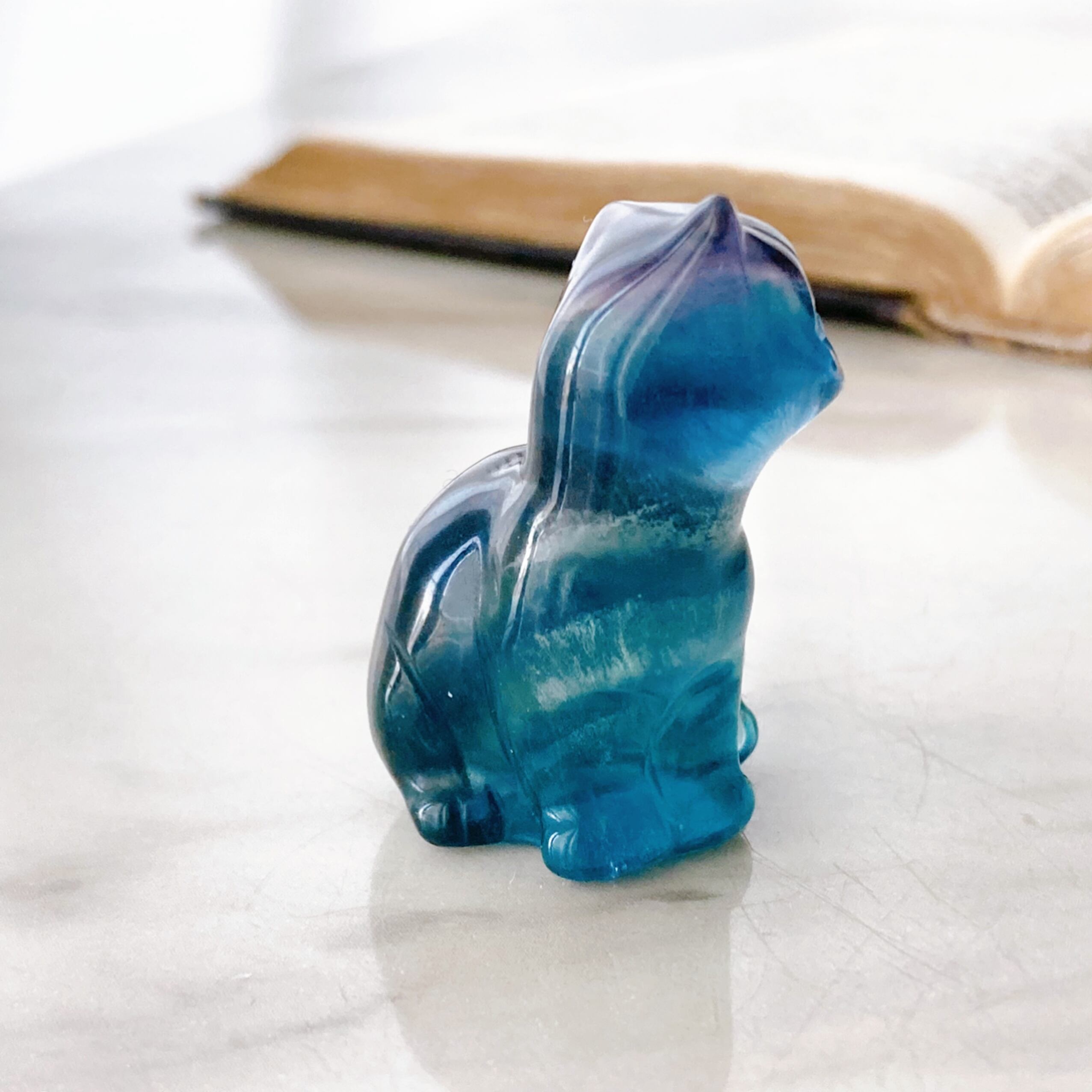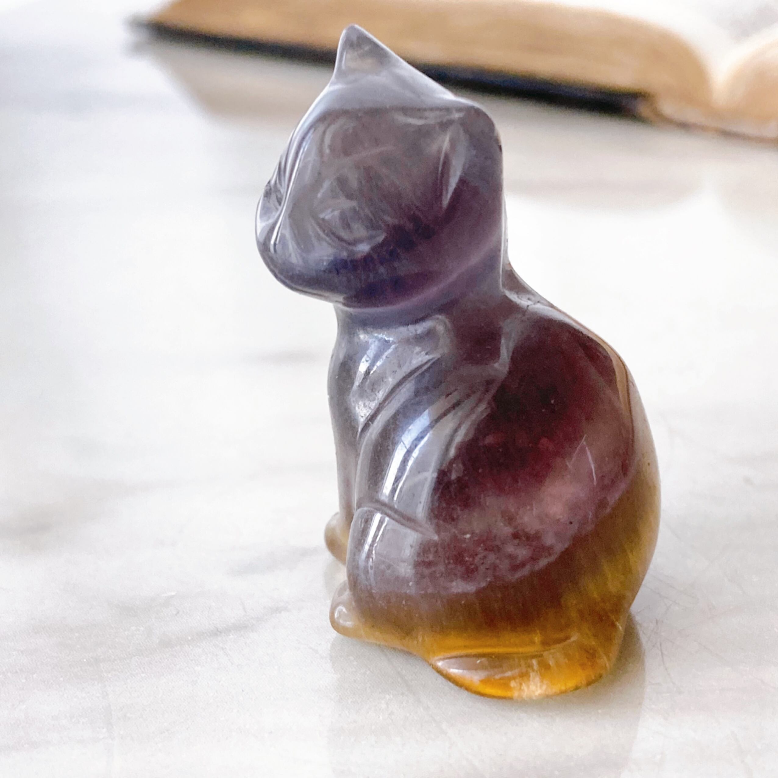 フローライトの可愛い猫ちゃんです。パープル&イエローの子と、ブルーのグラデーションがキレイな子。色味も目の形も違い、それぞれ個性的な子たちです。