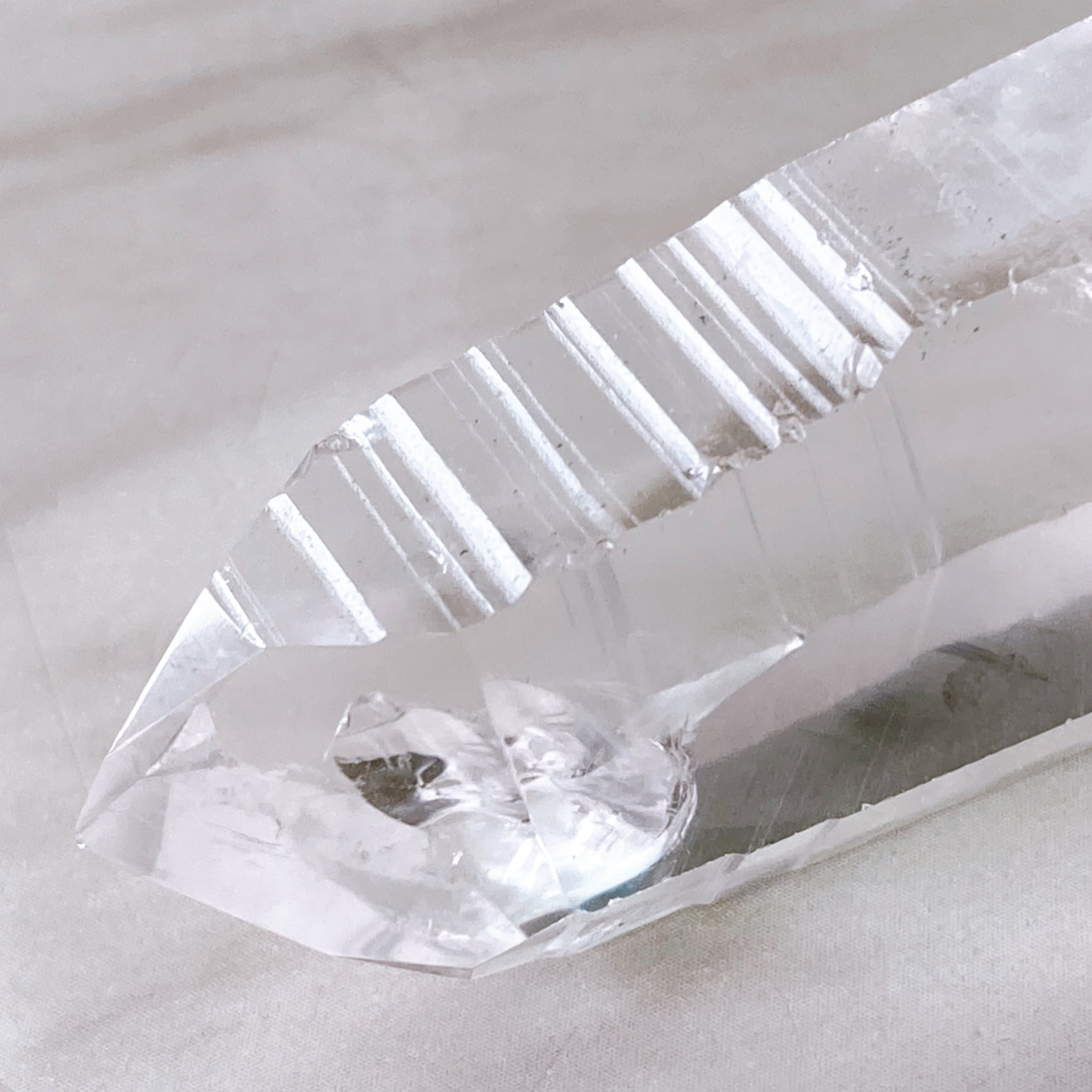 ダウとは、水晶のファセット面(水晶の先端の面・錐面とも呼びます)に七角形と三角形が交互に並ぶ水晶のことを言います。理想的な結晶の形とされ、大変希少なクリスタルです。