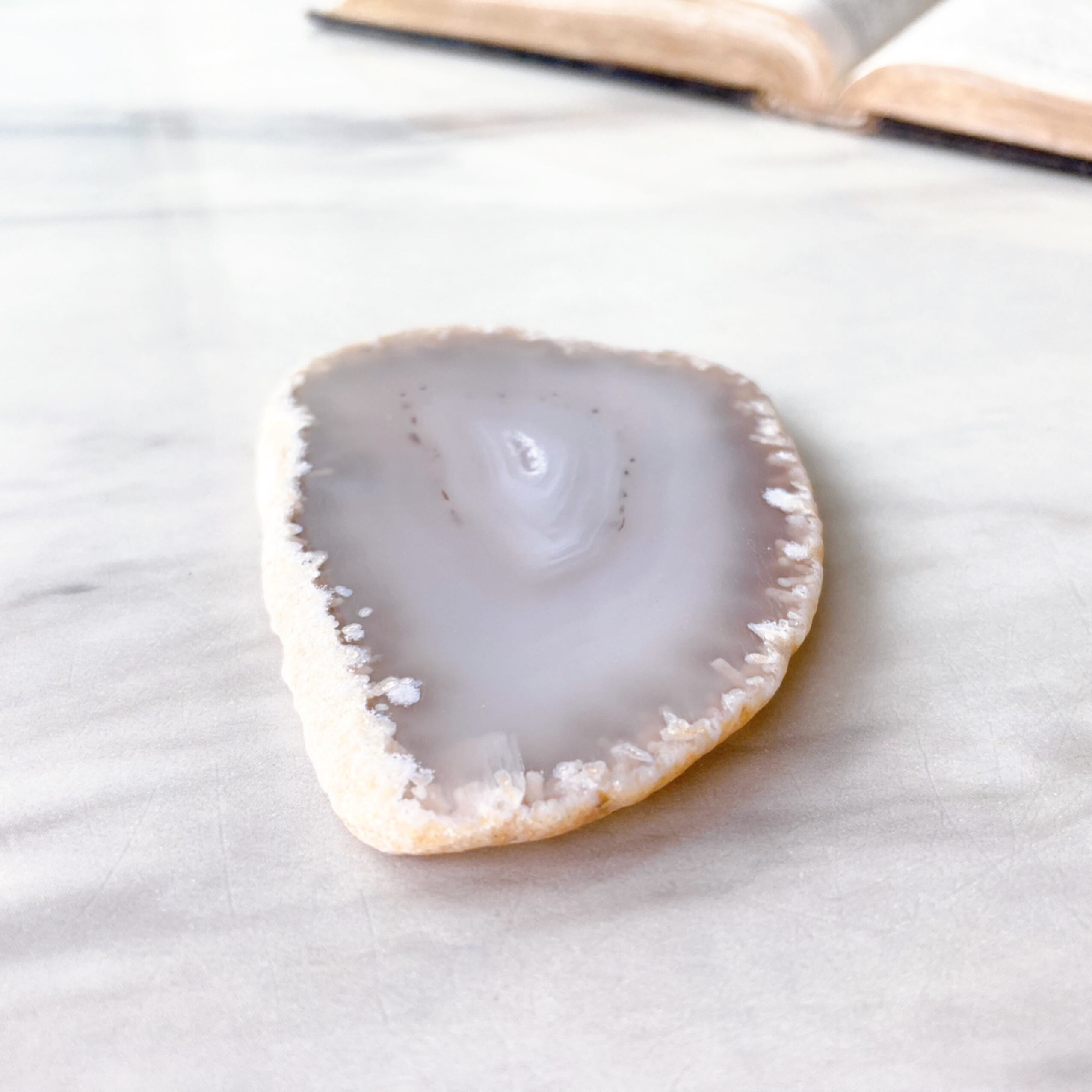 無着色のナチュラルメノウプレートです。透かすとキレイな模様が見られます。コースターとしてはもちろん、天然石やアクセサリーを置くのもおすすめです。