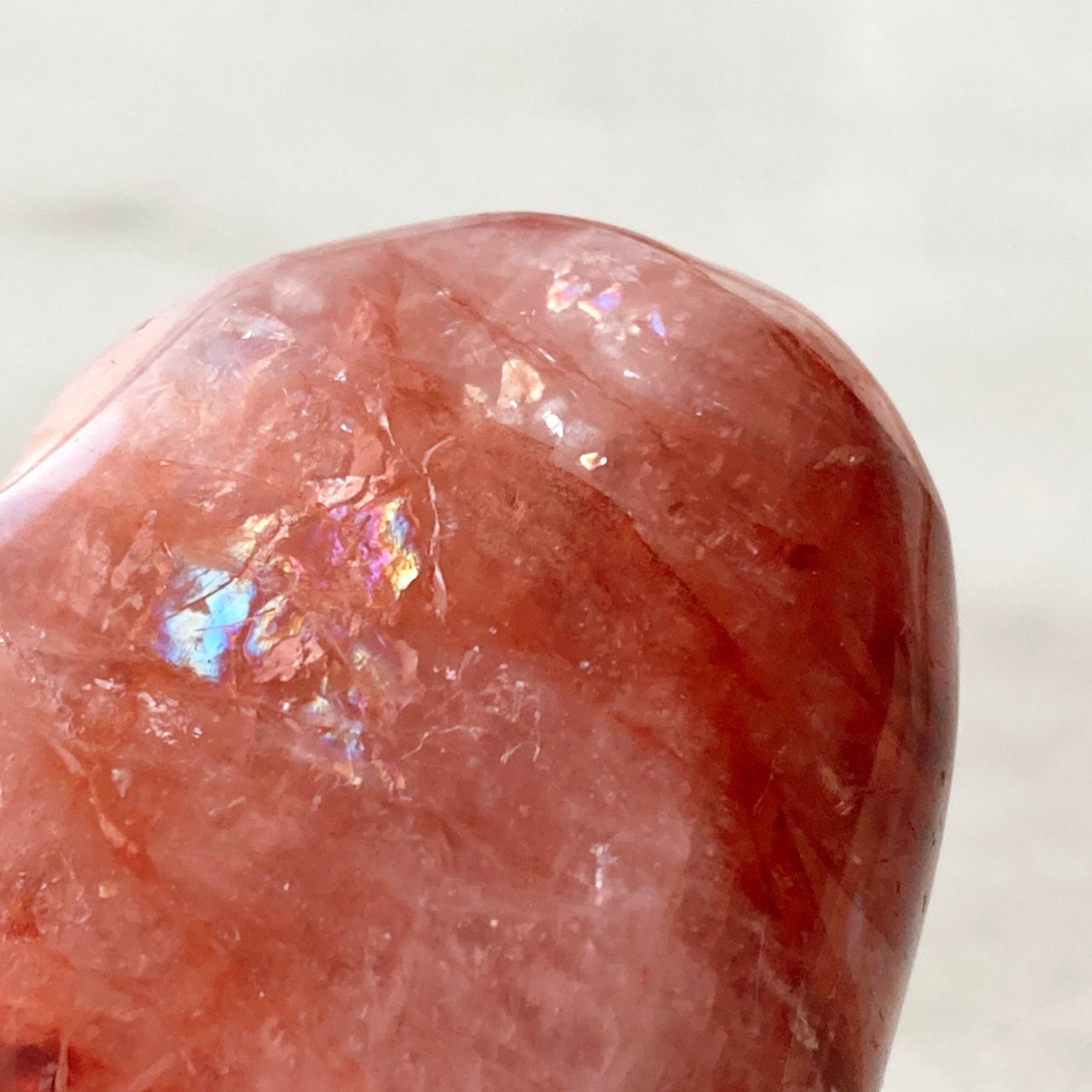 ぷっくりした形が可愛い、ハートのレッドクォーツ。虹がキレイです。