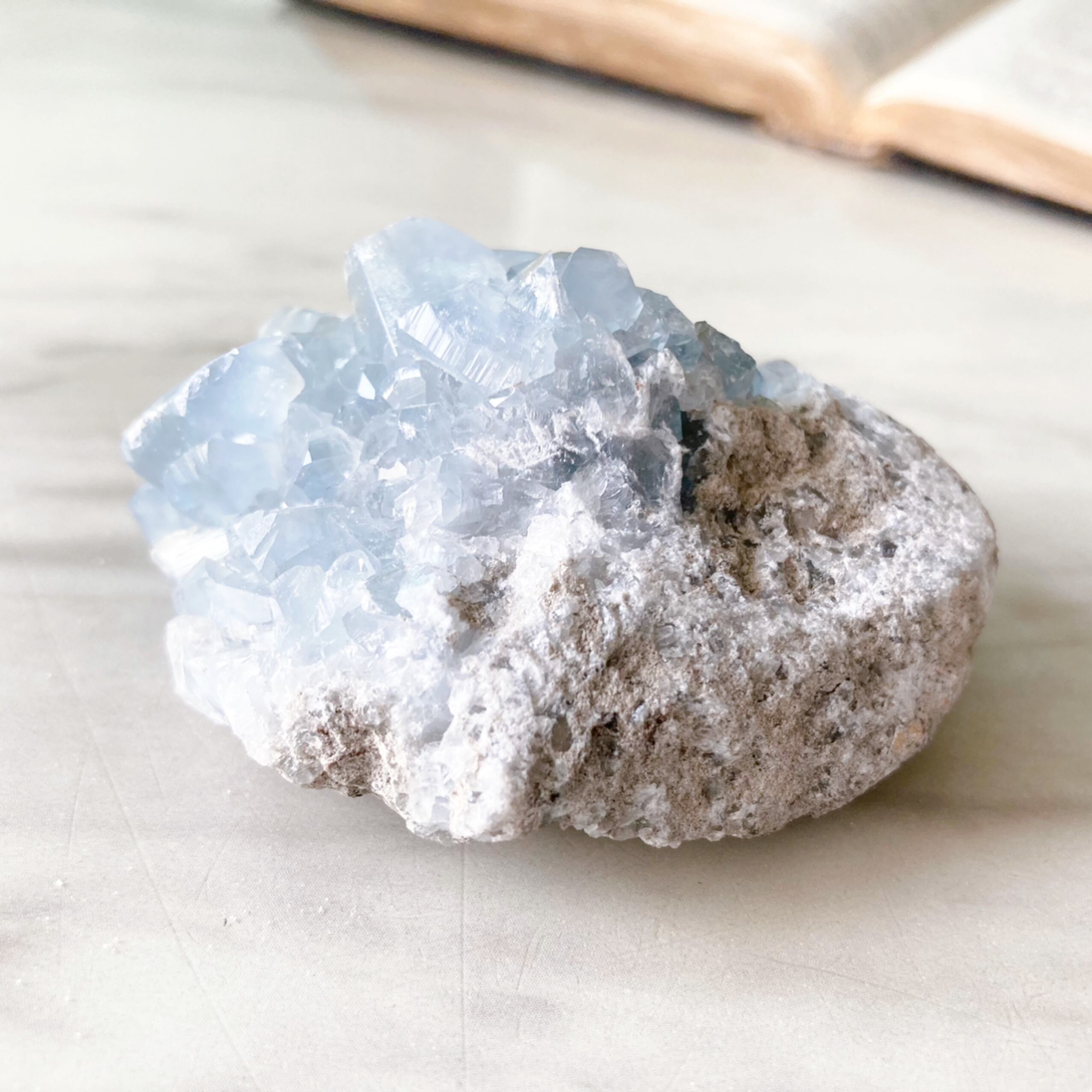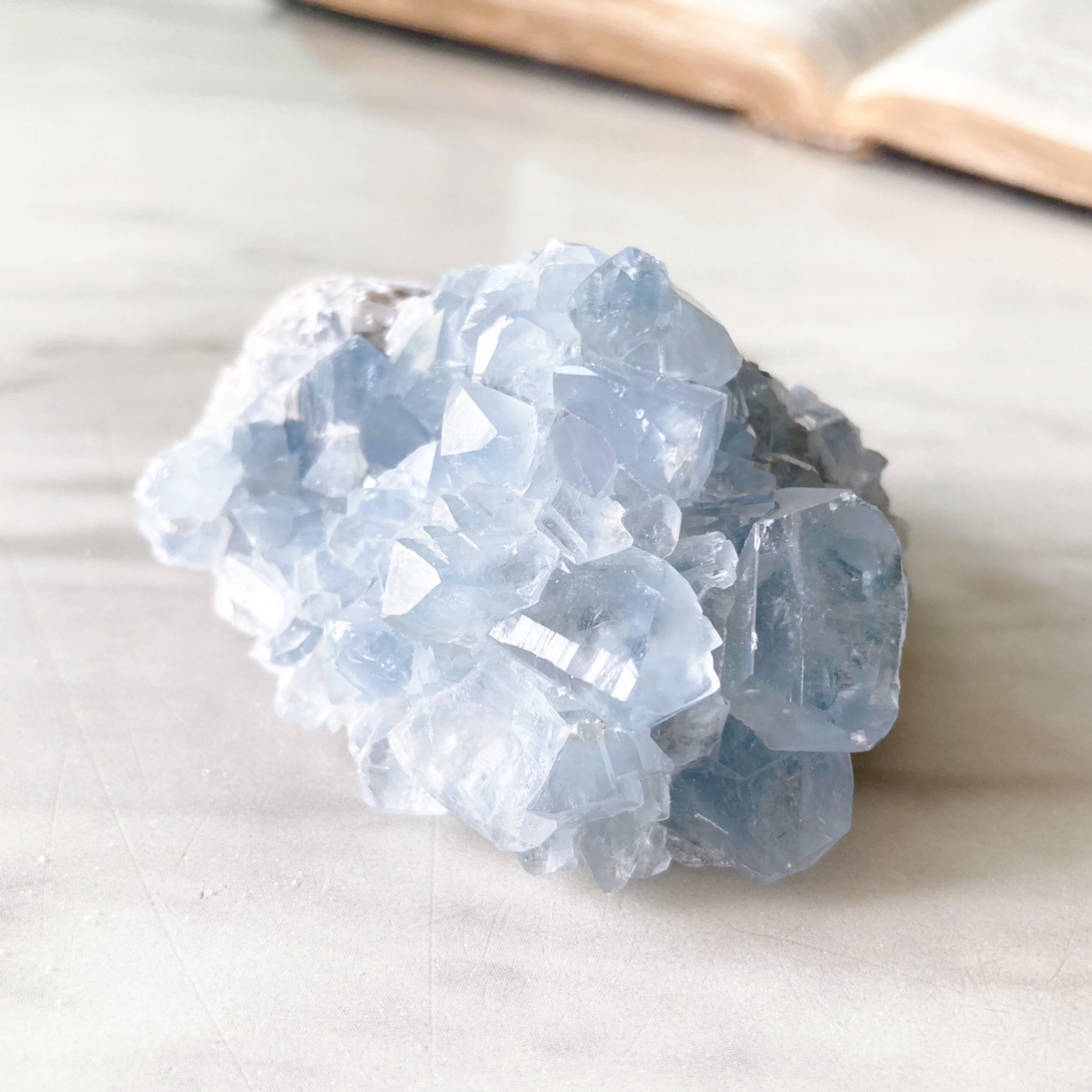 天青石という、青く晴れた空を連想させる和名を持つ、美しいスカイブルーのセレスタイト。ラテン語で「天国のような」という意味も持っています。