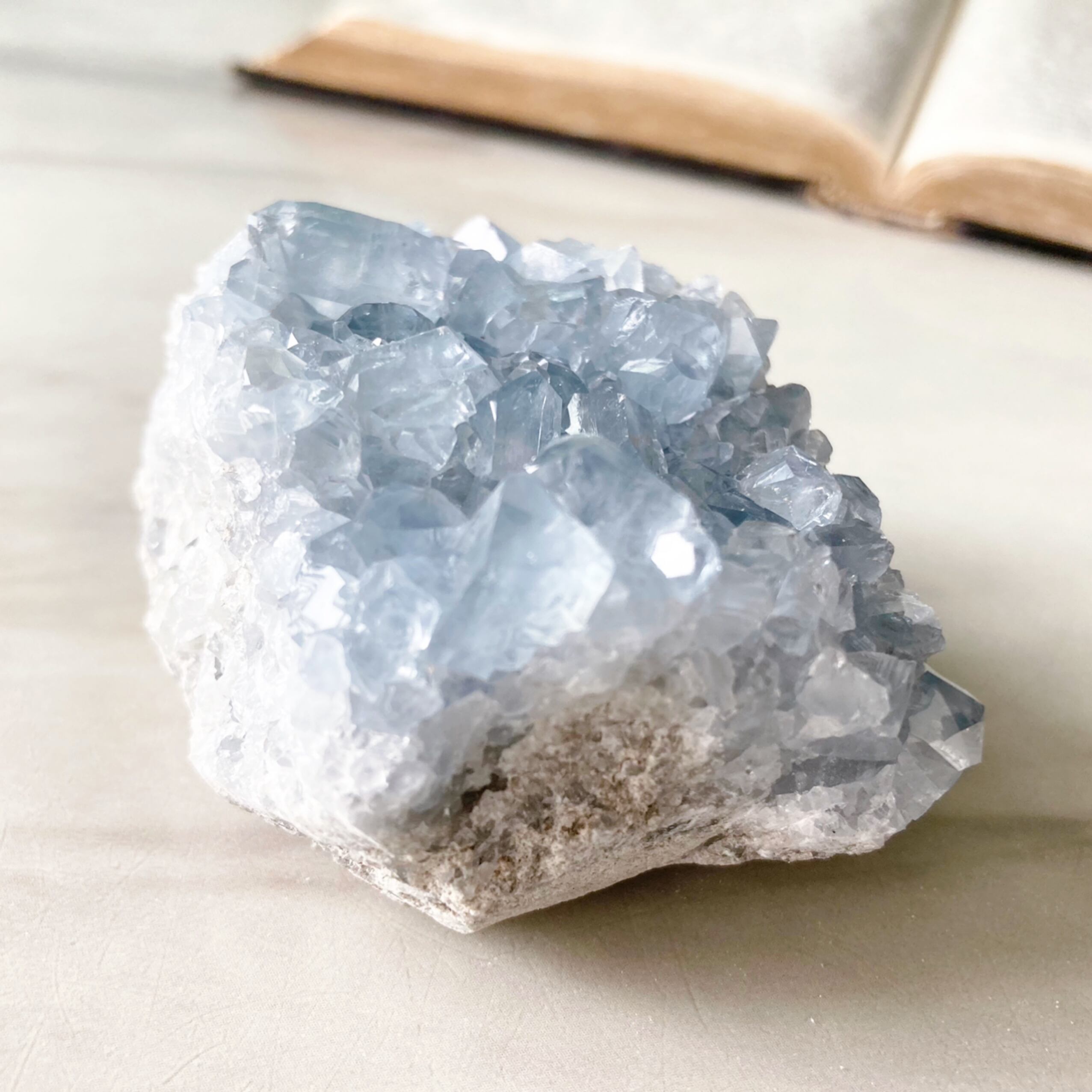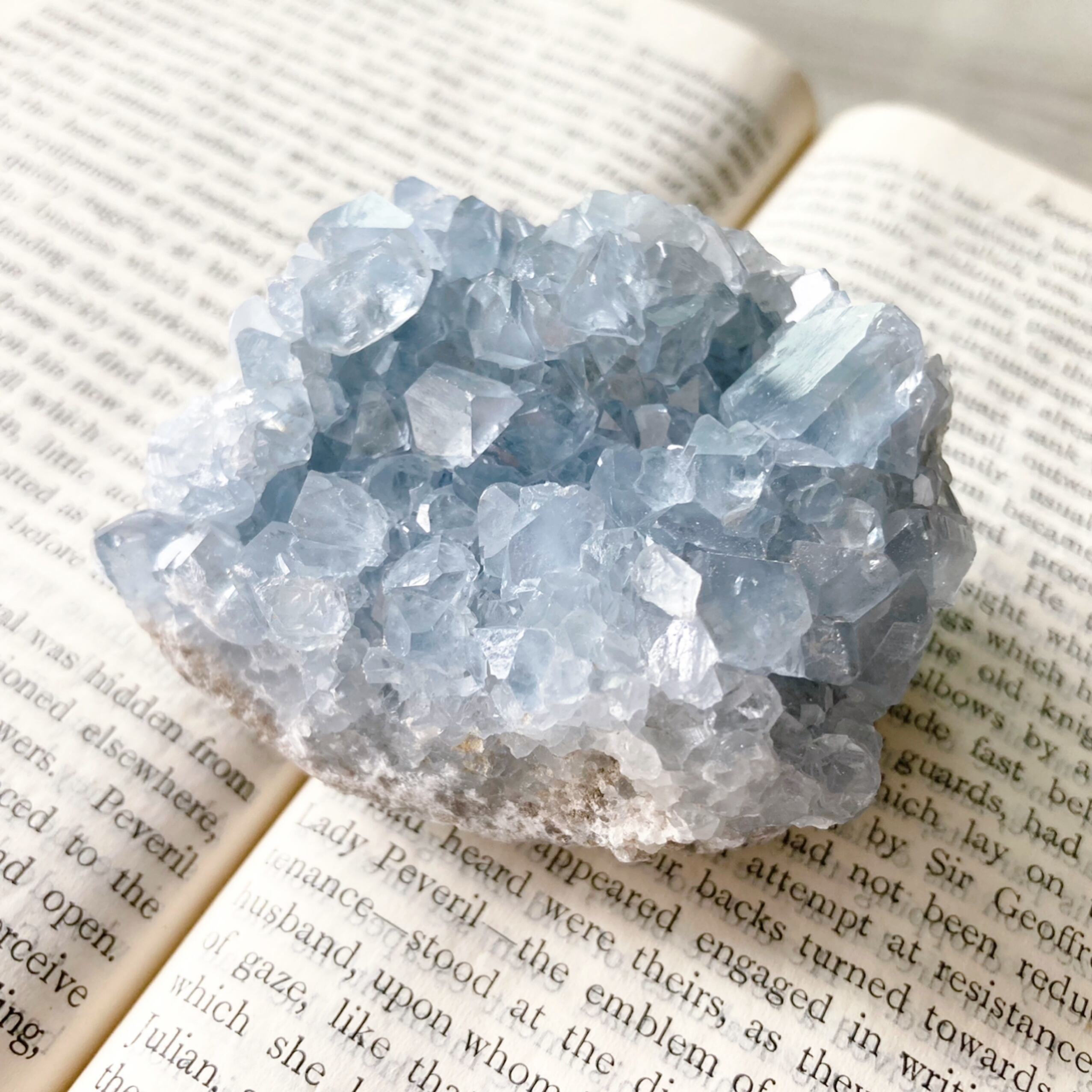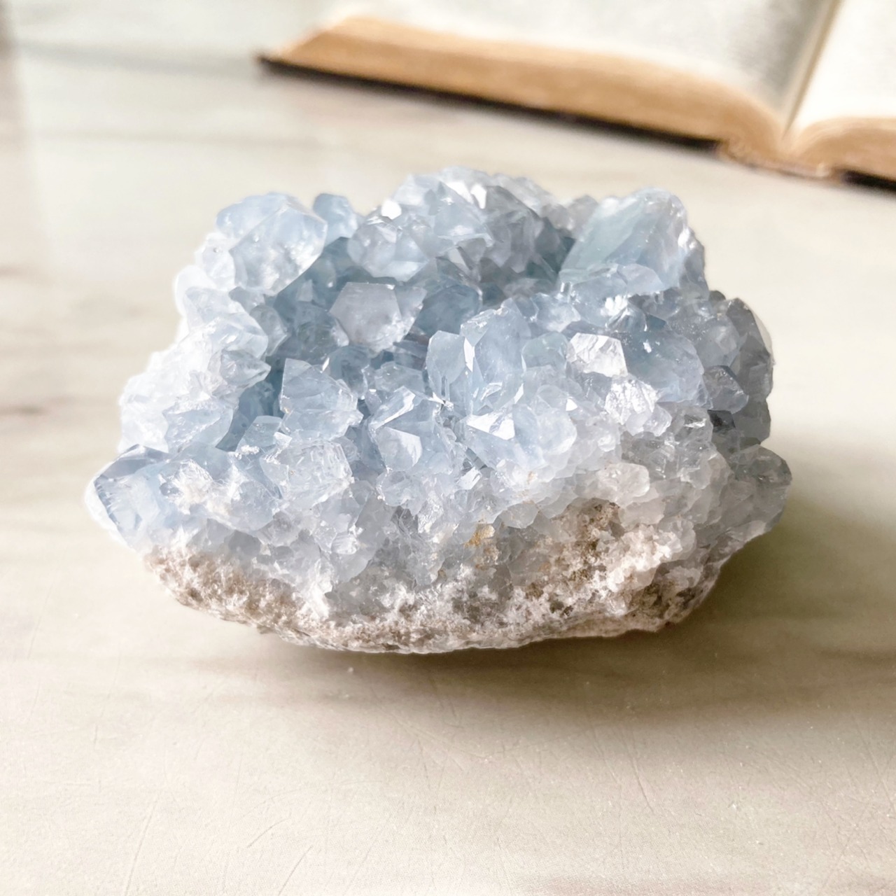 天青石という、青く晴れた空を連想させる和名を持つ、美しいスカイブルーのセレスタイト。ラテン語で「天国のような」という意味も持っています。