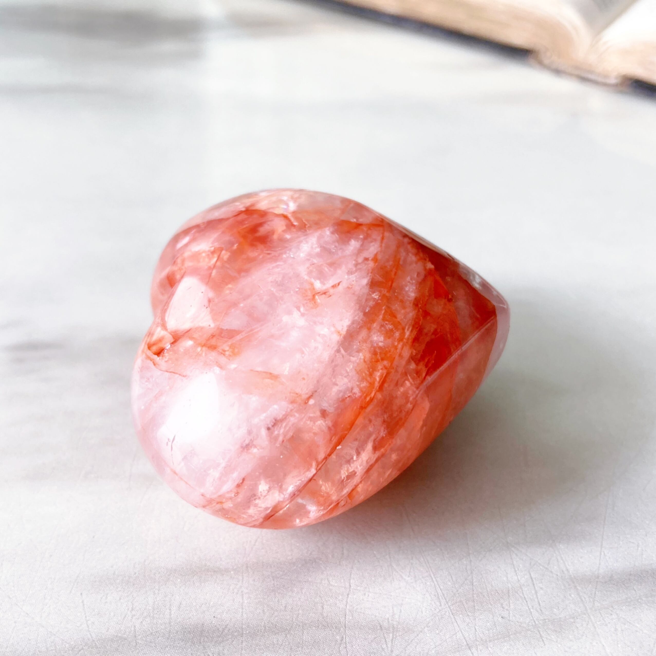 ぷっくりした形が可愛い、ハートのレッドクォーツ。虹がキレイです。