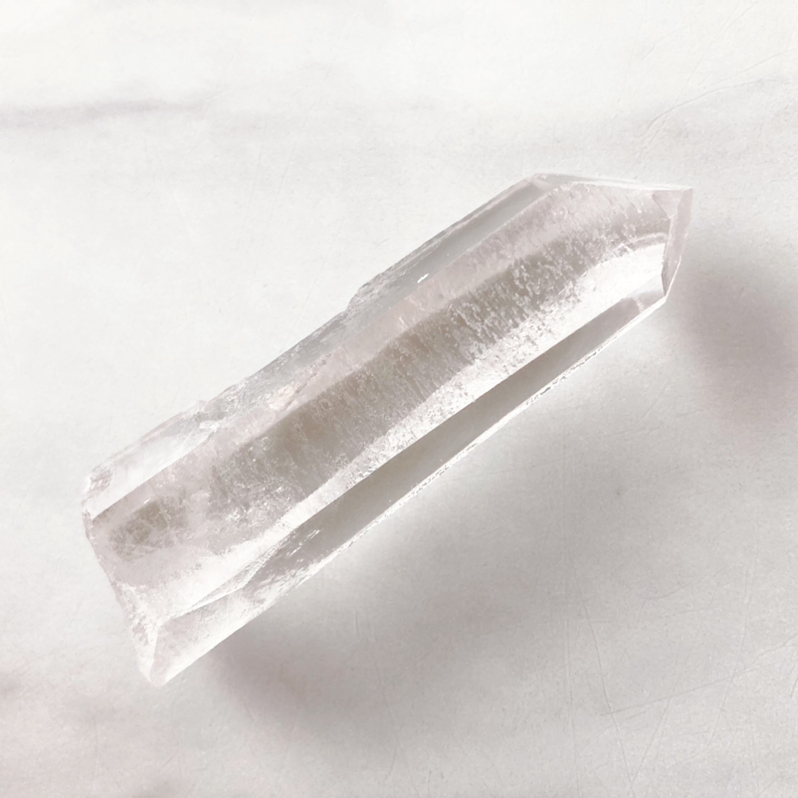 ヴィジョンクォーツは、氷のような透明感、煌めき、柱面に刻まれる無数の模様や条線が特徴のとても神秘的な水晶です。トマスゴンサガ産水晶、コロンビア産レムリアンシードに匹敵するほどの美しさです。