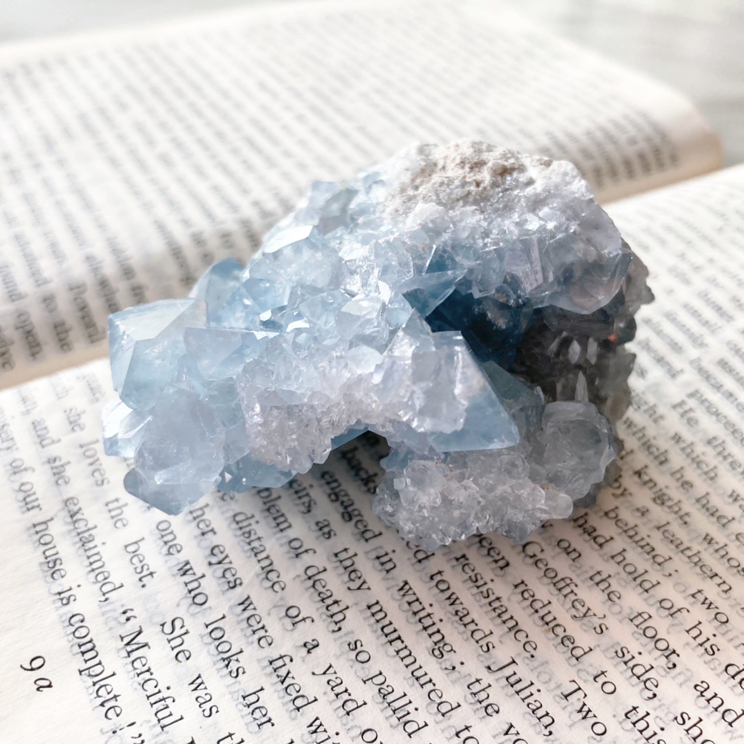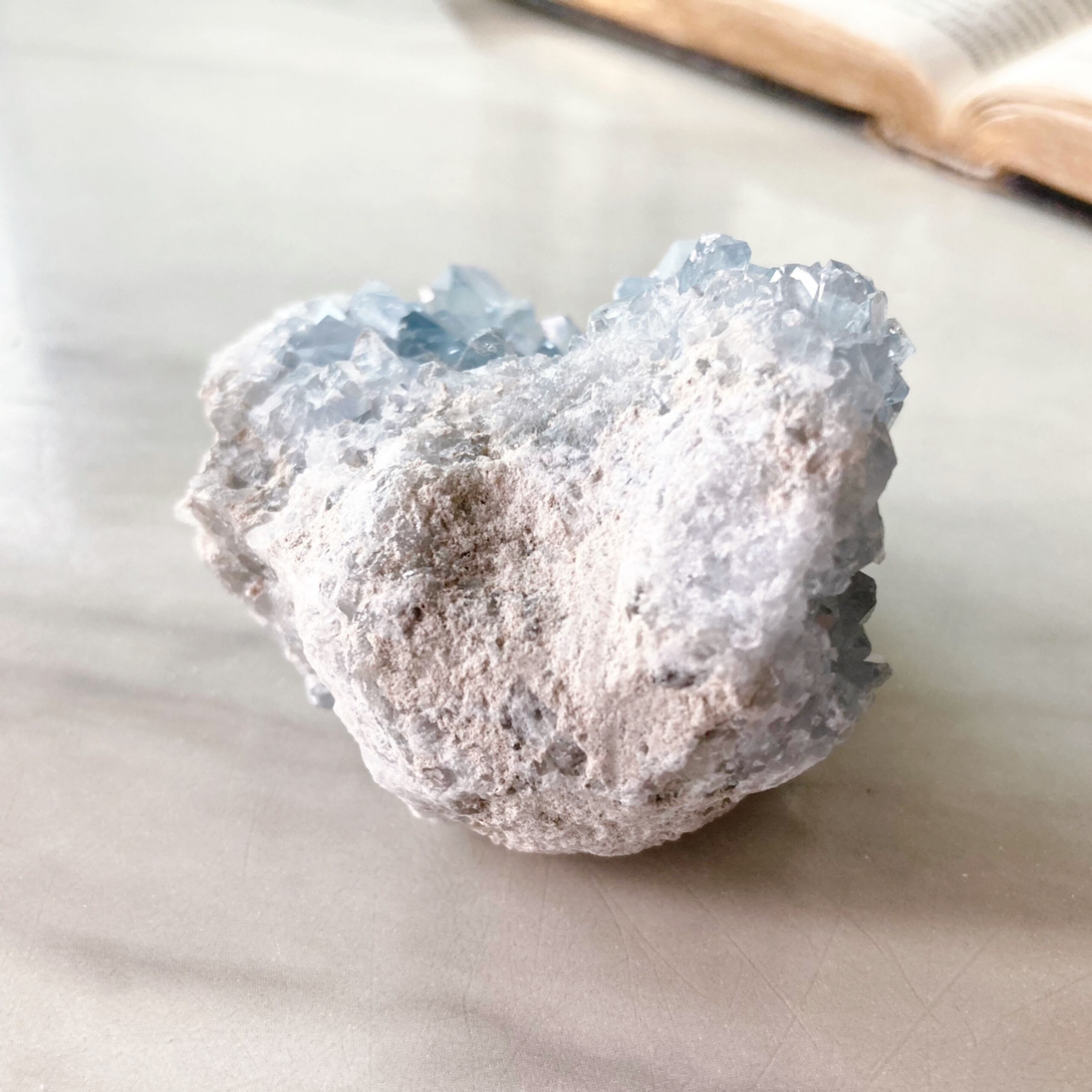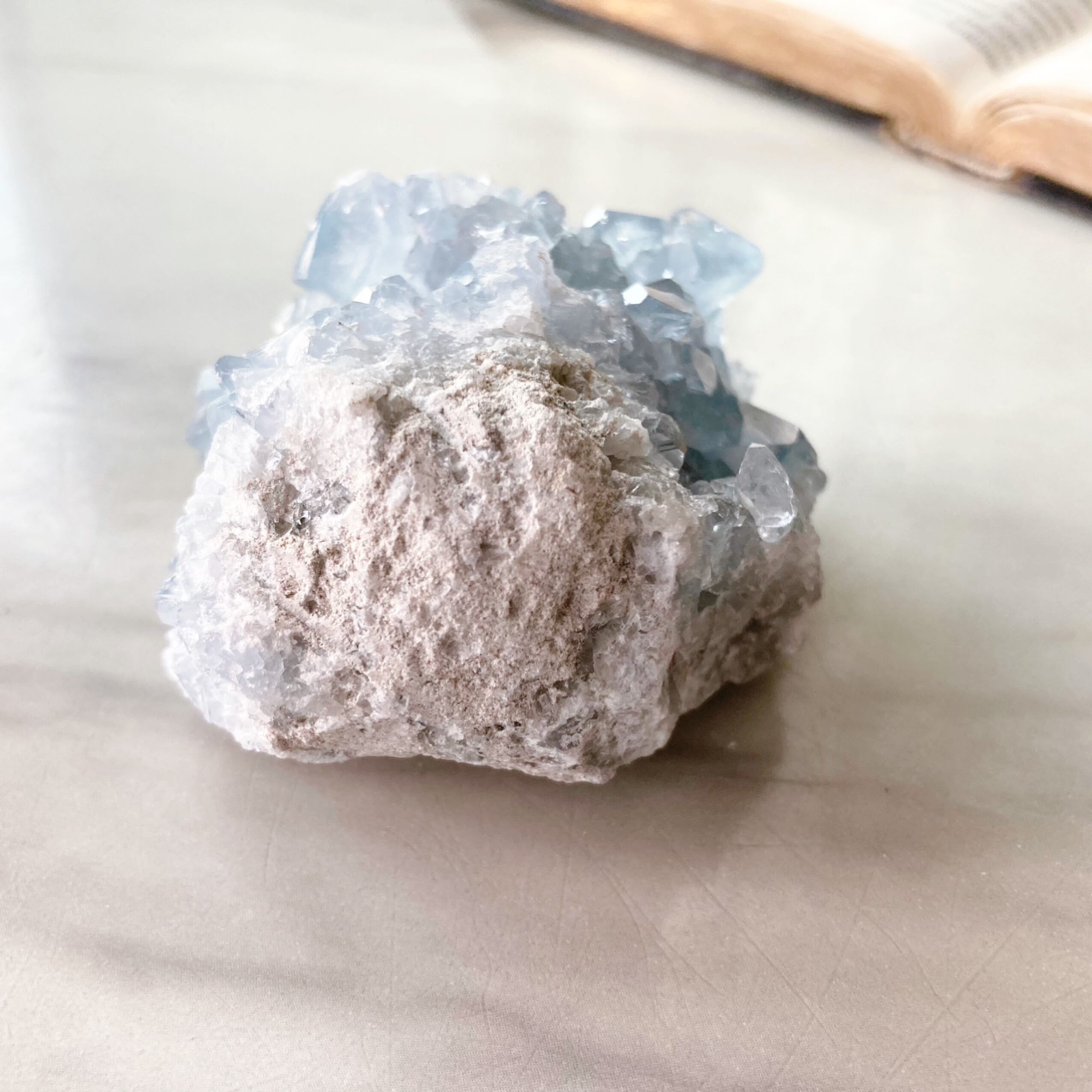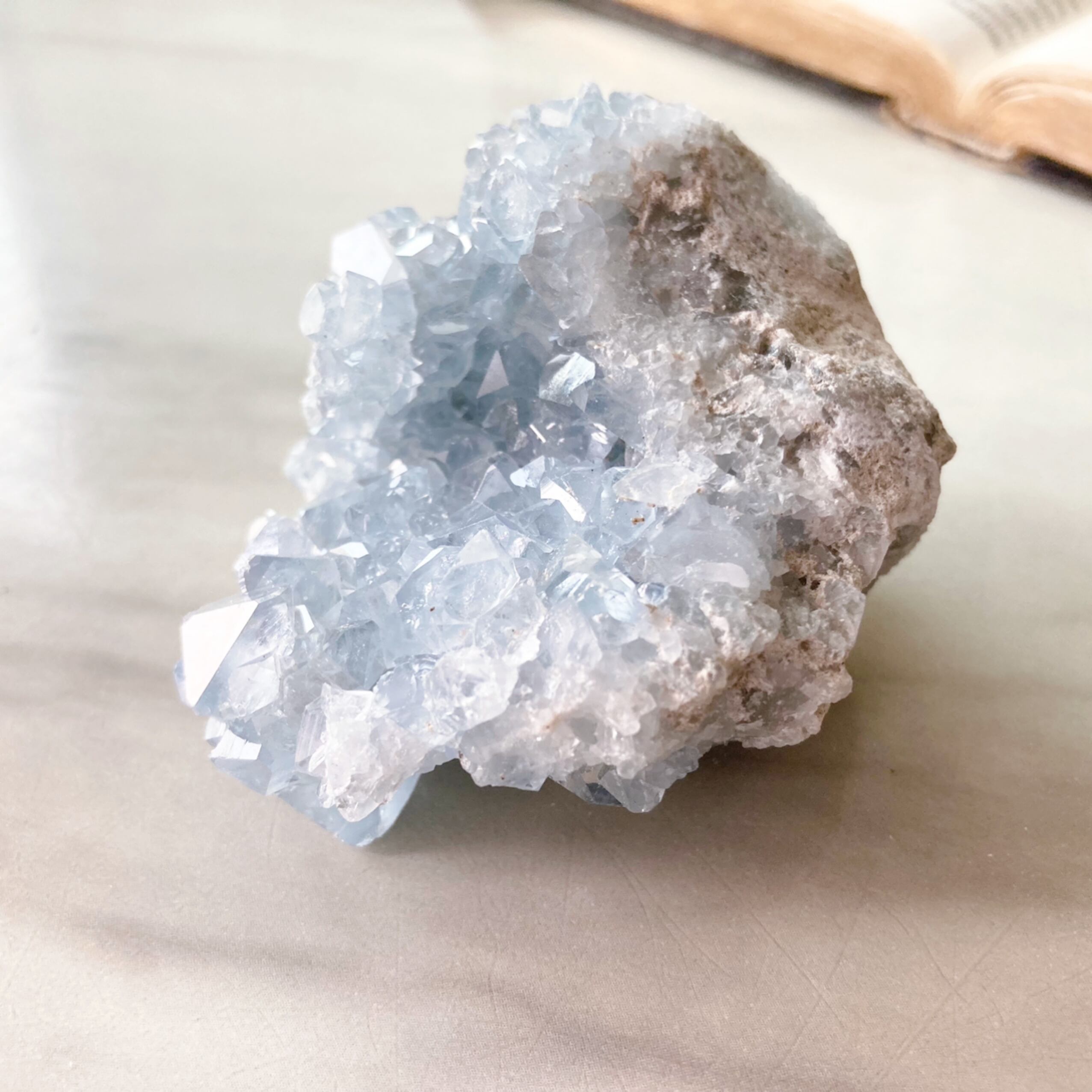 天青石という、青く晴れた空を連想させる和名を持つ、美しいスカイブルーのセレスタイト。ラテン語で「天国のような」という意味も持っています。
