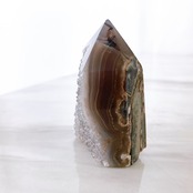 ドゥルージーアゲートのタワーです。シックなグレーカラーのドゥルージーと周りのブラウンの縞模様がキレイです。
