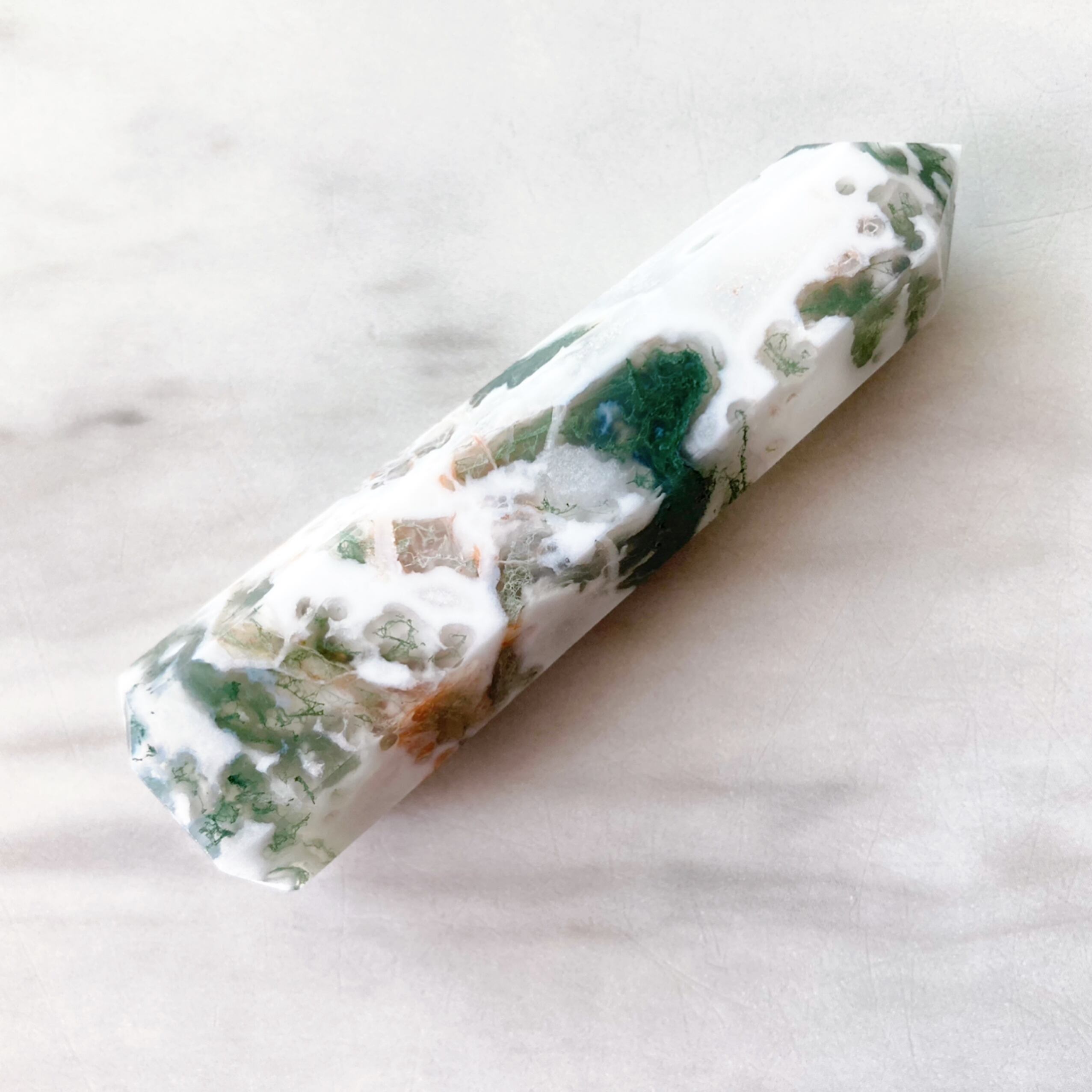 モスアゲートは、癒しの石として知られています。感情の乱れを整え、エゴや執着を解き放ち、心身を安定した状態に保ち、生活に疲れた人に平和で穏やかなパワーをもたらしてくれるでしょう。