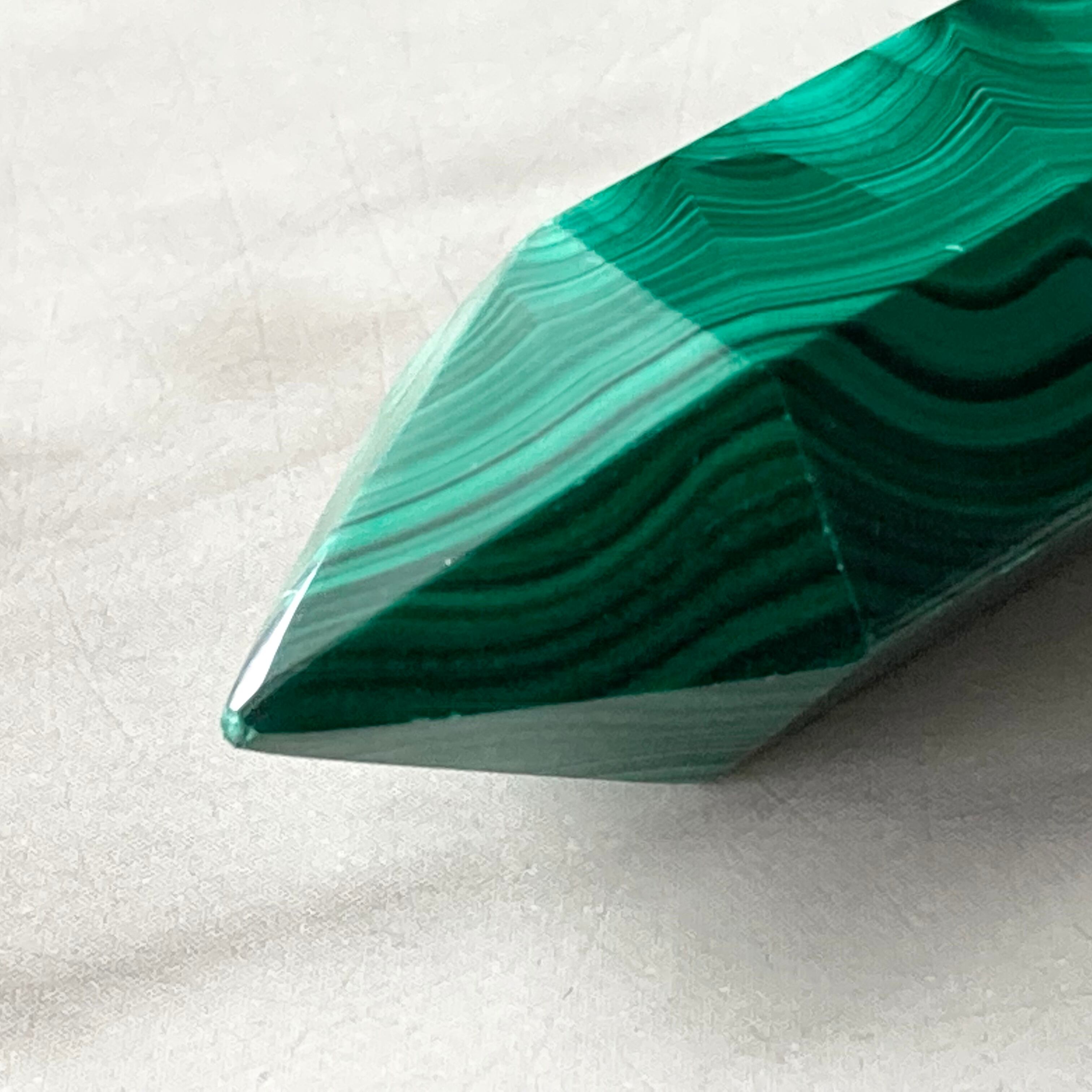 マラカイトは鮮やかな緑色と美しい縞模様を持つ天然石です。