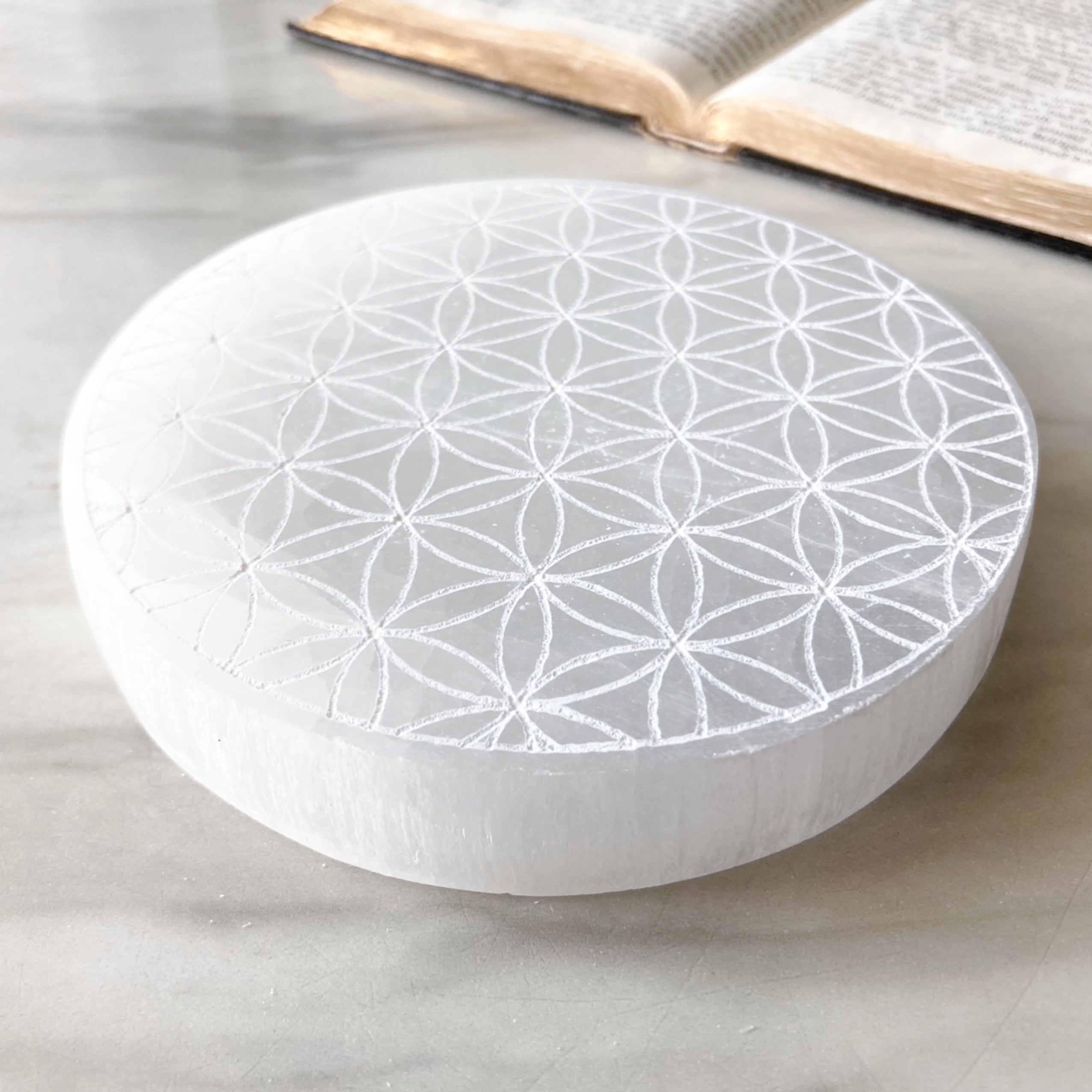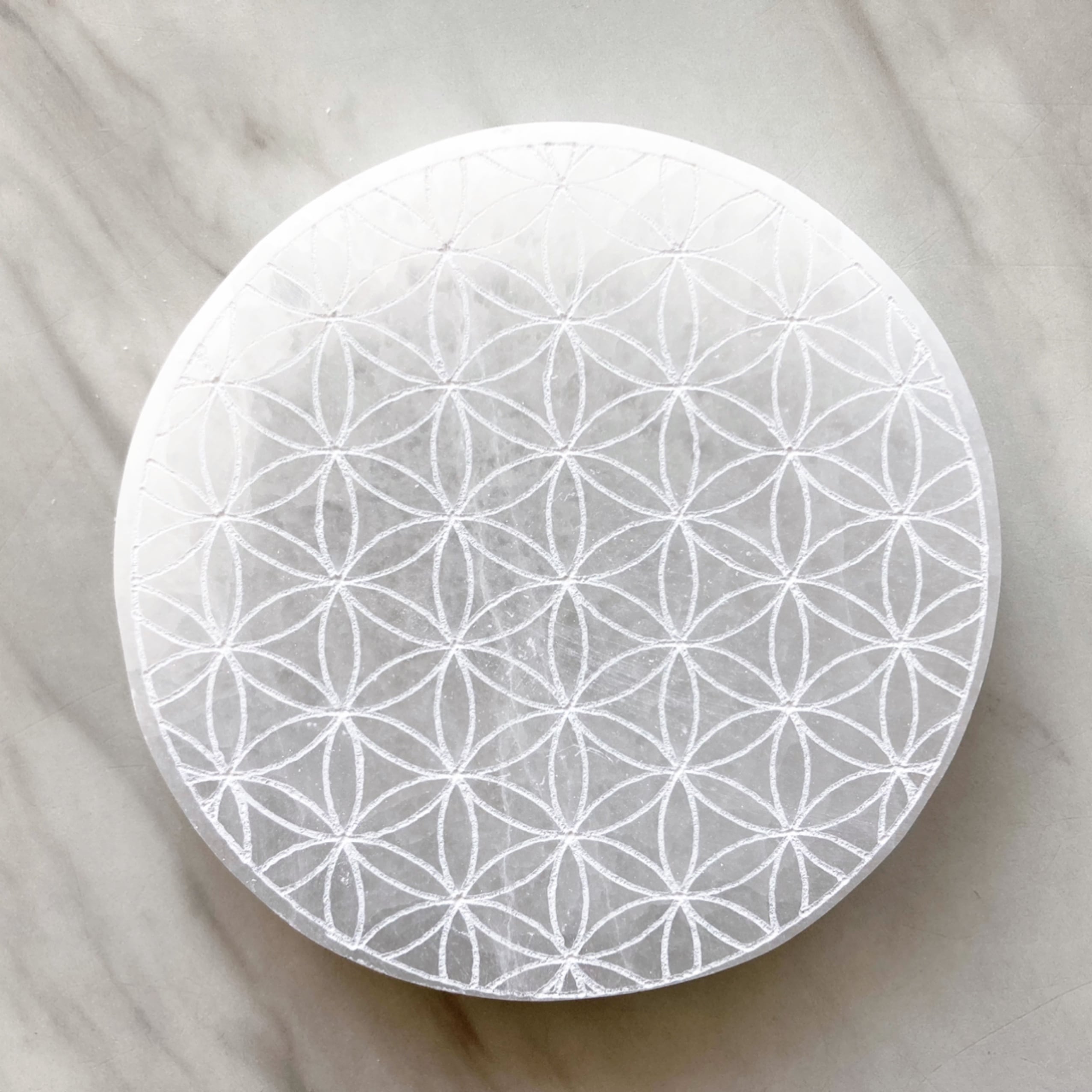 セレナイトプレート 神聖幾何学 フラワーオブライフ 12cm