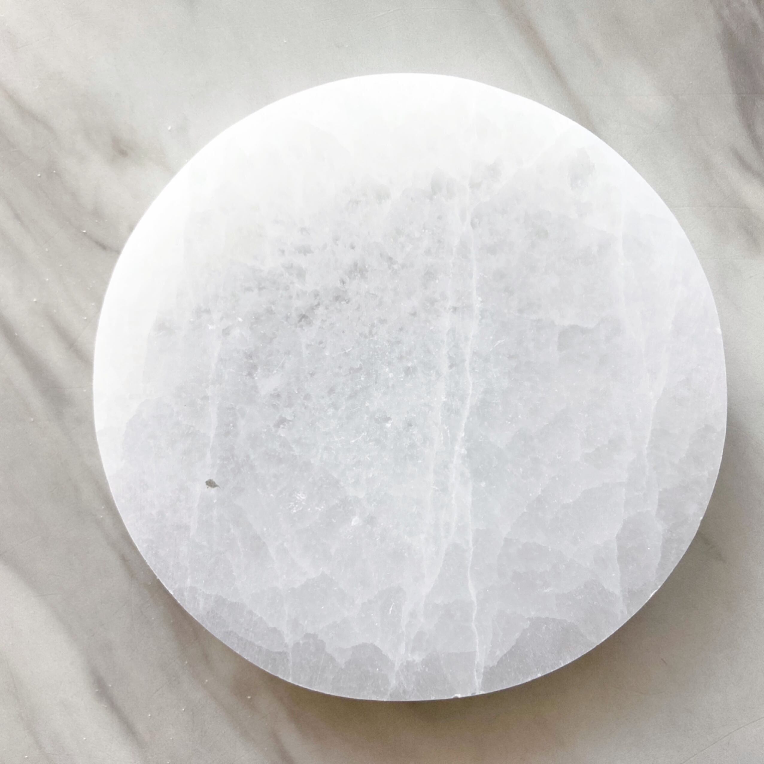 セレナイトの神聖幾何学プレート、12cmのタイプです。クリスタルグリッドや、天然石のディスプレイなど、自由な発想でお使いください。