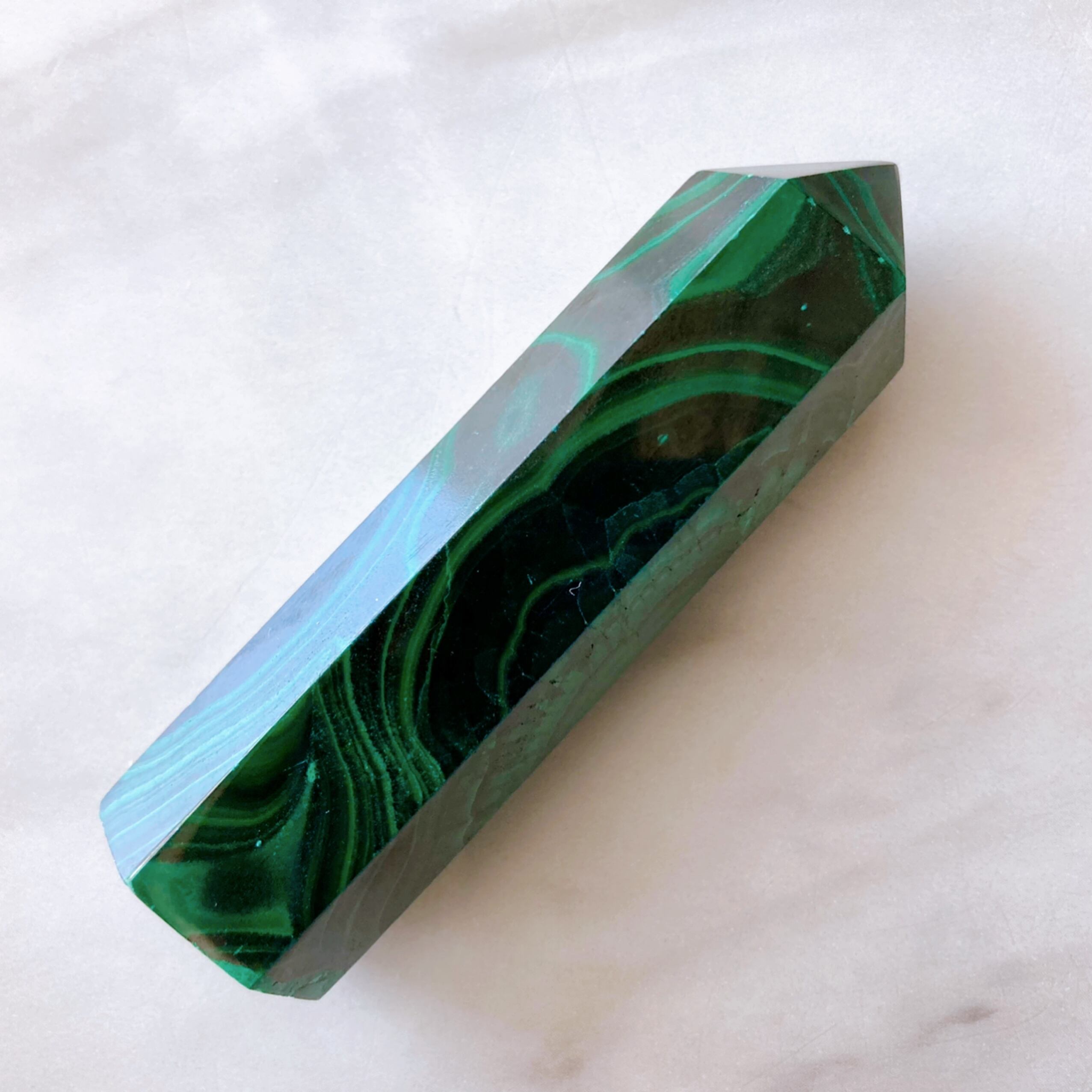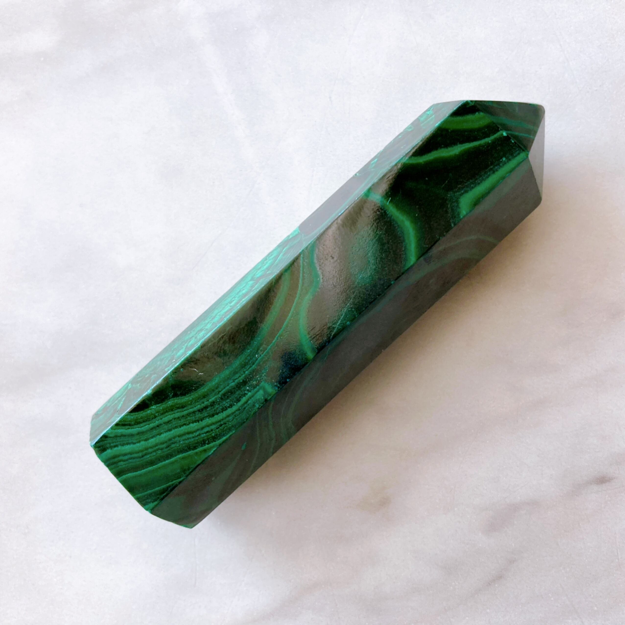 マラカイトのタワーです。濃いグリーンと淡いグリーンの色合いがステキです。