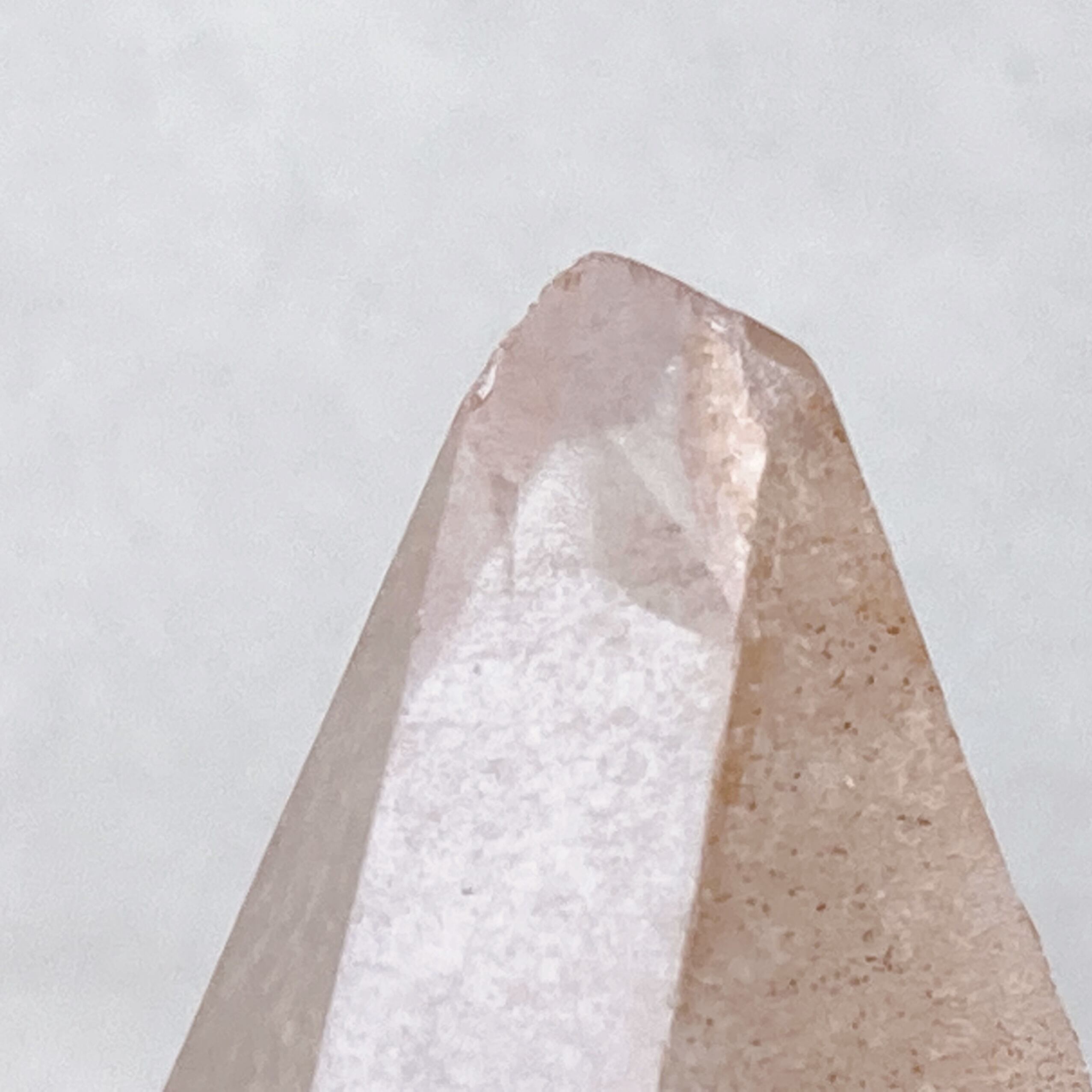 透明感の高いオレンジレムリアンシードです。キー(鍵穴)とレインボーが見られ、錐面にピラミッドのような模様が浮き上がって見えます。