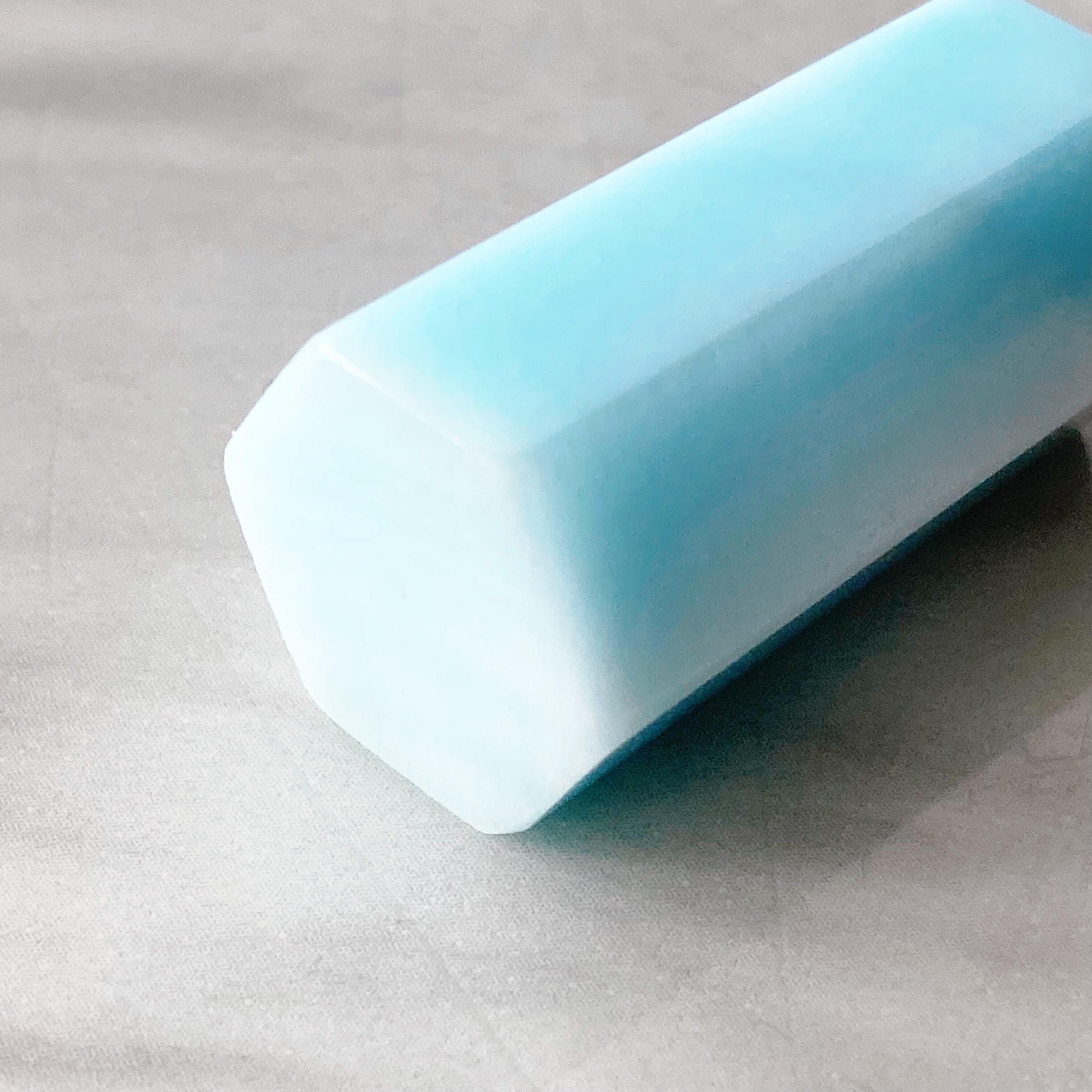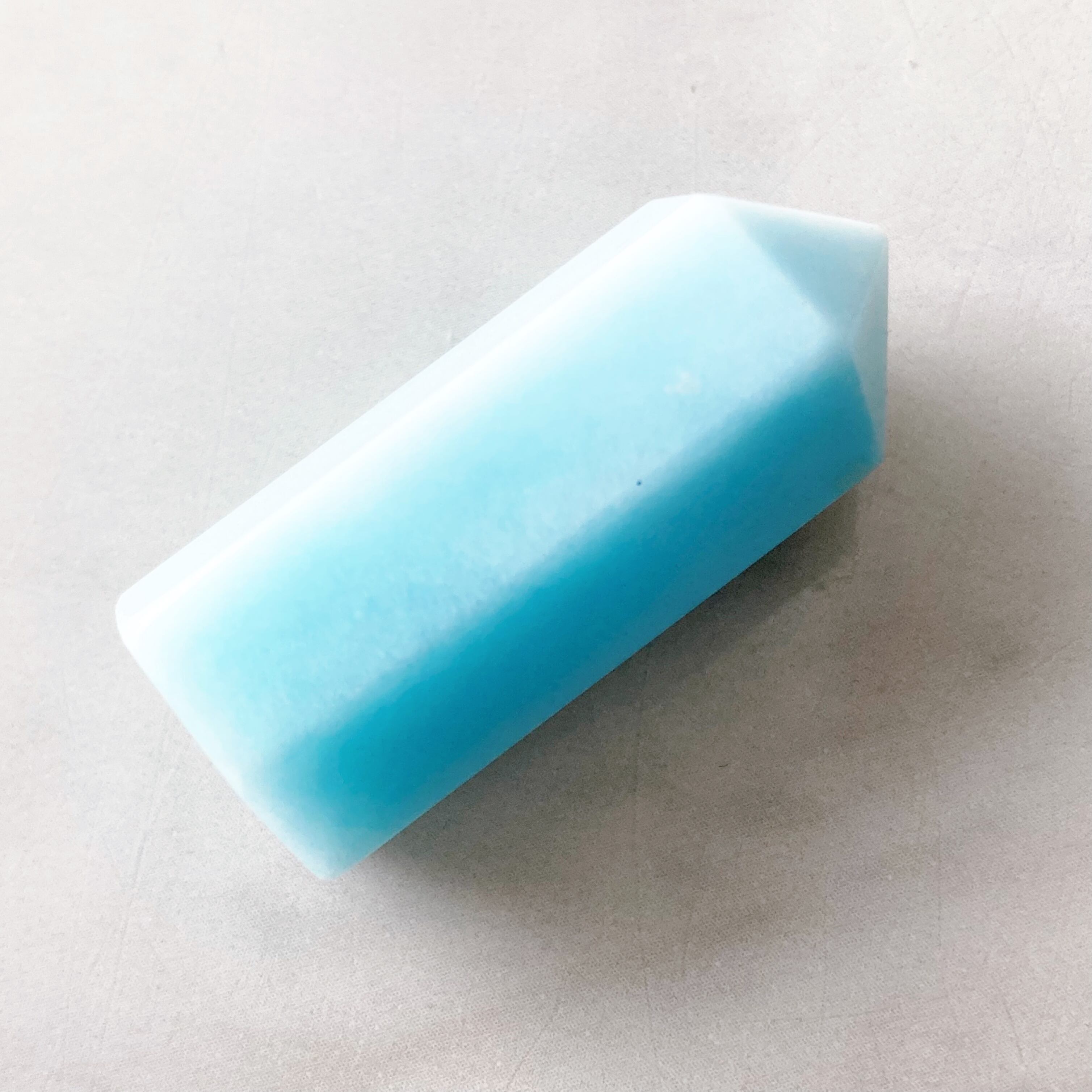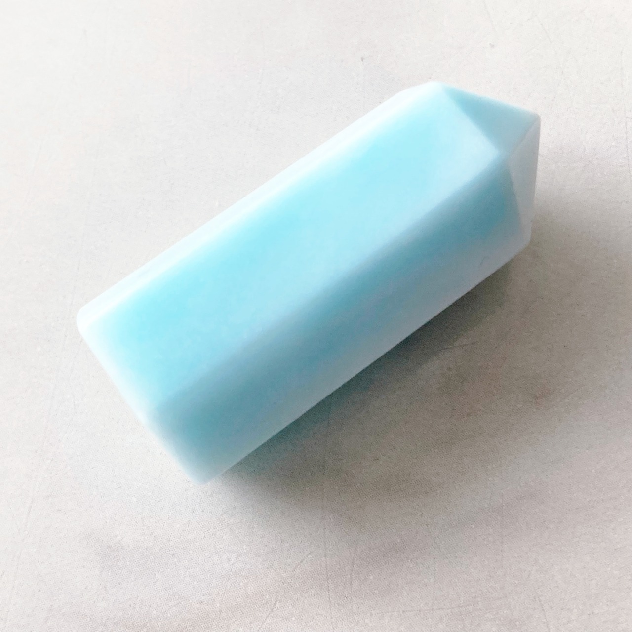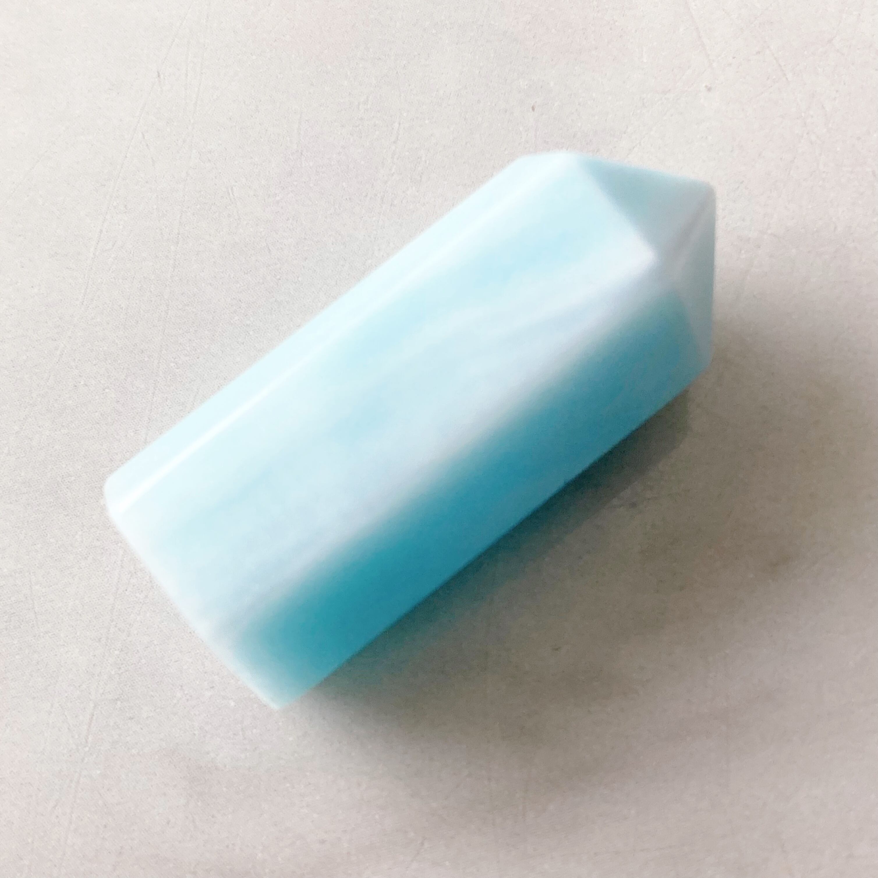 ブルーアラゴナイトのミニタワーです。淡いブルーとホワイトのラインがキレイです。