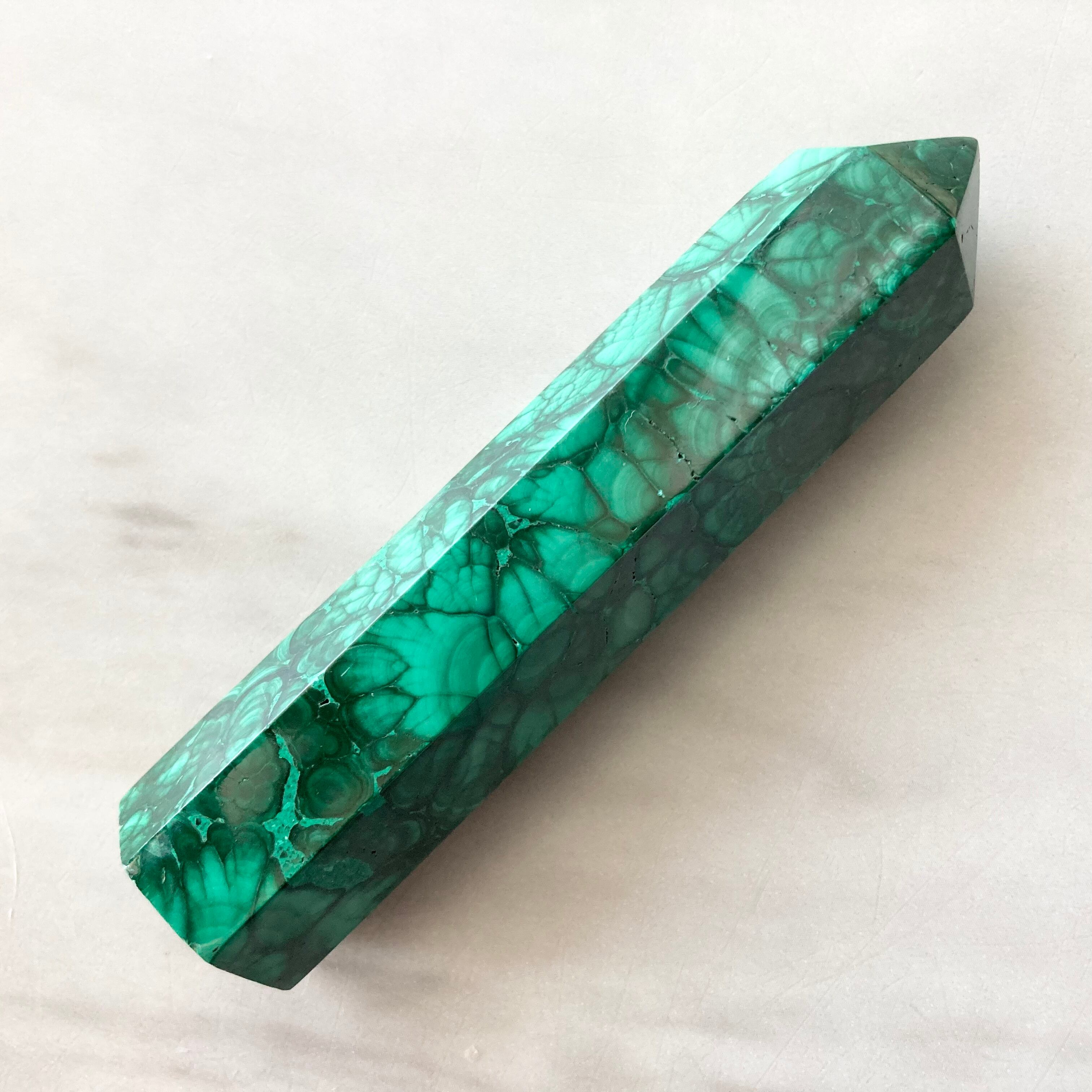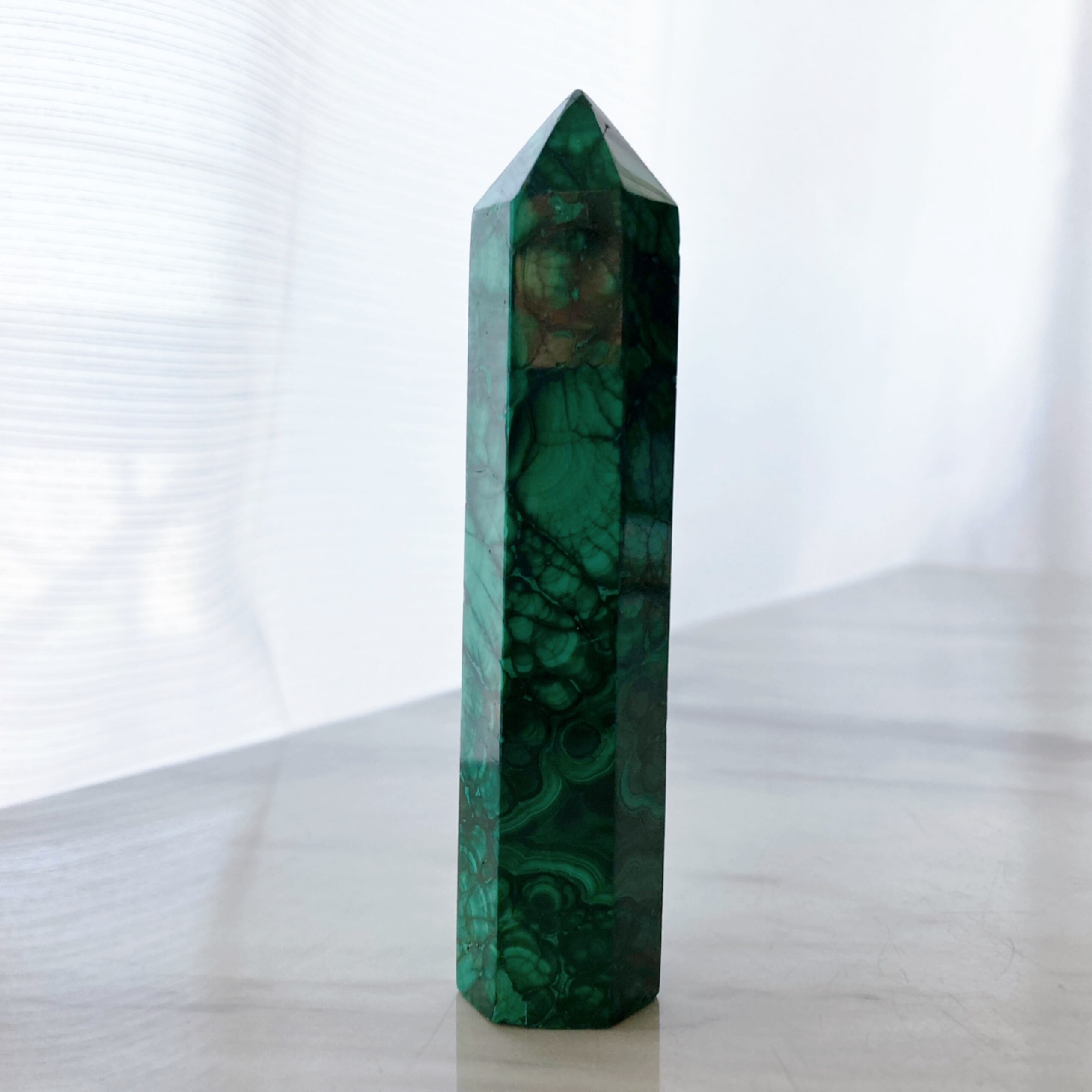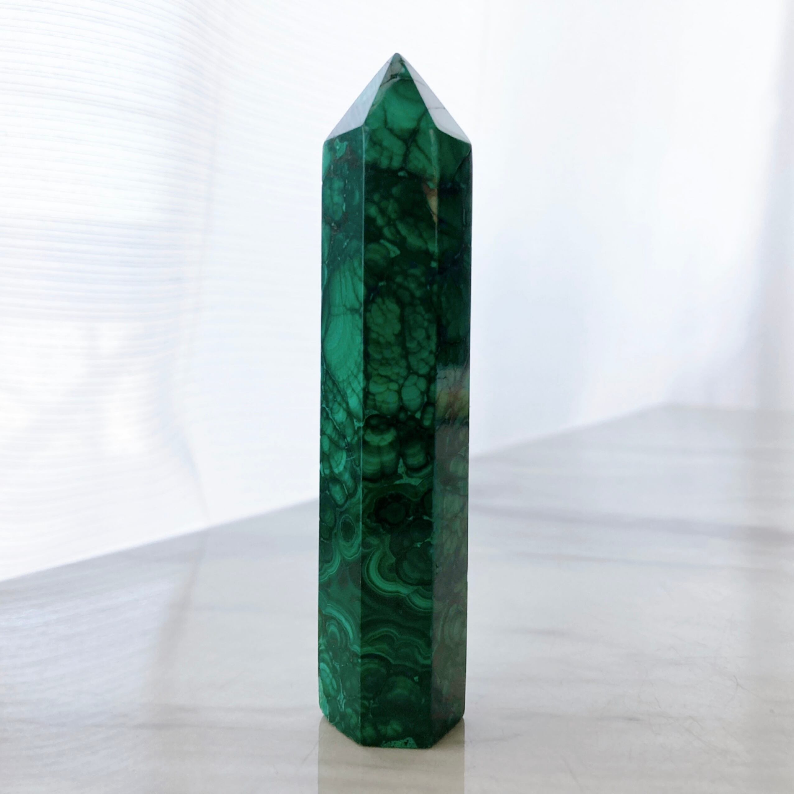 マラカイトのタワーです。濃いグリーンと淡いグリーンの色合いがステキです。