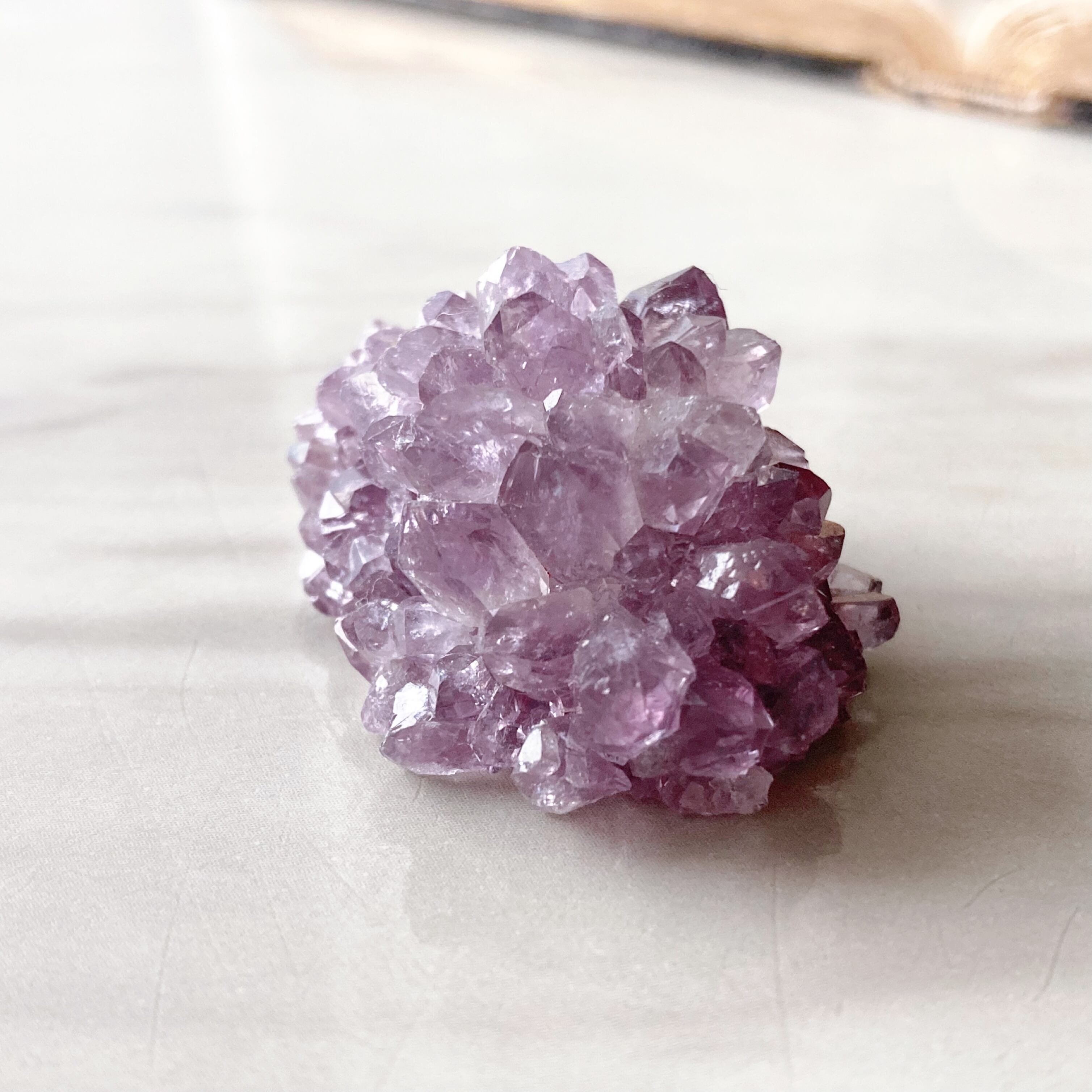 アメジストは大切な人との絆を深め、不安を解消し、心に癒しをもたらします。スピリチュアルな力を呼び覚まし、希望や冷静さをもたらします。不安には癒しを、傷ついた心には安らぎを。感情をコントロールし、直感力を高めます。愛の守護石とも呼ばれています。