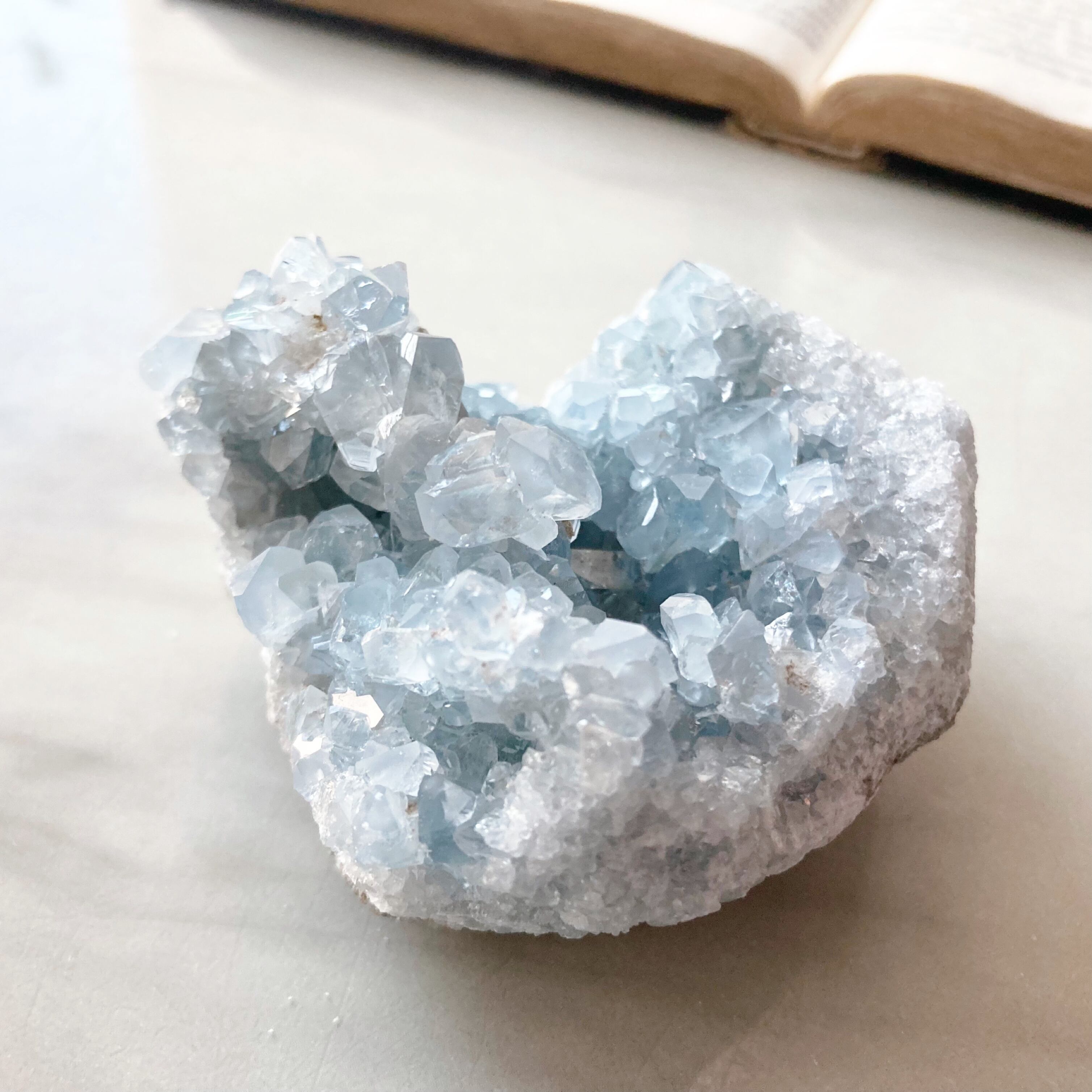 天青石という、青く晴れた空を連想させる和名を持つ、美しいスカイブルーのセレスタイト。ラテン語で「天国のような」という意味も持っています。