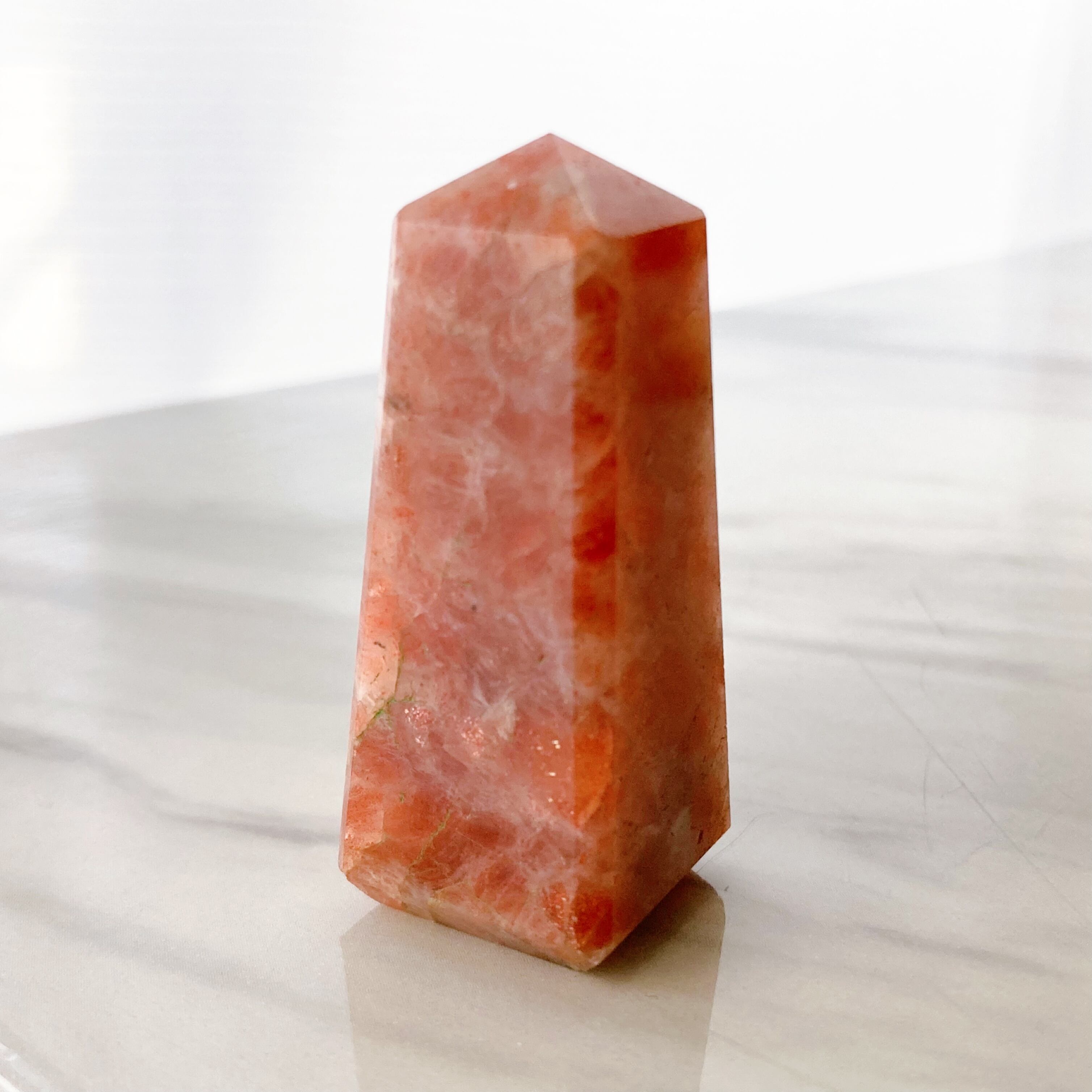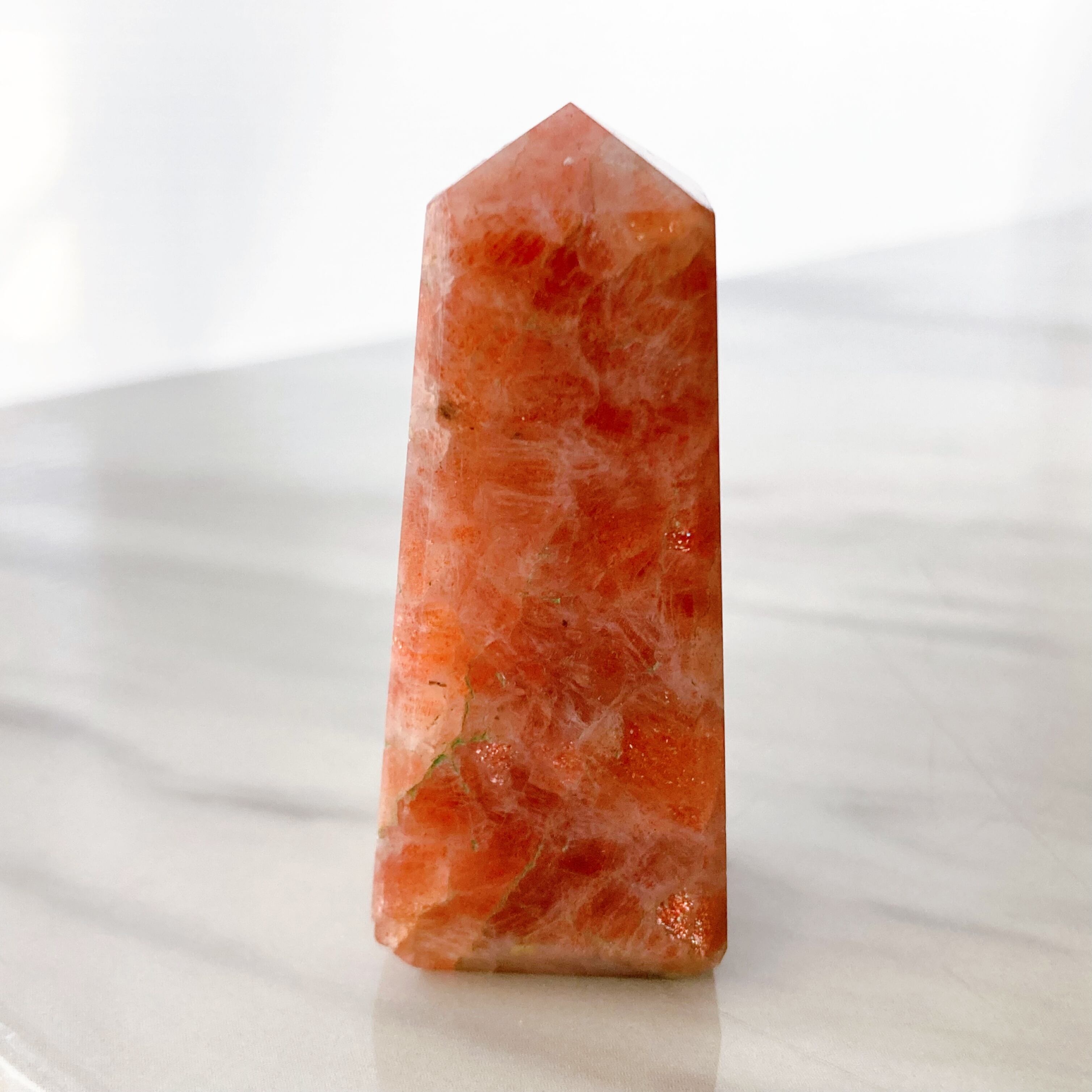 虹色にキラキラ輝くアベンチュレッセンスがキレイなサンストーンのタワーです。