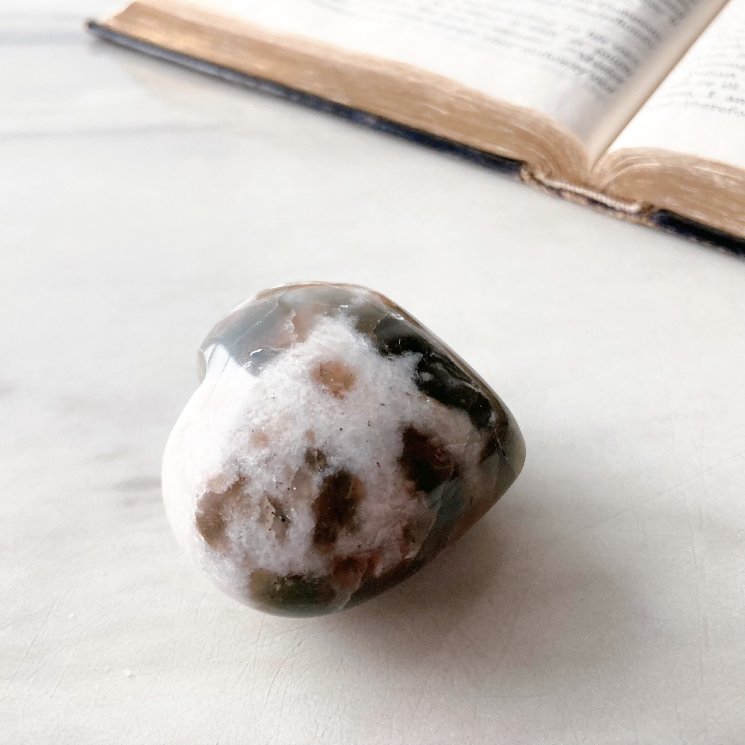 ポラリティムーンストーンのハート型パームストーンです。チョコとバニラのアイスクリームのような可愛いカラーです。