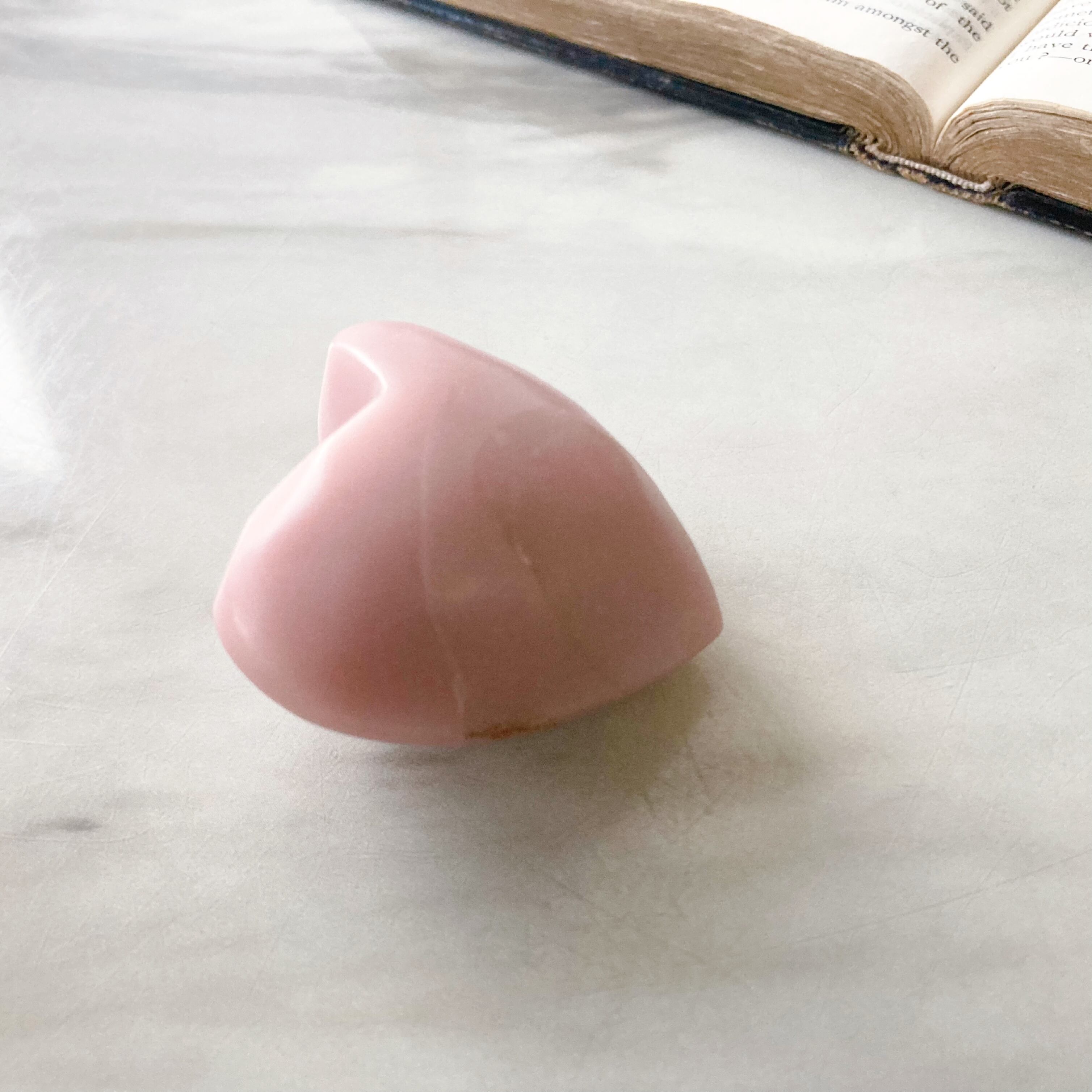 ソープストーンは、石鹸のようなマットな質感を持つピンク色の天然石。 チョークや化粧品、医薬品にも用いられている身近な鉱物です。