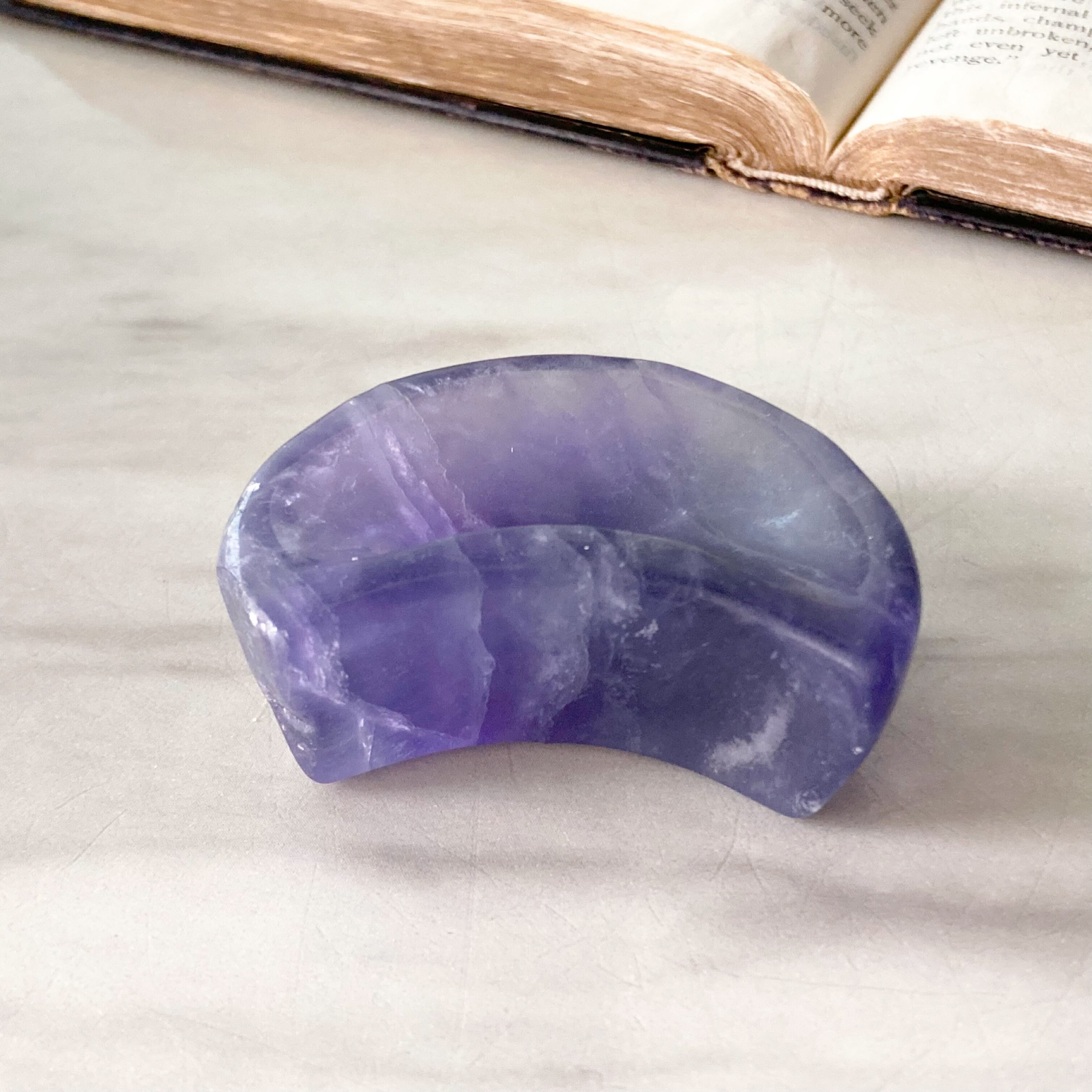 フローライトのムーン型トレイです。リングやピアスを置けるくらいの小さめサイズです。