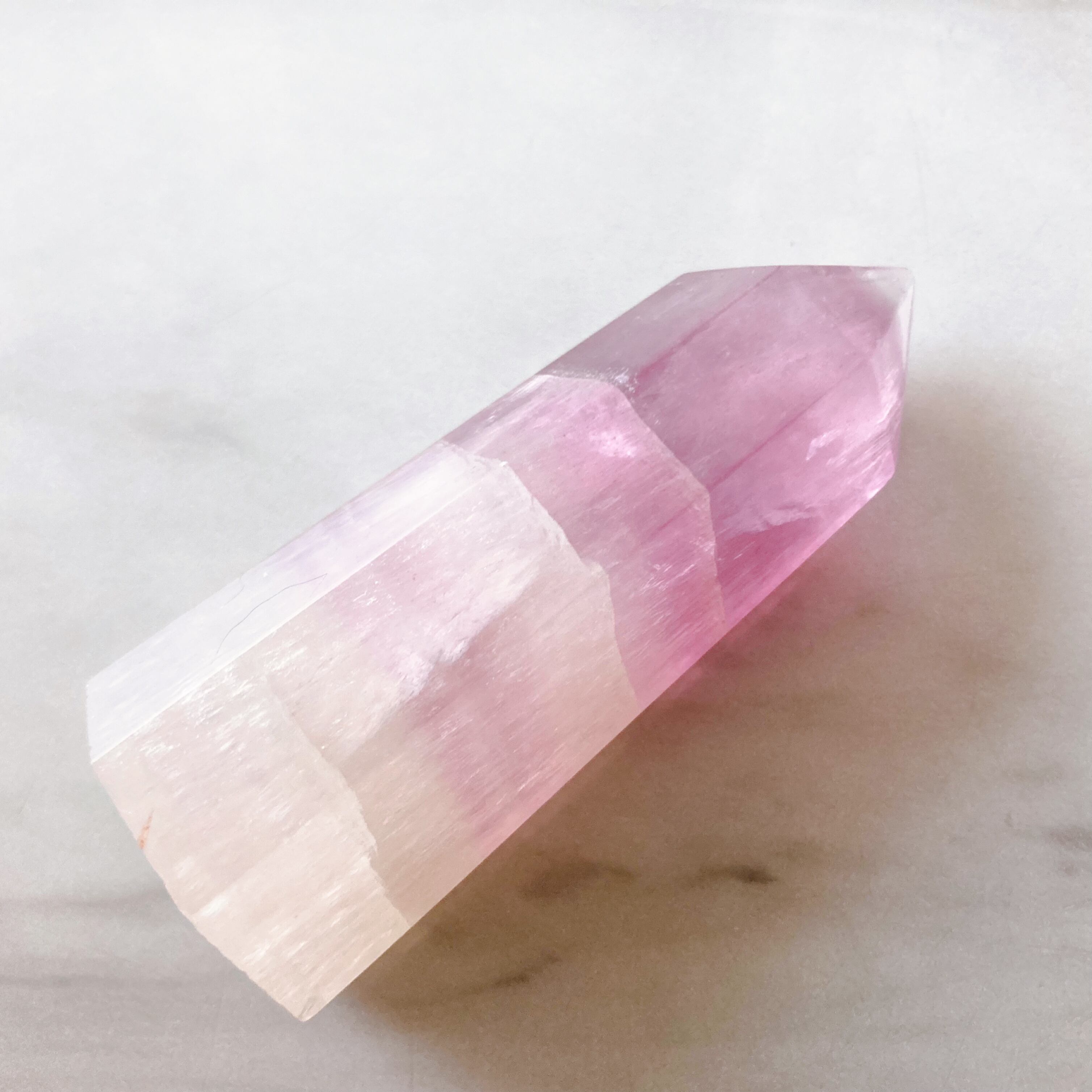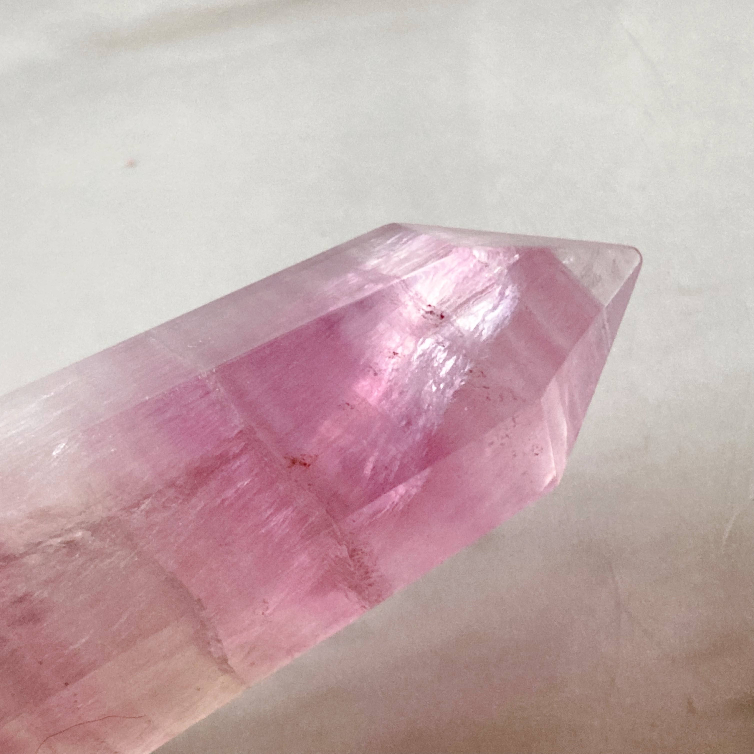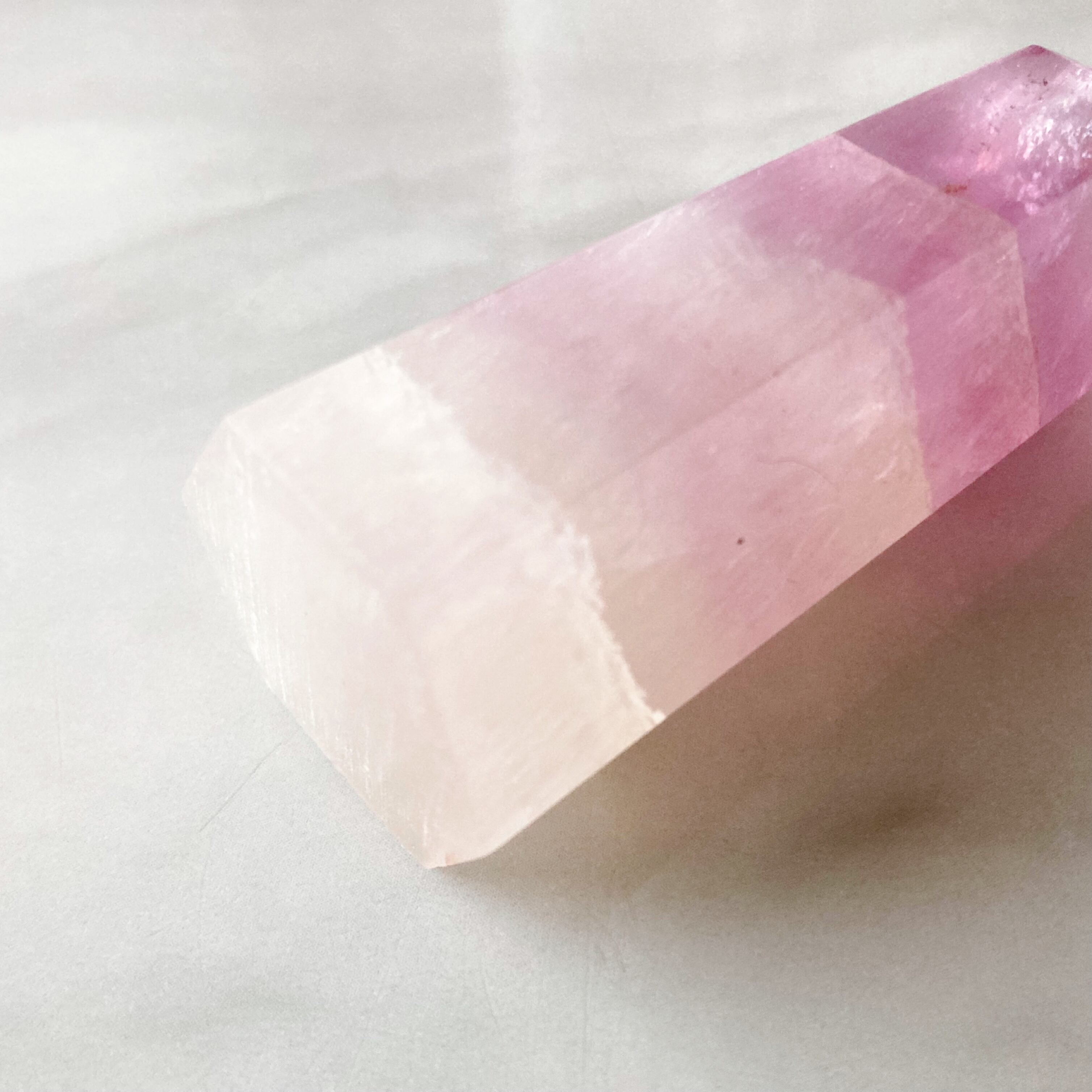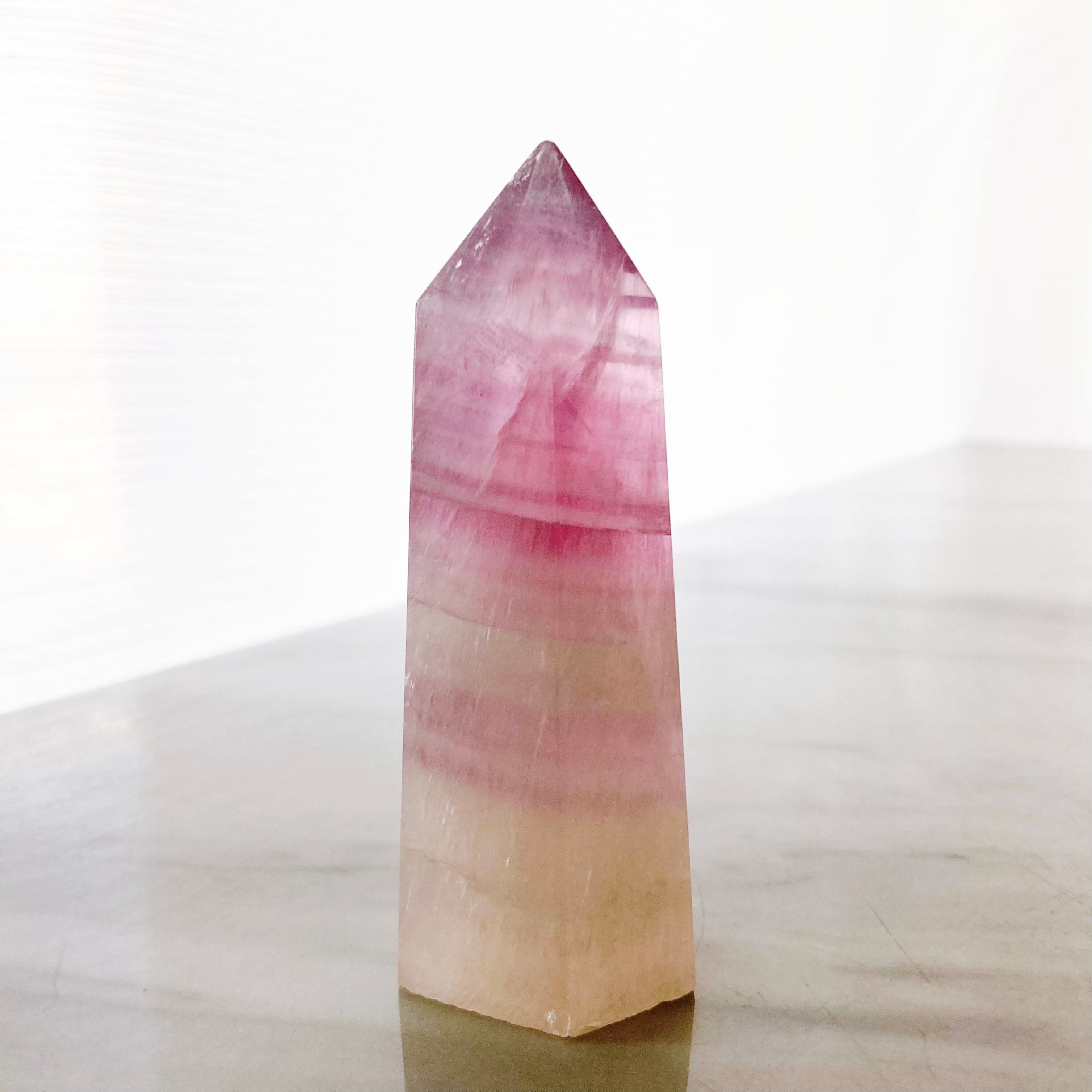 ピンクパープルと淡いイエローとのバイカラーが美しいフローライトタワーです。