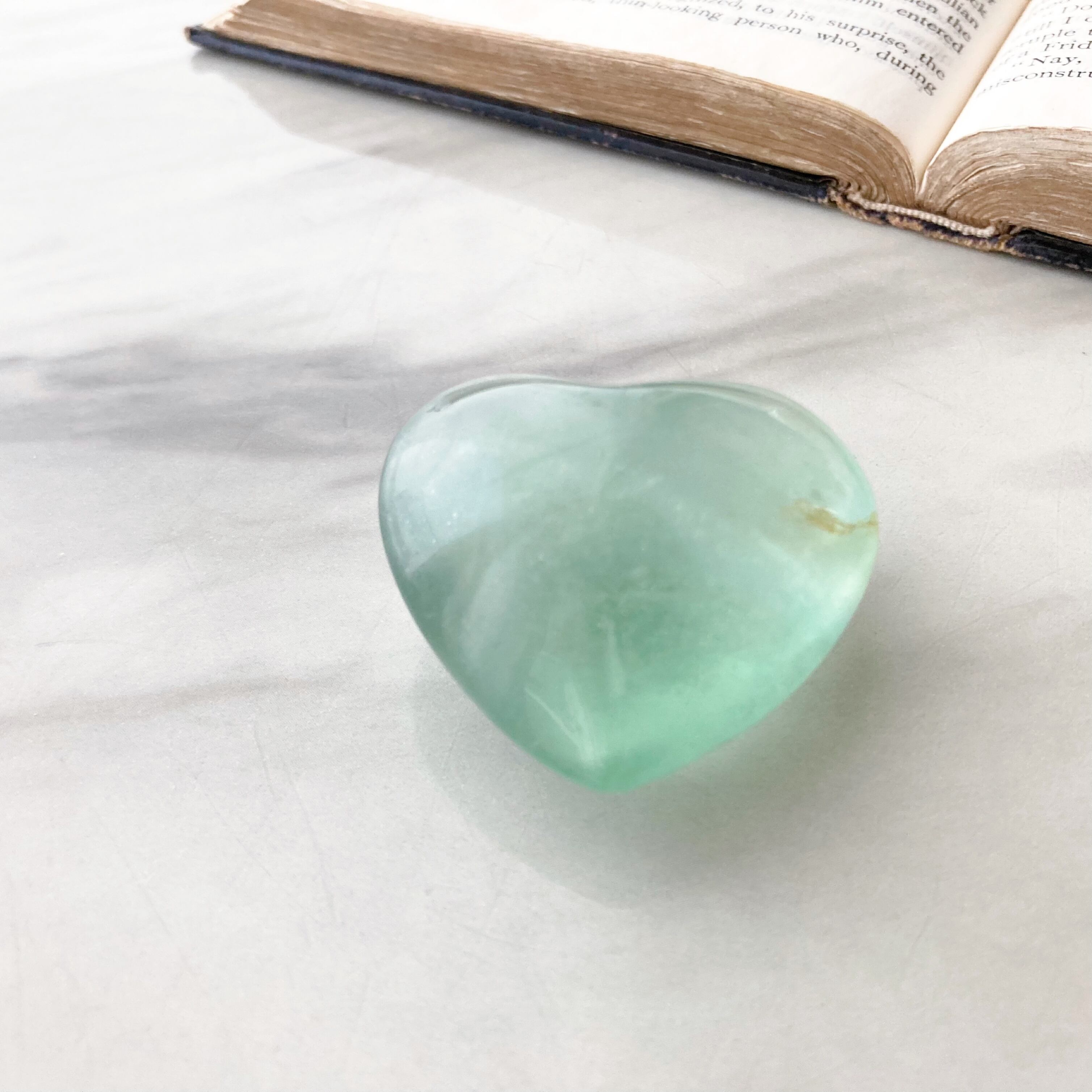 爽やかなミントグリーンのフローライトです。ぷっくりとしたハートの形とレインボーがキレイです。