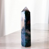 濃いめのグリーン、ホワイト、ブルーの色合いが素敵なモスアゲートタワーです。