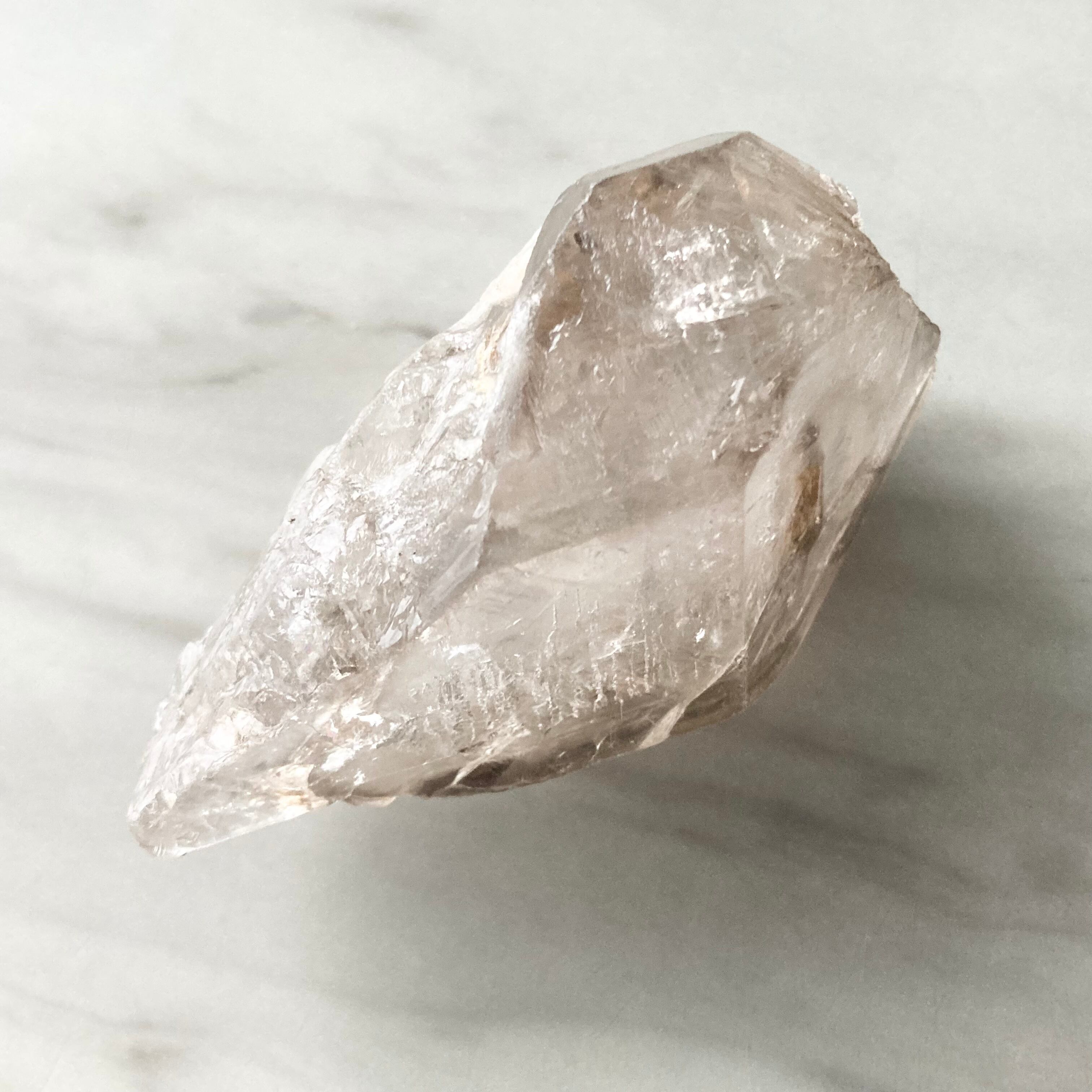 エレスチャルクォーツは、火山活動や環境の色々な影響を受けて、 複雑に成長した特殊な水晶です。長い年月をかけて生成と停止期間を繰り返して結晶を重ねていくことにより、階段状の層が見えます。両方がポイントになっている両錐の形が特徴です。