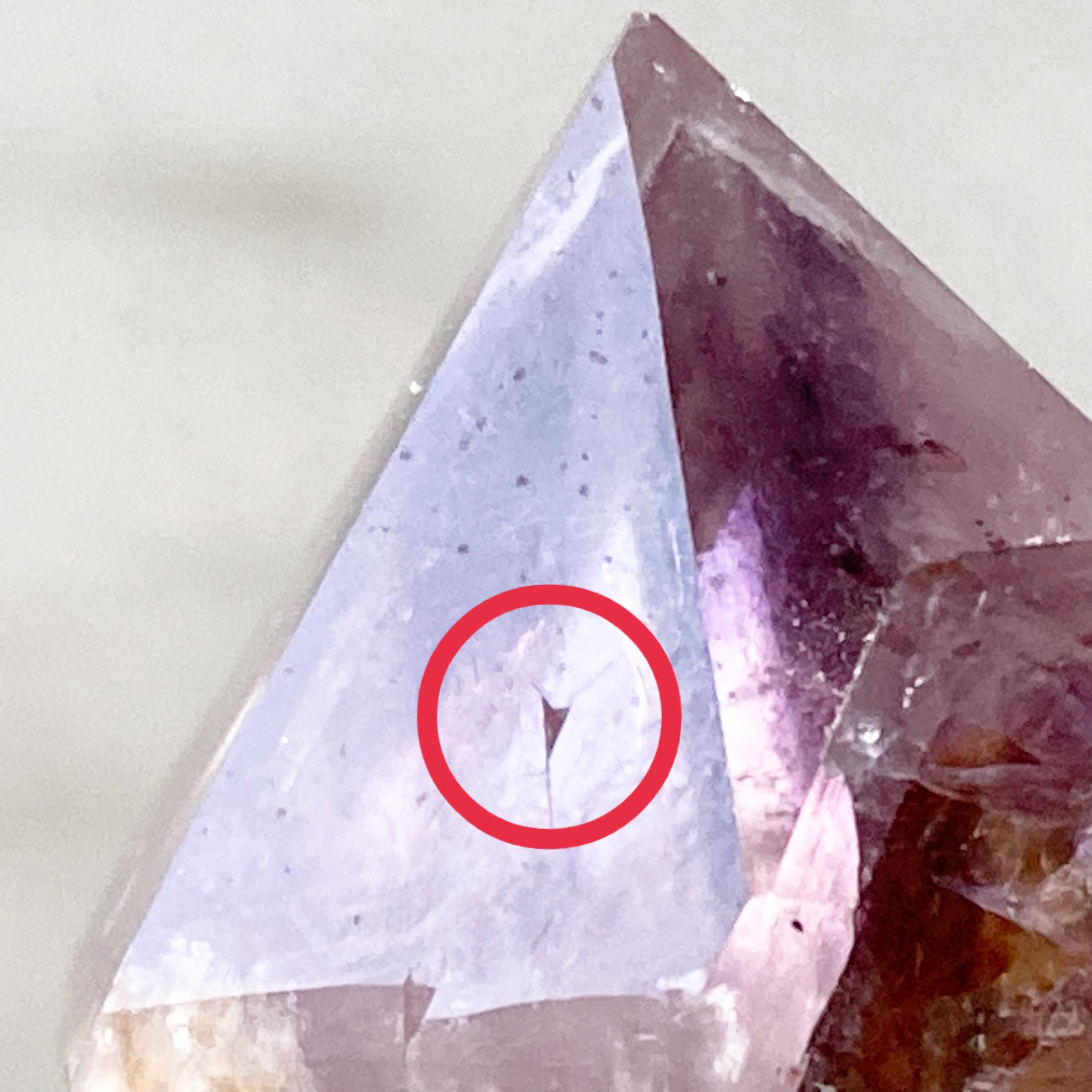 内部にファントムのような三角形の輝きが見られ、とても神秘的です。