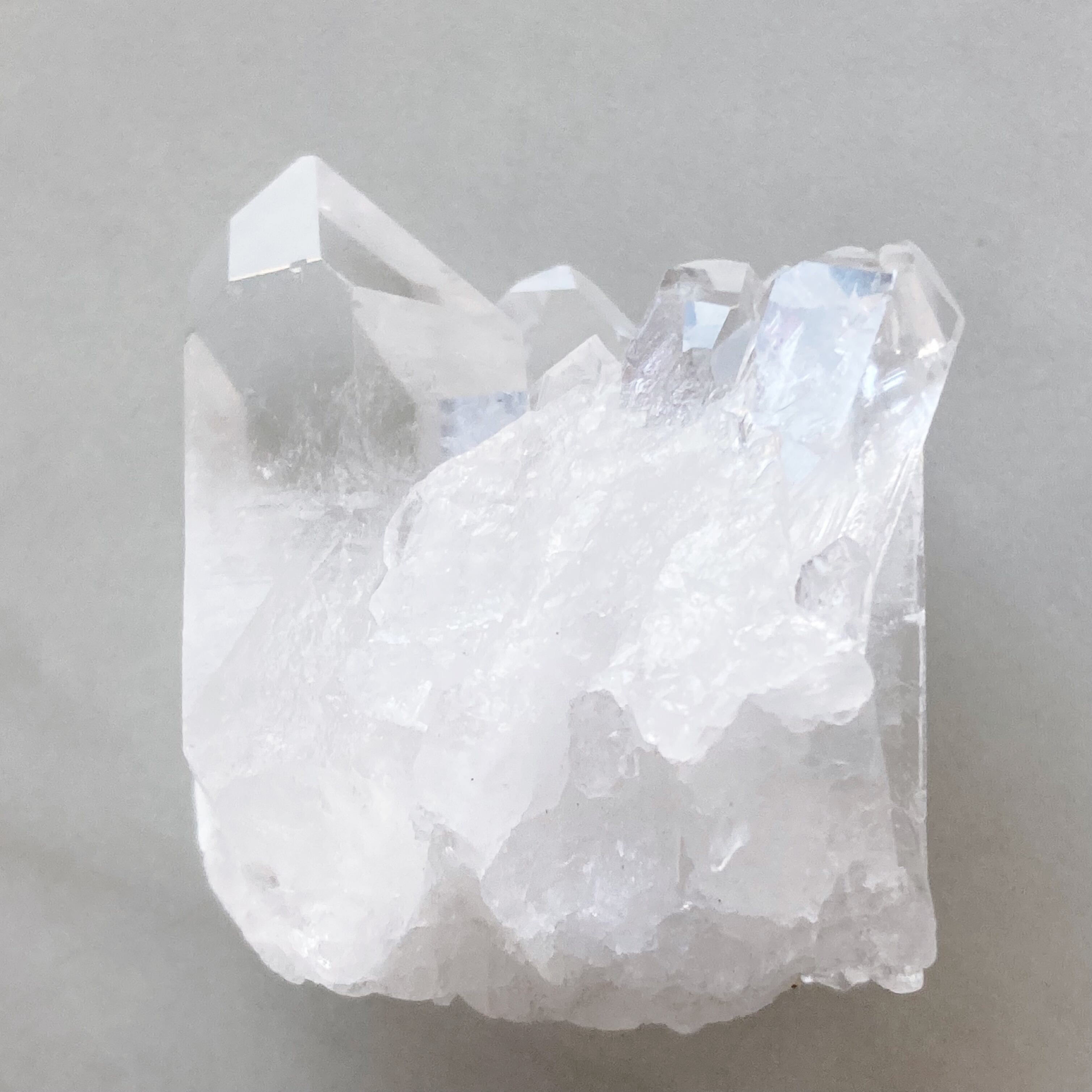 透明感が高くテリ艶が美しい水晶のミニクラスター。タイムリンクとキークリスタルが見られるマスタークリスタルです。