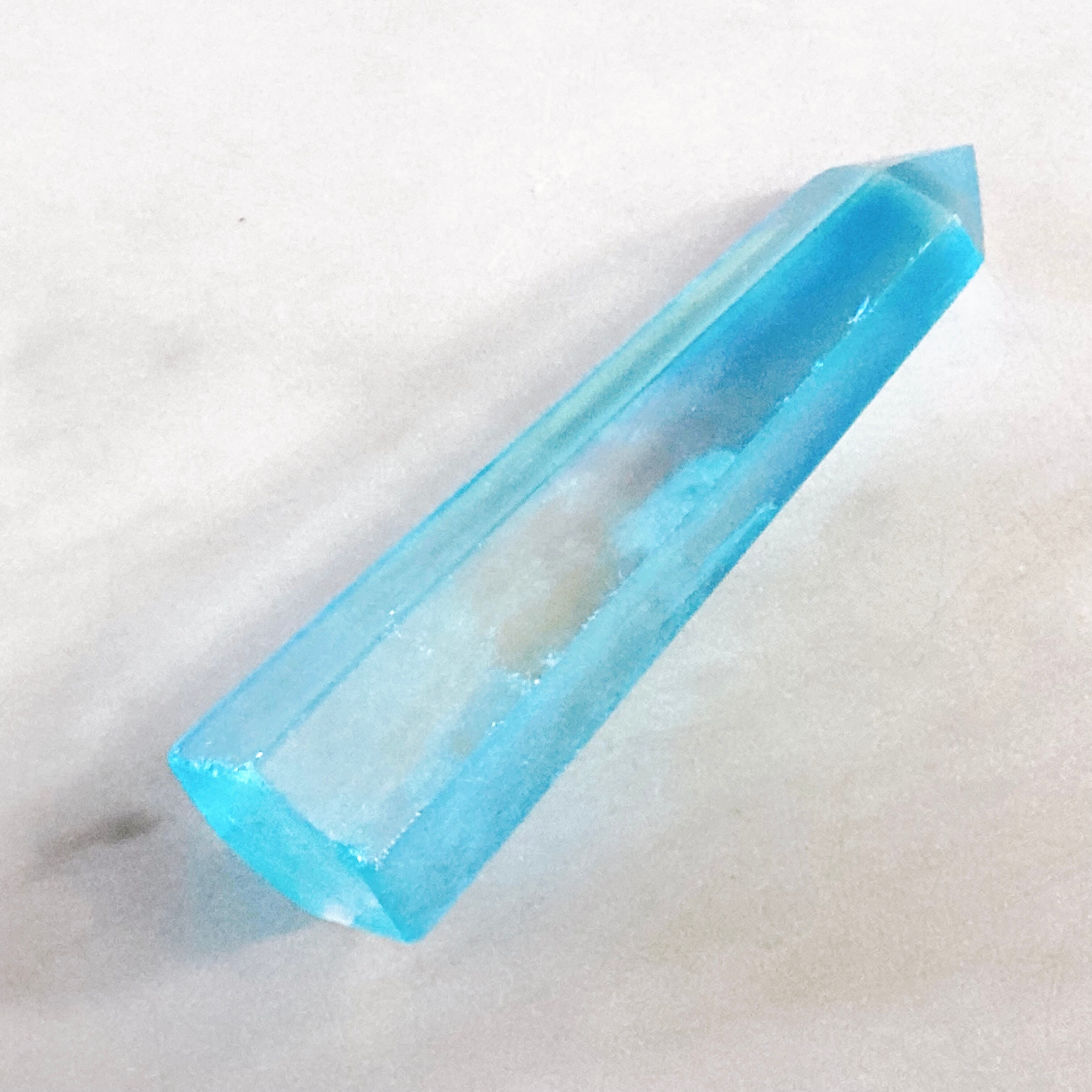 透明感のある水晶ポイントにアクアオーラを施した、スリムでスタイリッシュなタワーです。
