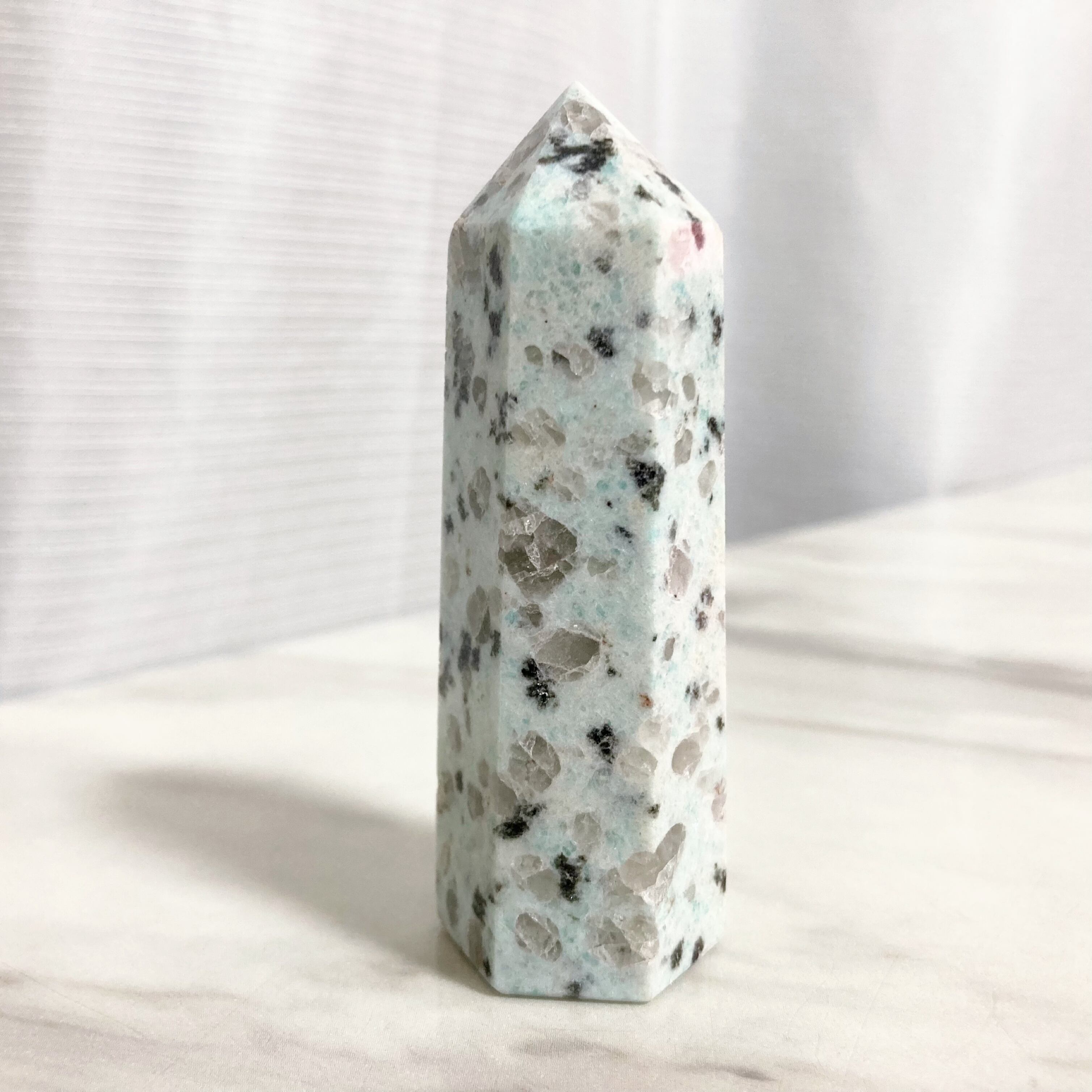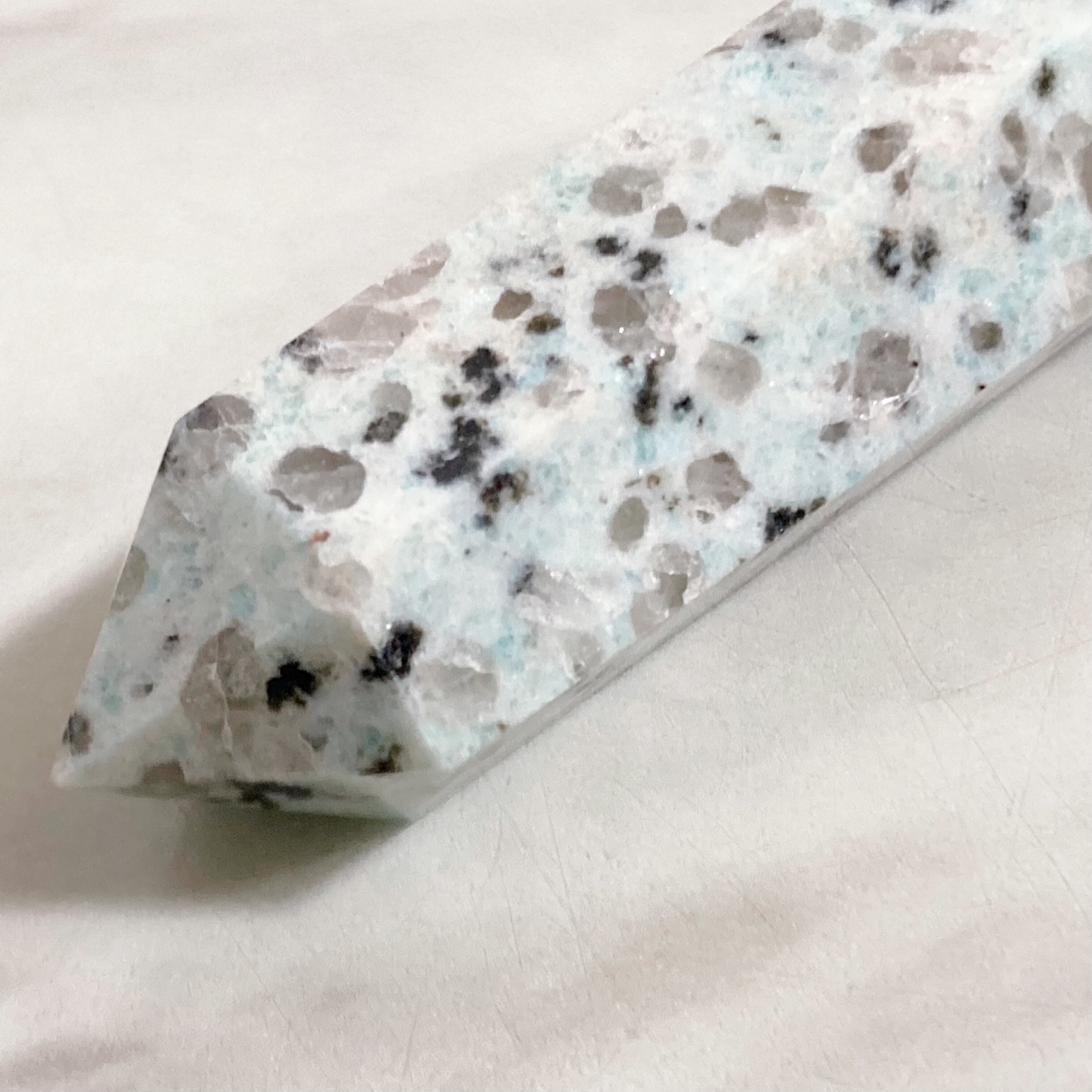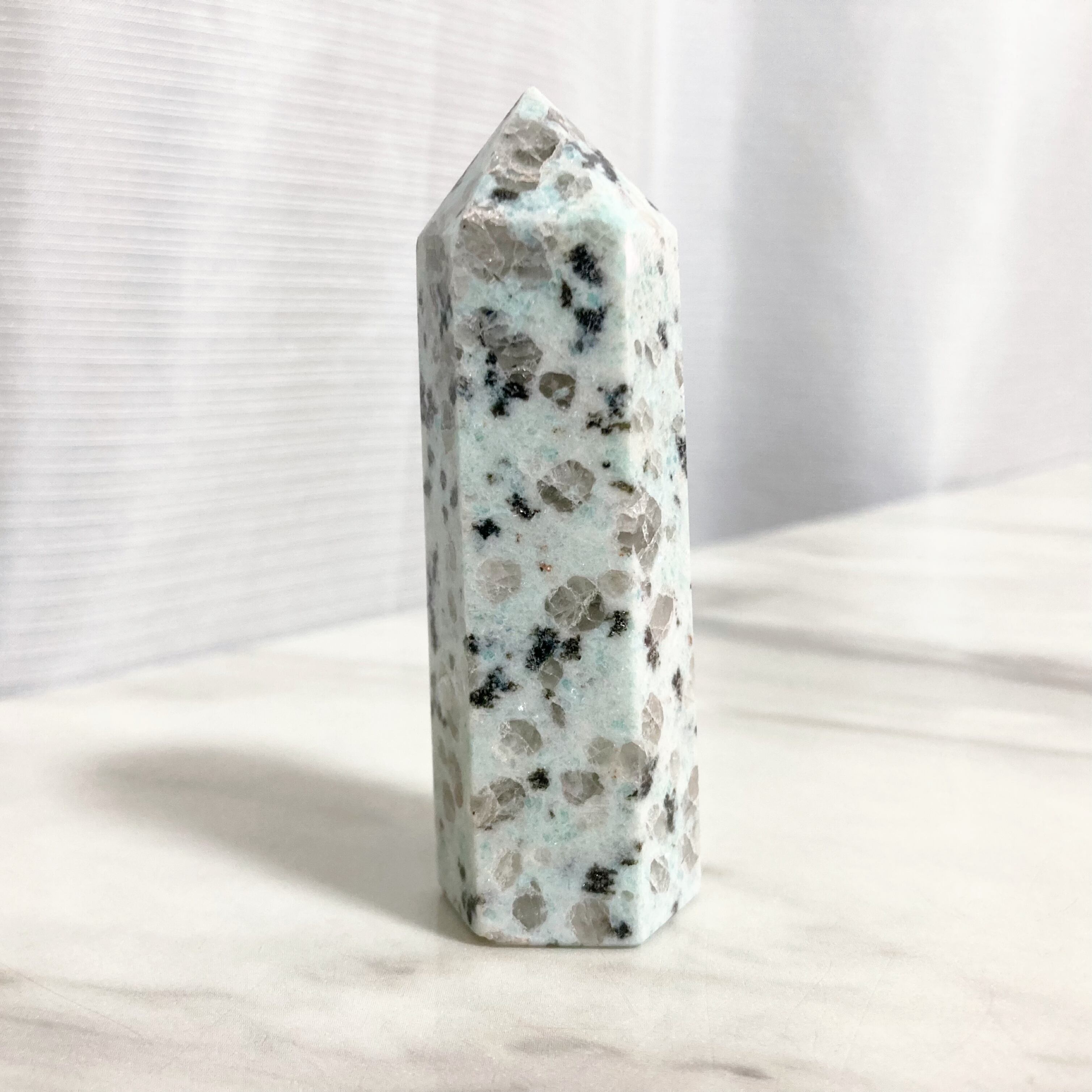 その見た目から、キウイジャスパー、セサミジャスパー、アイスミントグラニットなど、多くのニックネームを持つクリスタルです。