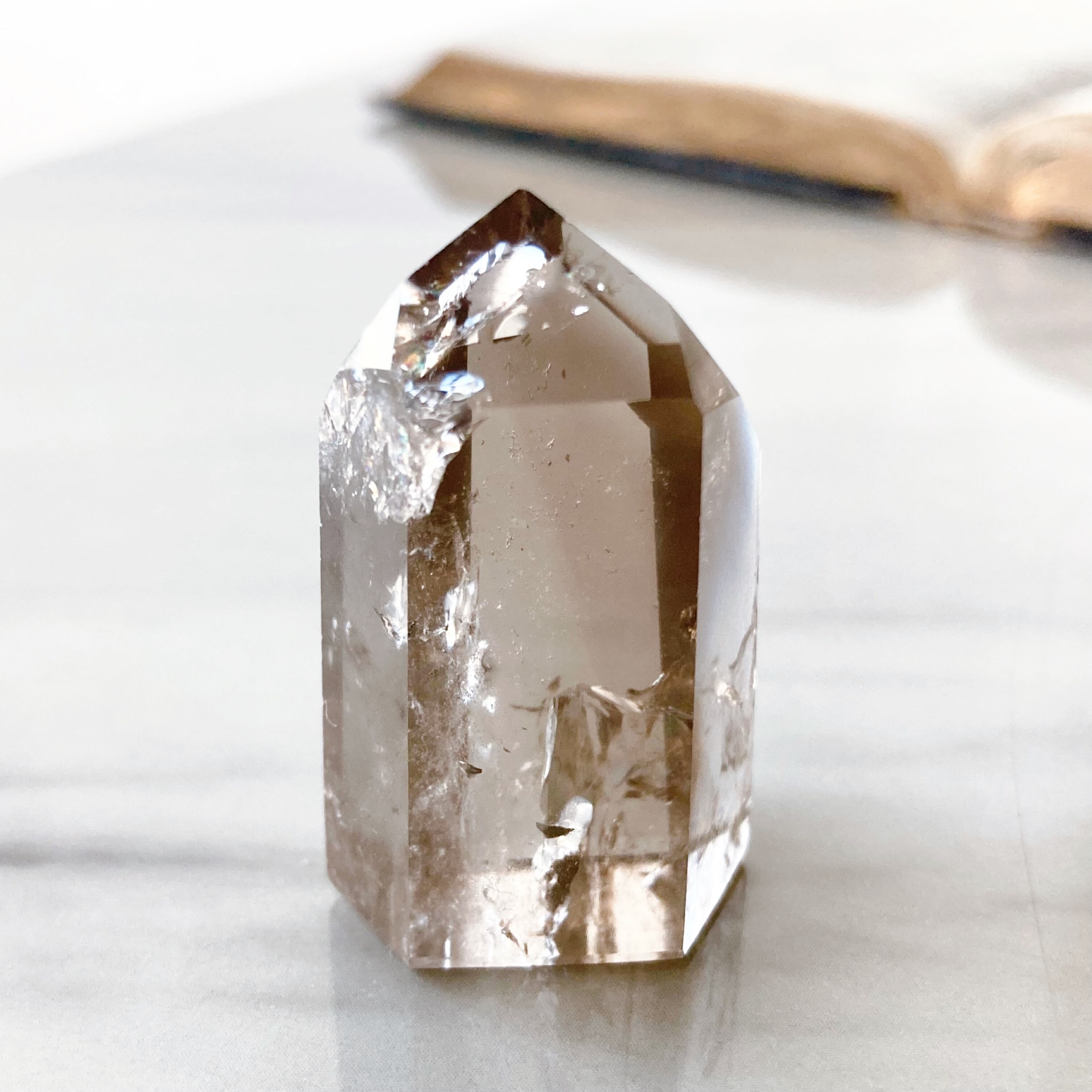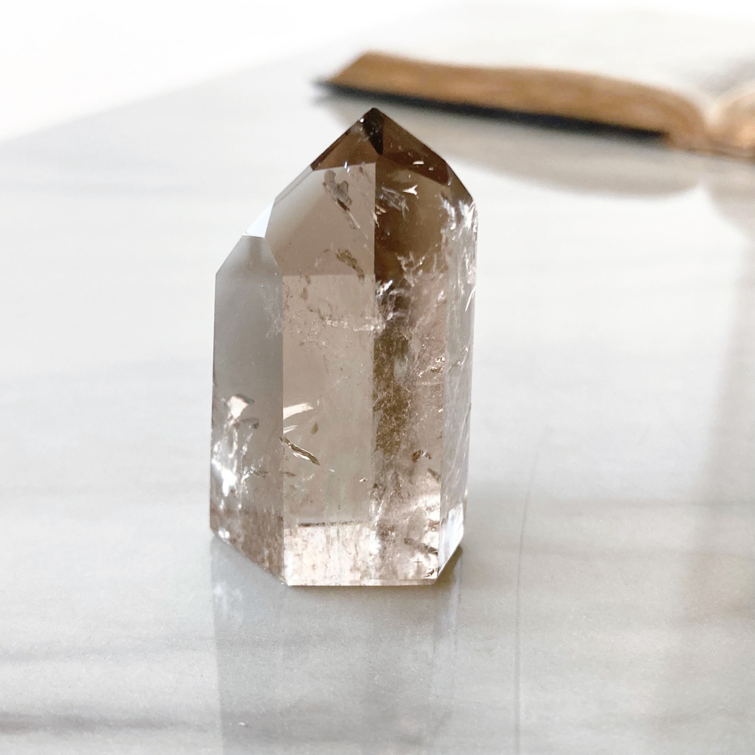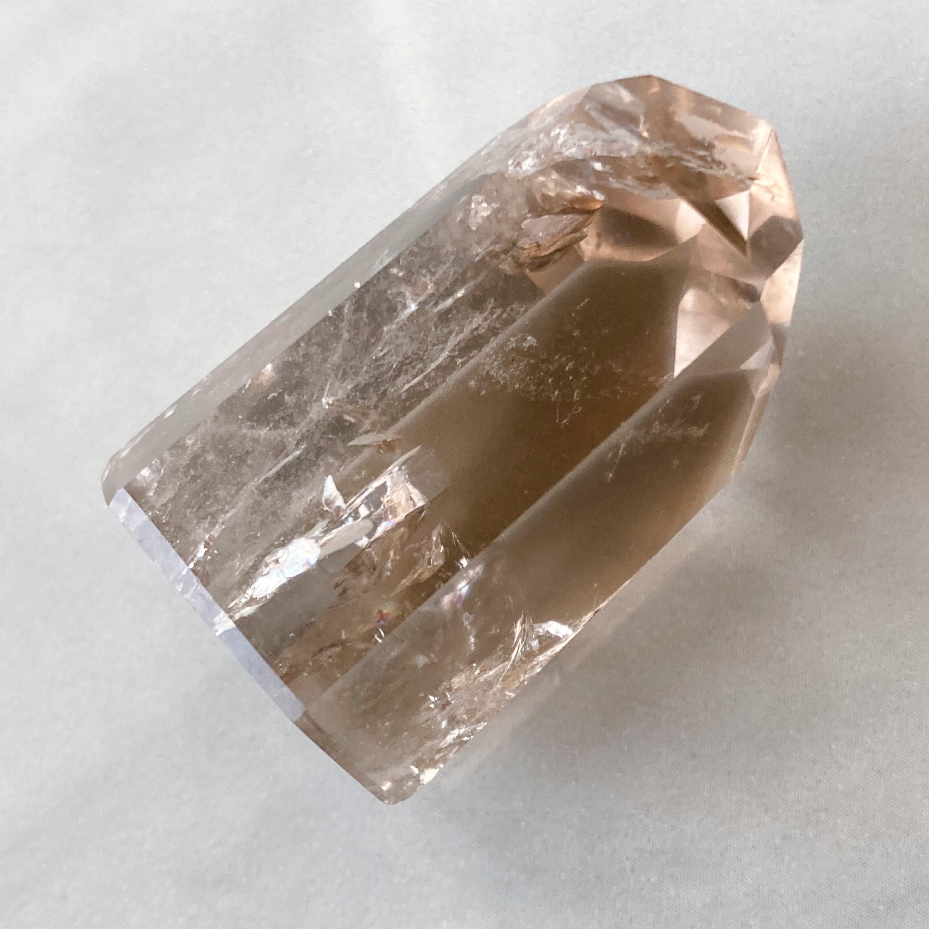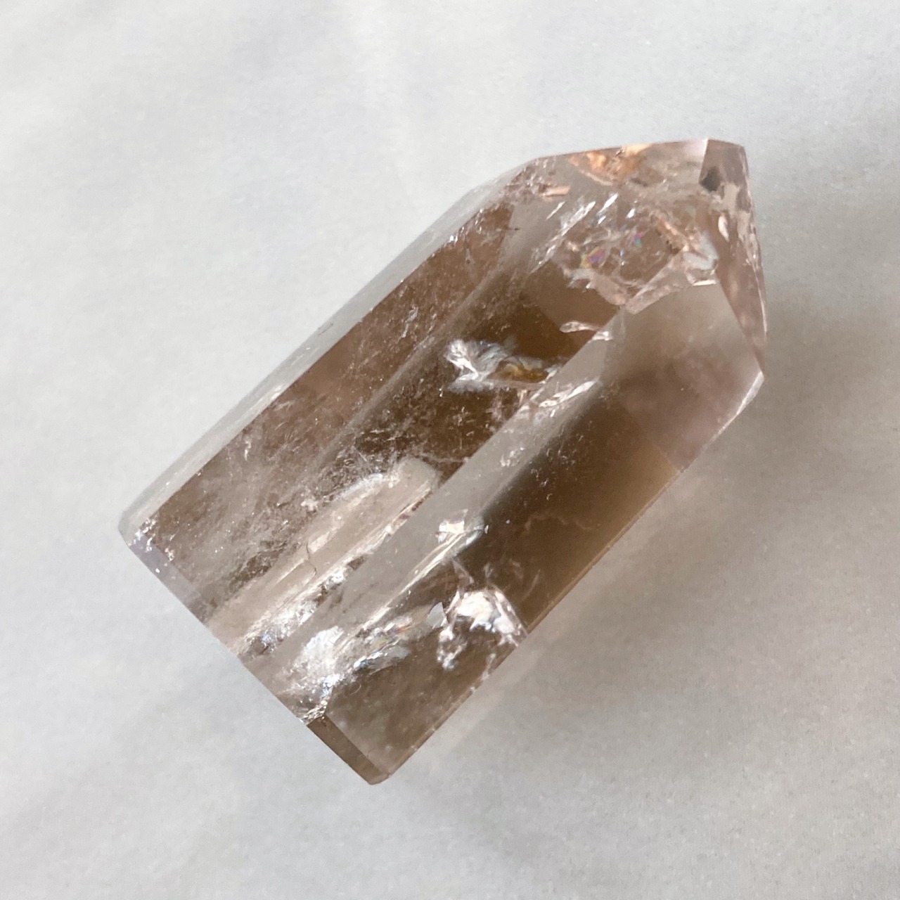 レインボーが美しいスモーキーアイリスクォーツのタワーです。