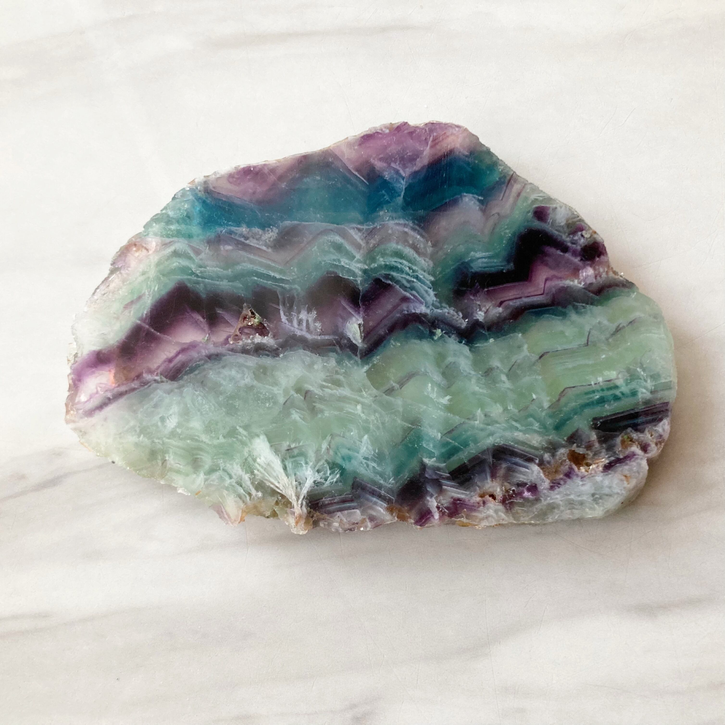 カラフルなカラーのグラデーションが美しい、レインボーフローライトのプレートです。
