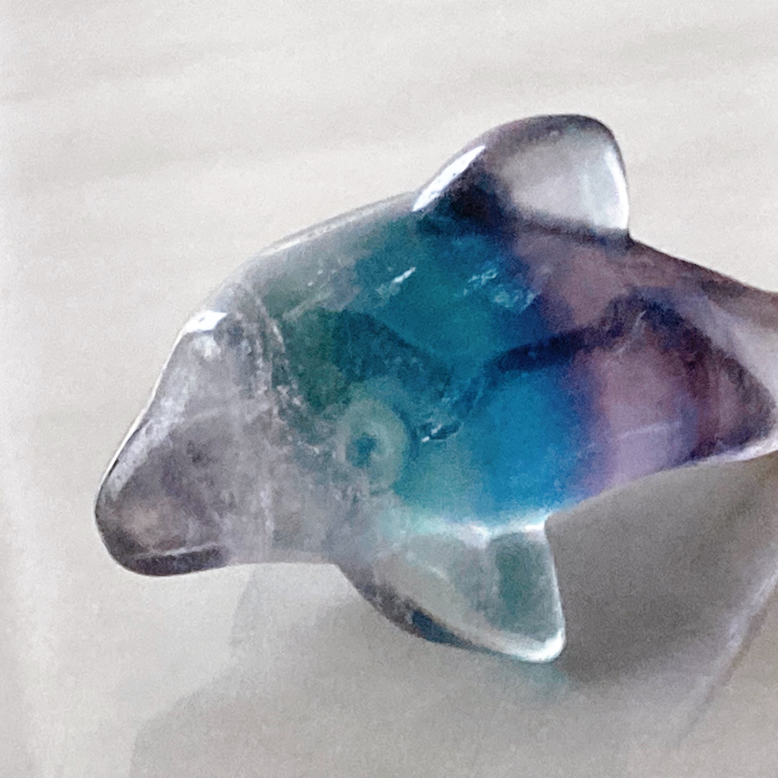 ブルー、グリーン、パープルのグラデーションがキレイな、イルカのレインボーフローライトです。