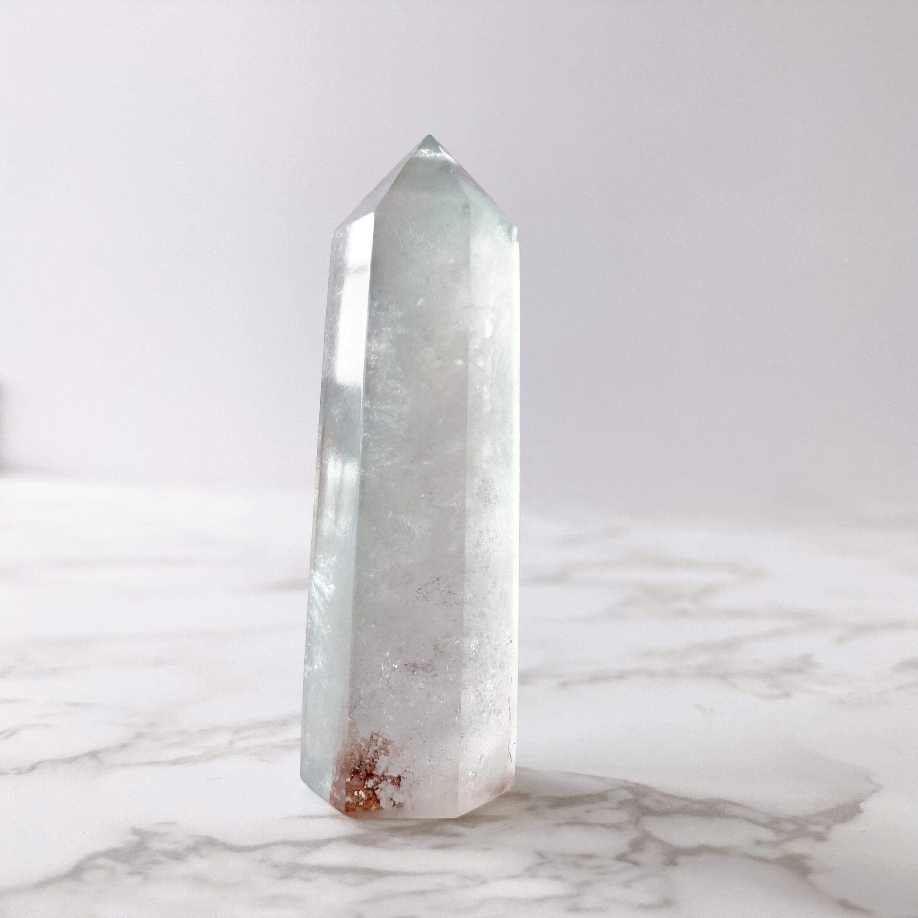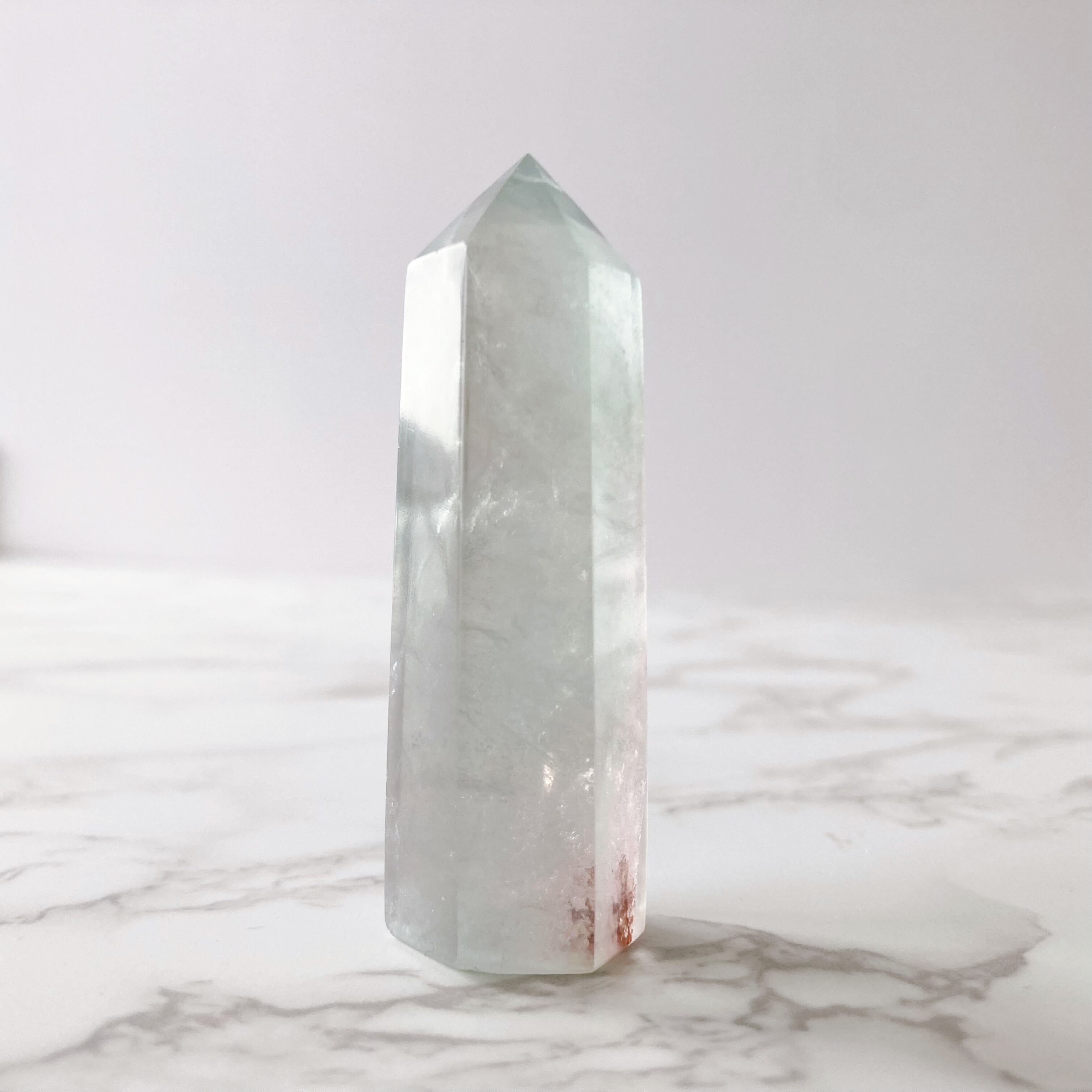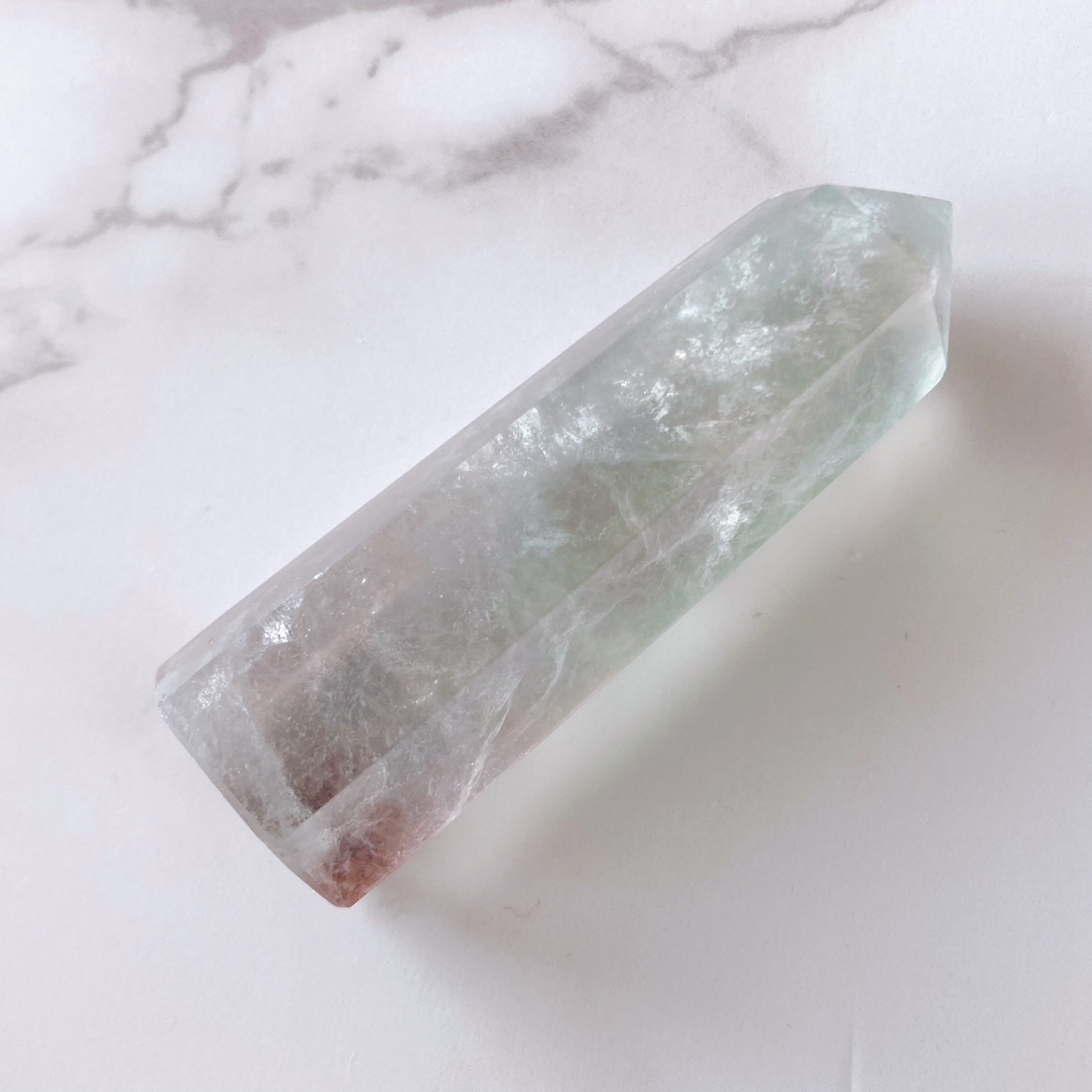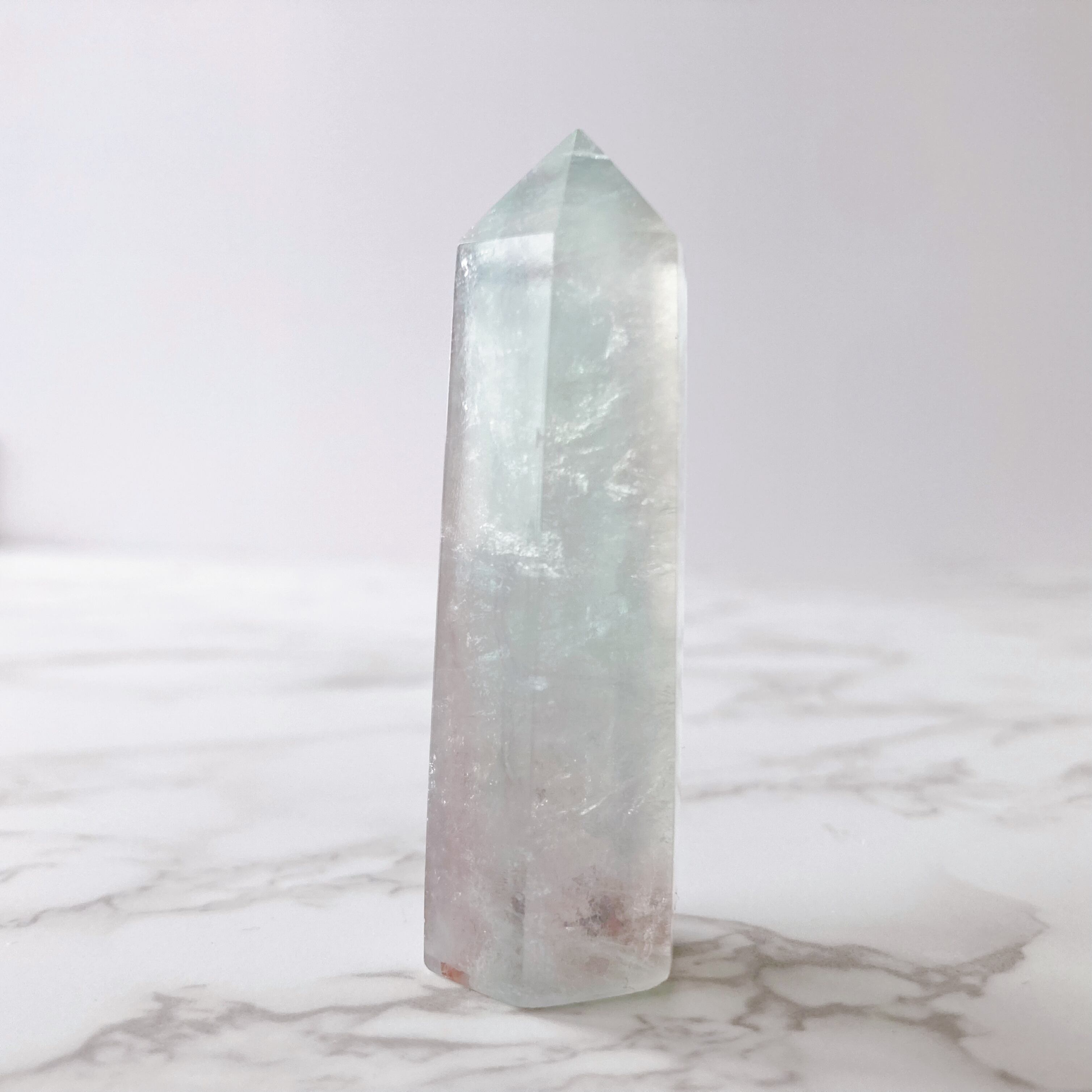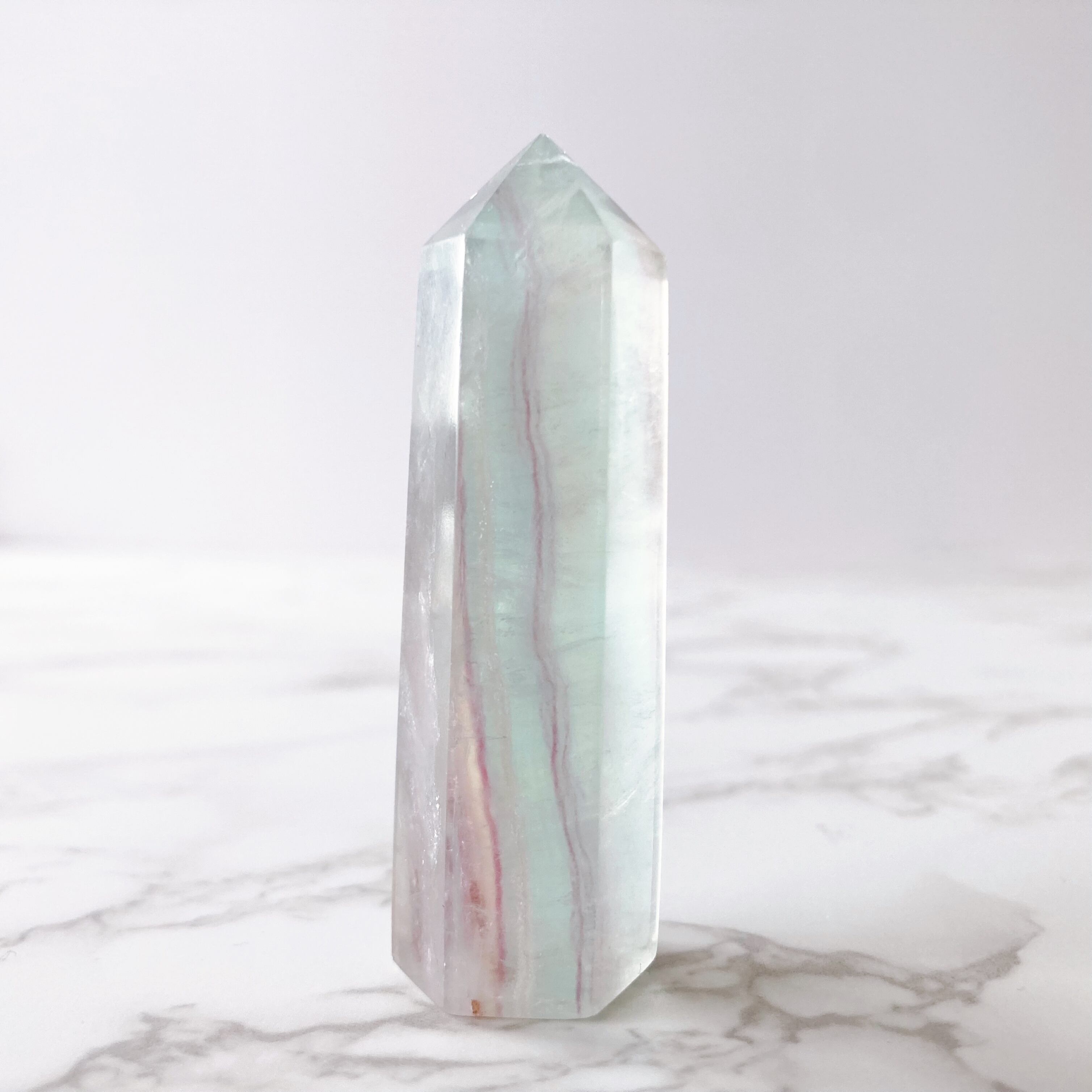 爽やかなミントグリーンに、流れるようなパープルのラインが美しい、フローライトタワーです。