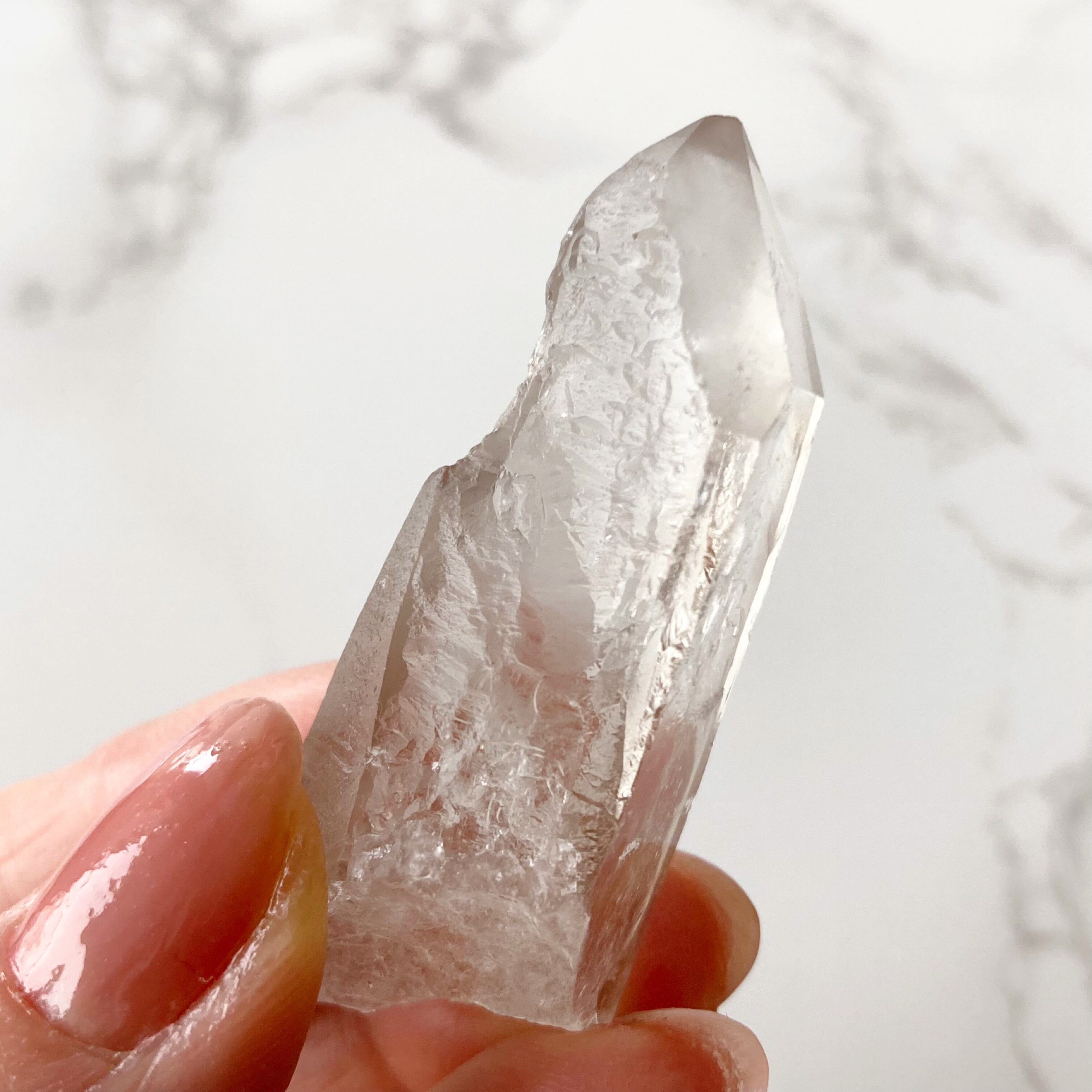 レコードキーパーは、古代レムリア人、アトランティス人の叡智を記録した水晶といわれ、三角形はその入口だとされます。高度な知恵や過去・現在・未来の情報につながるので瞑想に最適なクリスタルだと言われています。