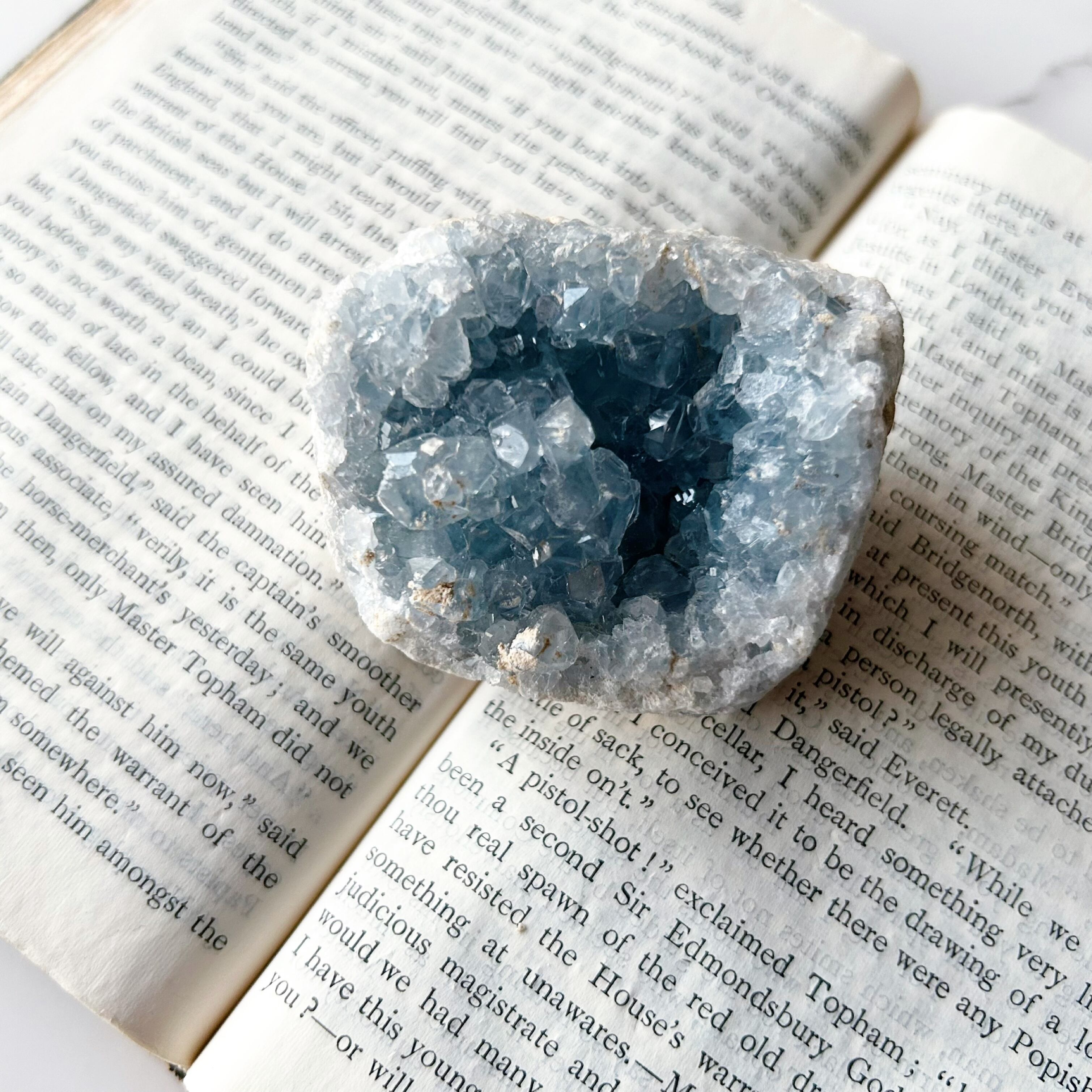 天青石という、青く晴れた空を連想させる和名を持つ、美しいスカイブルーのセレスタイト。ラテン語で「天国のような」という意味も持っています。