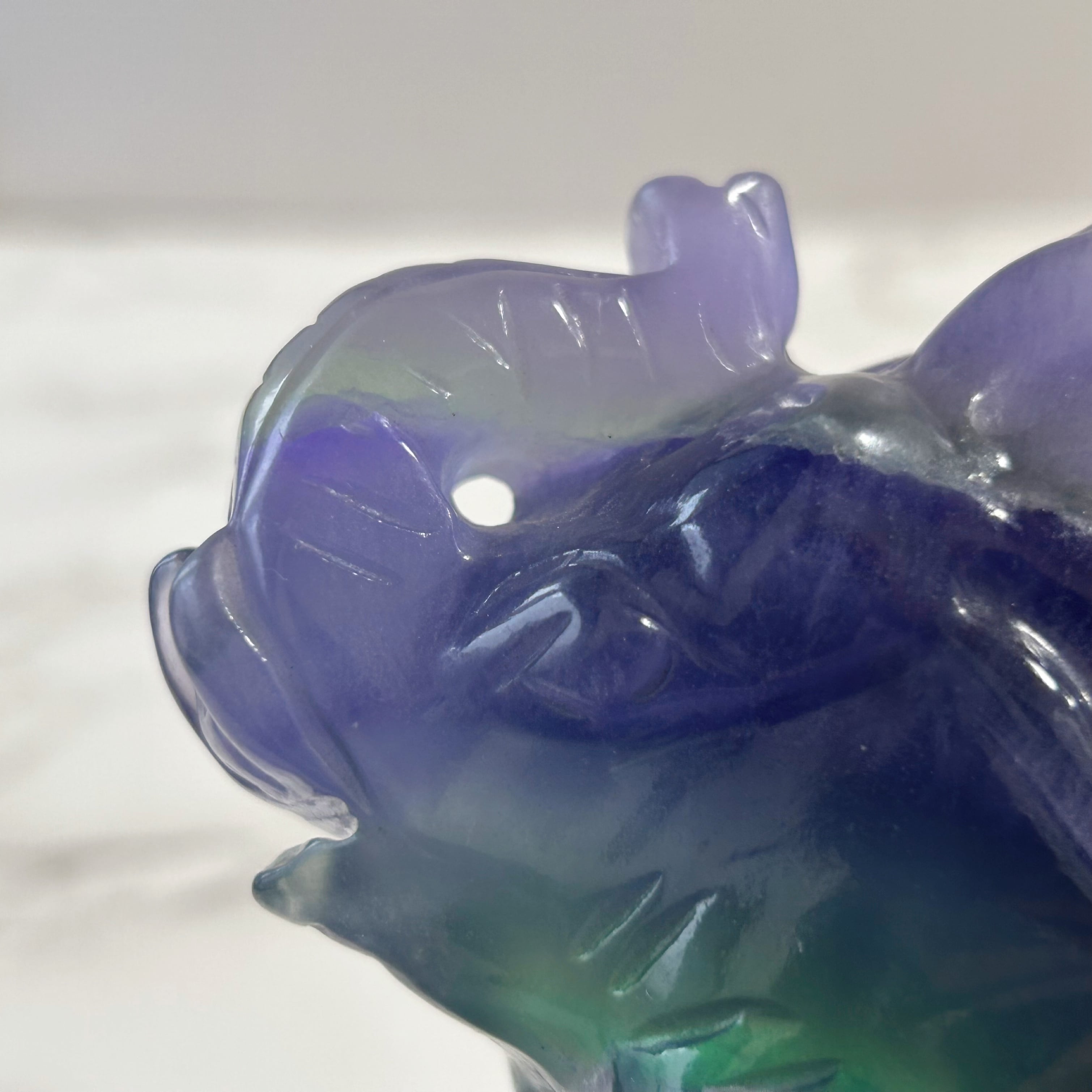 フローライトのゾウさんです。濃淡のパープルとグリーンの色合いがキレイです。