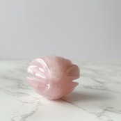 シェルの形のローズクォーツです。ピアスやリングなど小さめのアクセサリーや天然石を置くと、とても可愛いです。