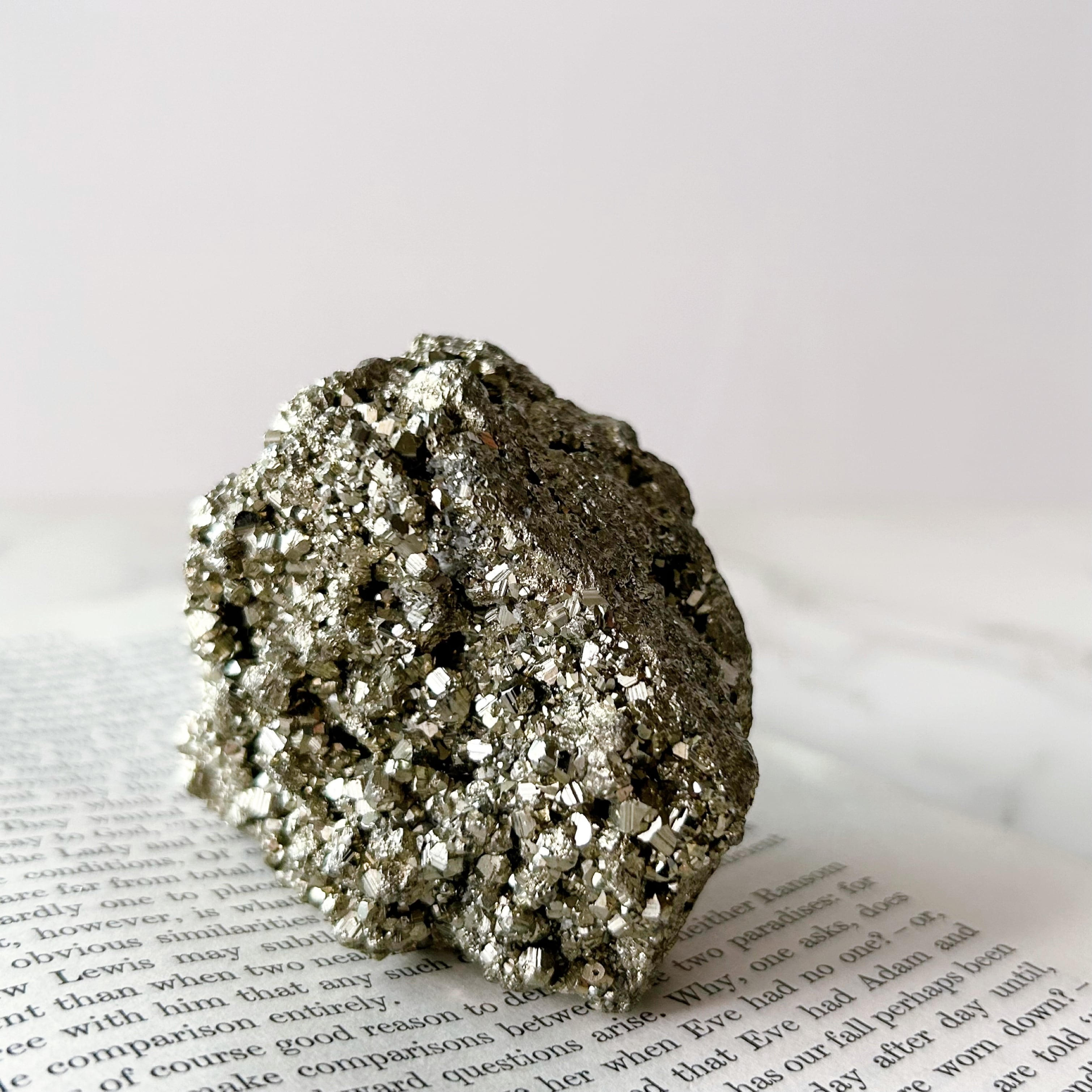 パイライトは、火山活動によって生成されたことから、大地のエネルギーを吸収し、上昇のエネルギーを持つパワフルな石です。持ち主に安定したパワーを与え、意思を強くし、行動力を高めるパワーがあります。チャンスを運び、ポジティブな方向に物事を進めます。