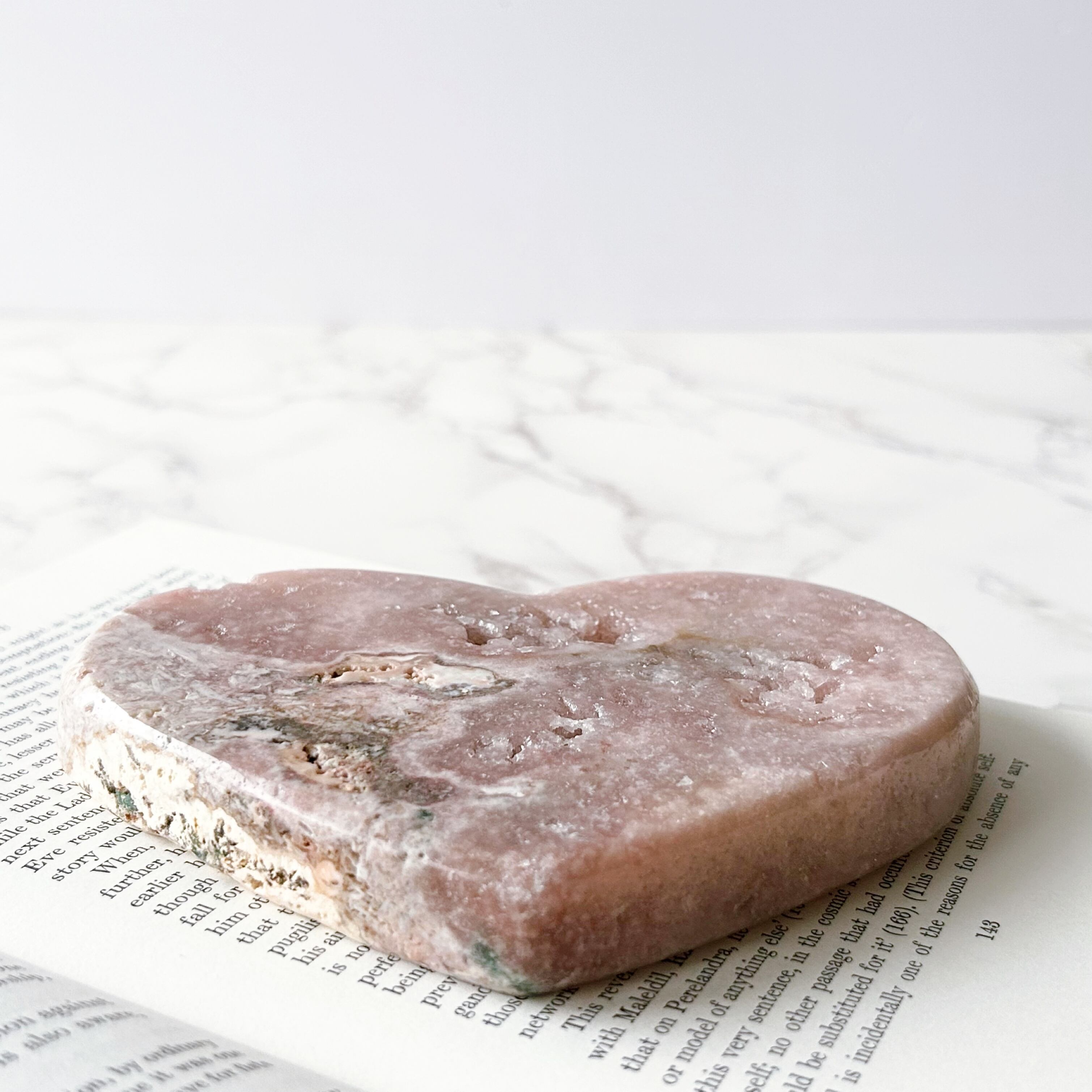 スモーキーなピンクが甘すぎず、大人っぽい印象のハートプレート。ドゥルージーがキラキラ輝き、とてもキレイです。天然石やアクセサリーのディスプレイなどにもお使いいただけます。