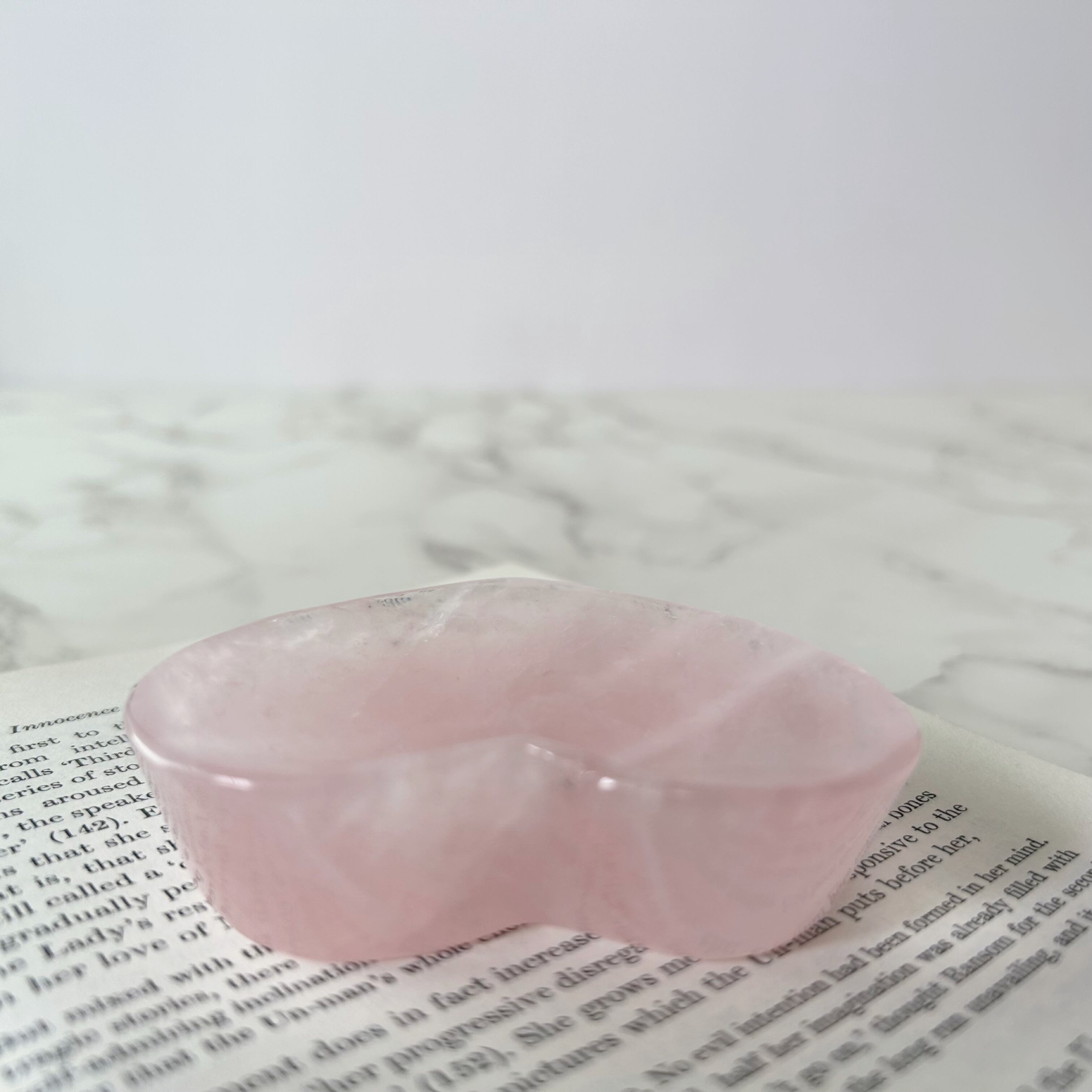ローズクォーツのハート型トレイです。アクセサリーや天然石の浄化など、使い方は自由自在です。