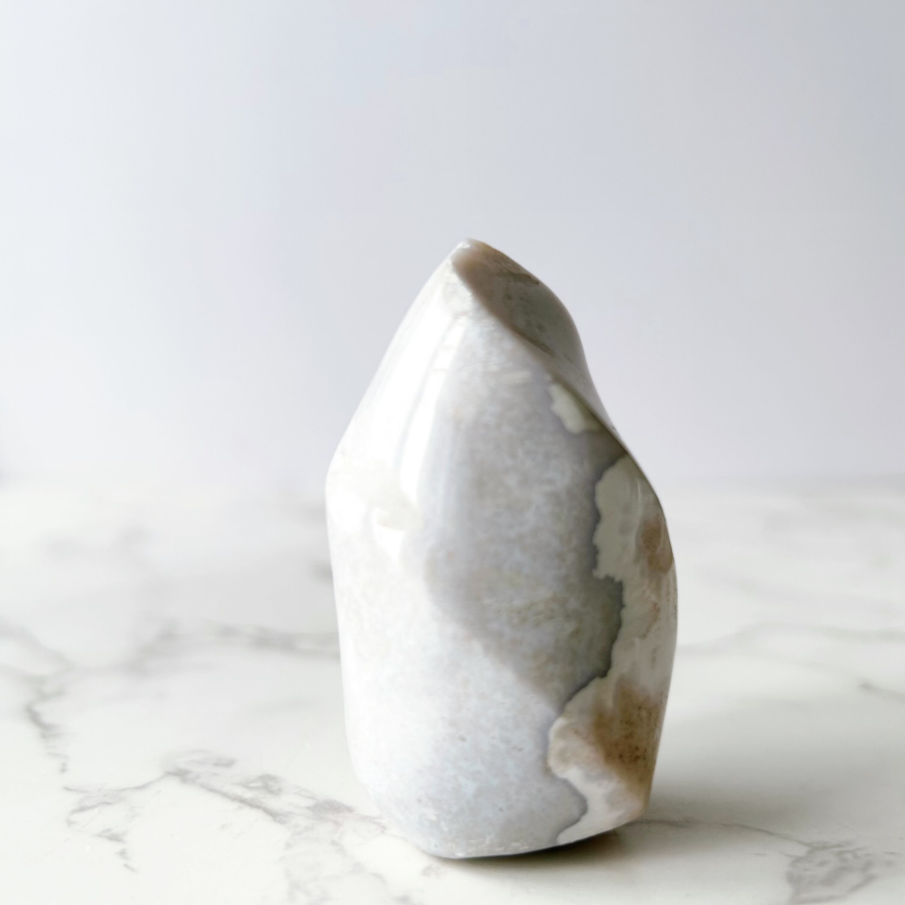ピンクアメジストのフレイム(炎)シェイプです。ライトグレーにほんのりピンクが混ざったようなカラー。クォーツ部分がキラキラ輝きとてもキレイです。