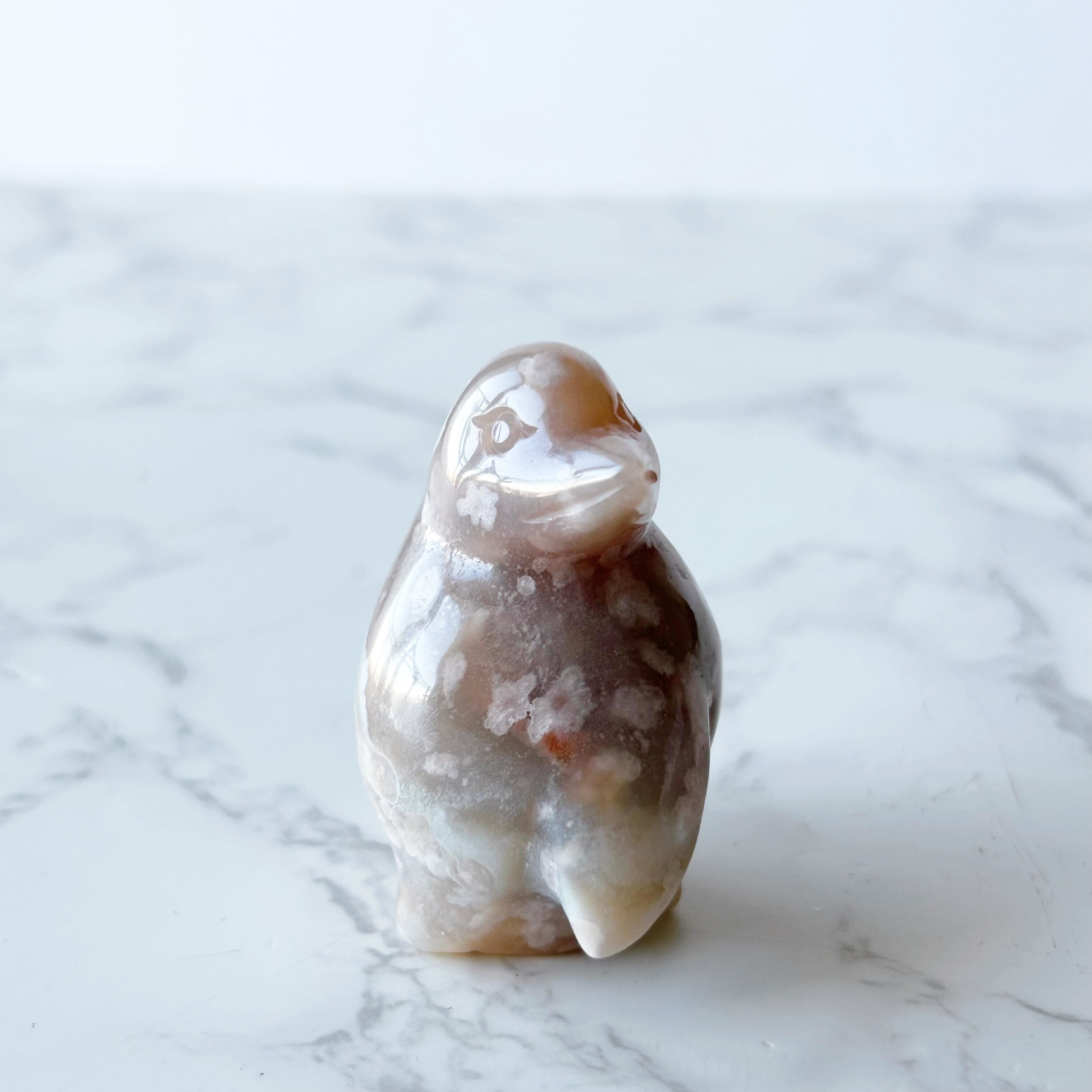 ぷっくりした体型とポーズが愛らしい、フラワーアゲートのペンギンです。