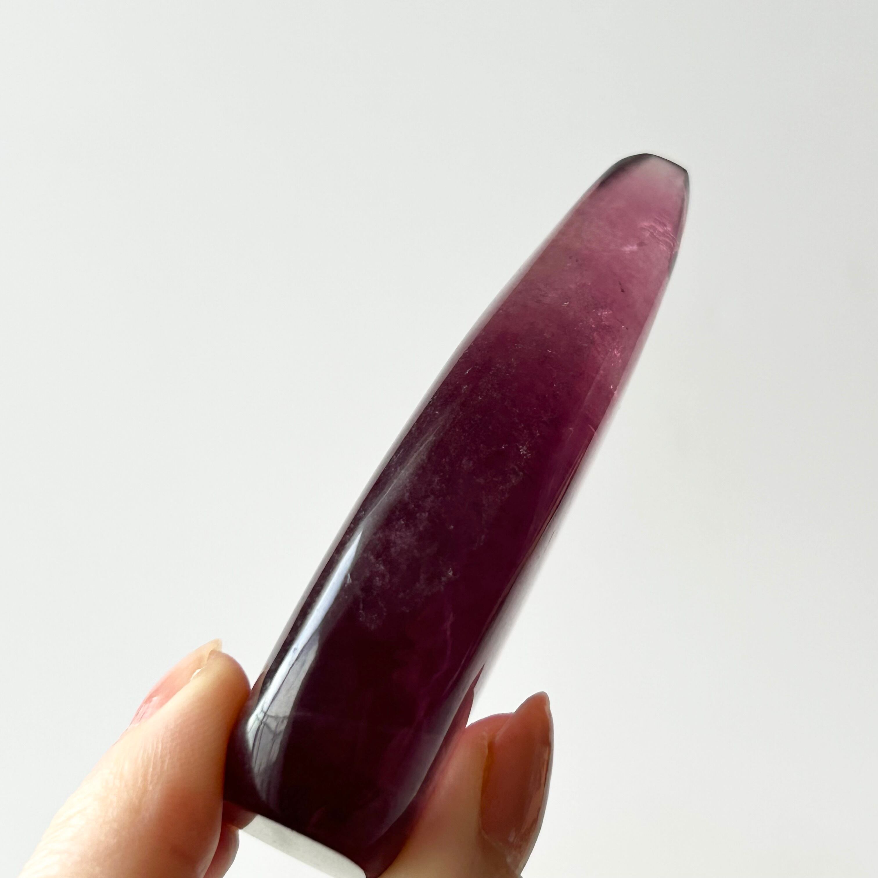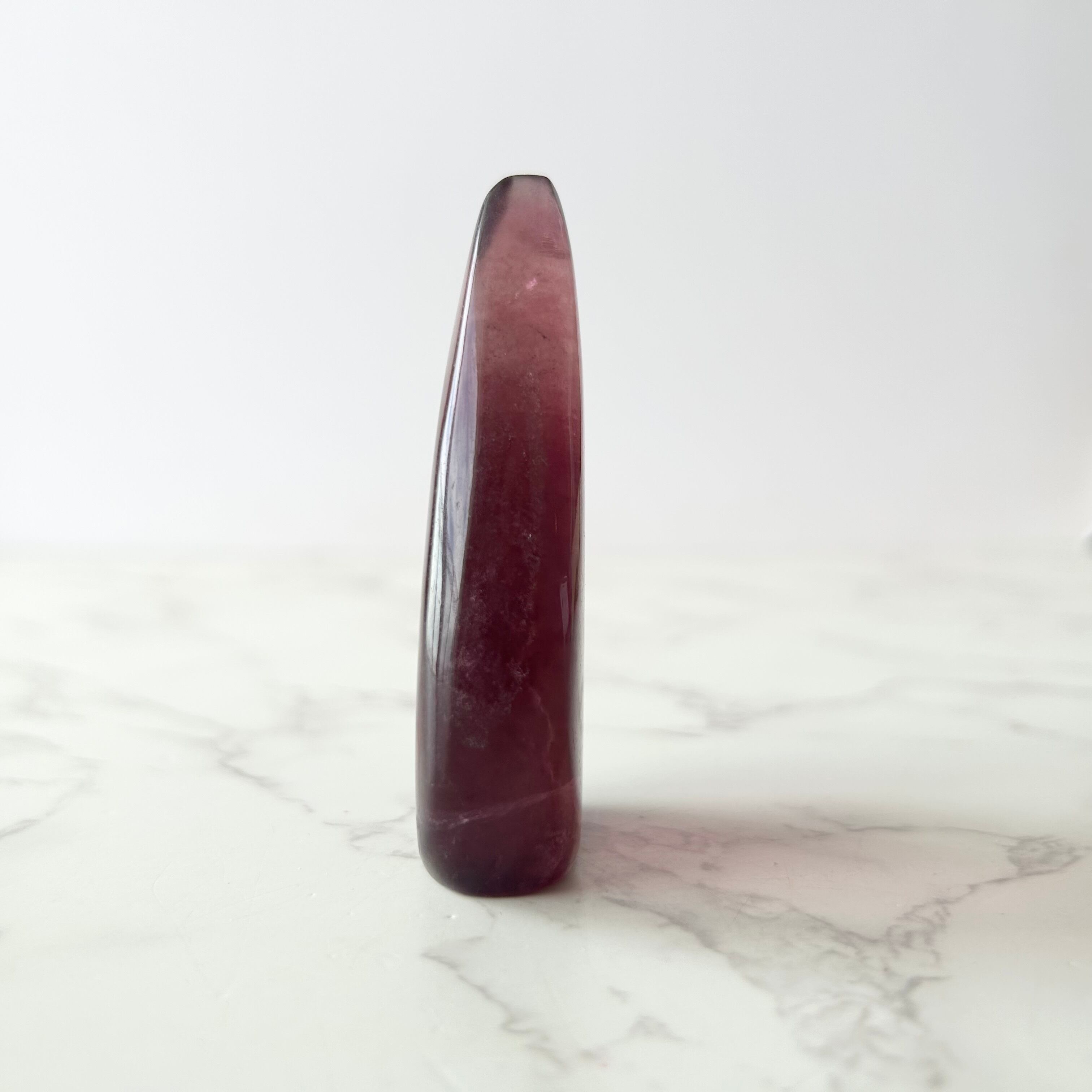 ダークなレッドパープルと淡いミントグリーンの組み合わせがキレイなフローライトのフレイムシェイプです。